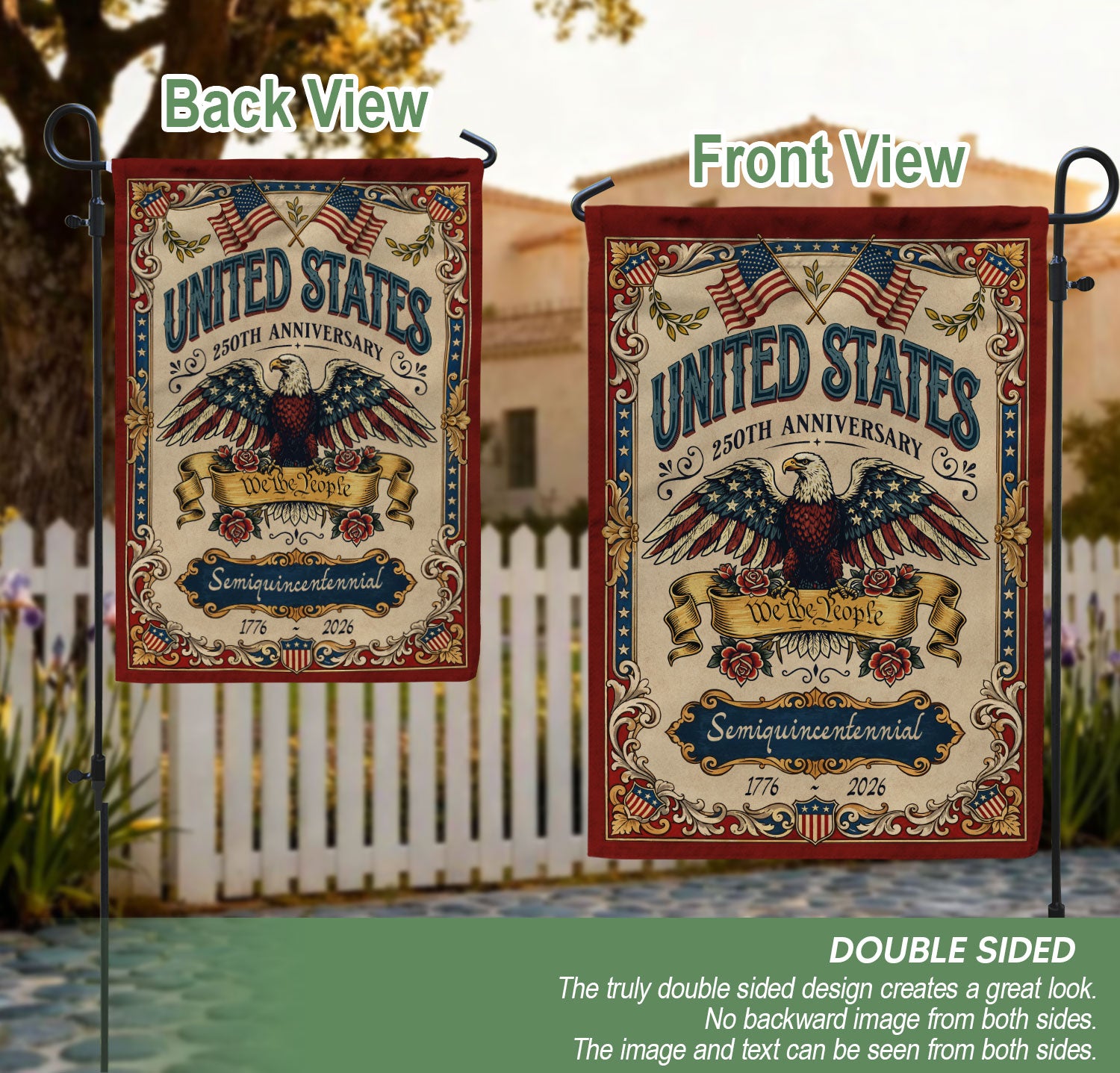 1776-2026 America 250th Anniversary Garden Flag We The People Bald Eagle Double Sided