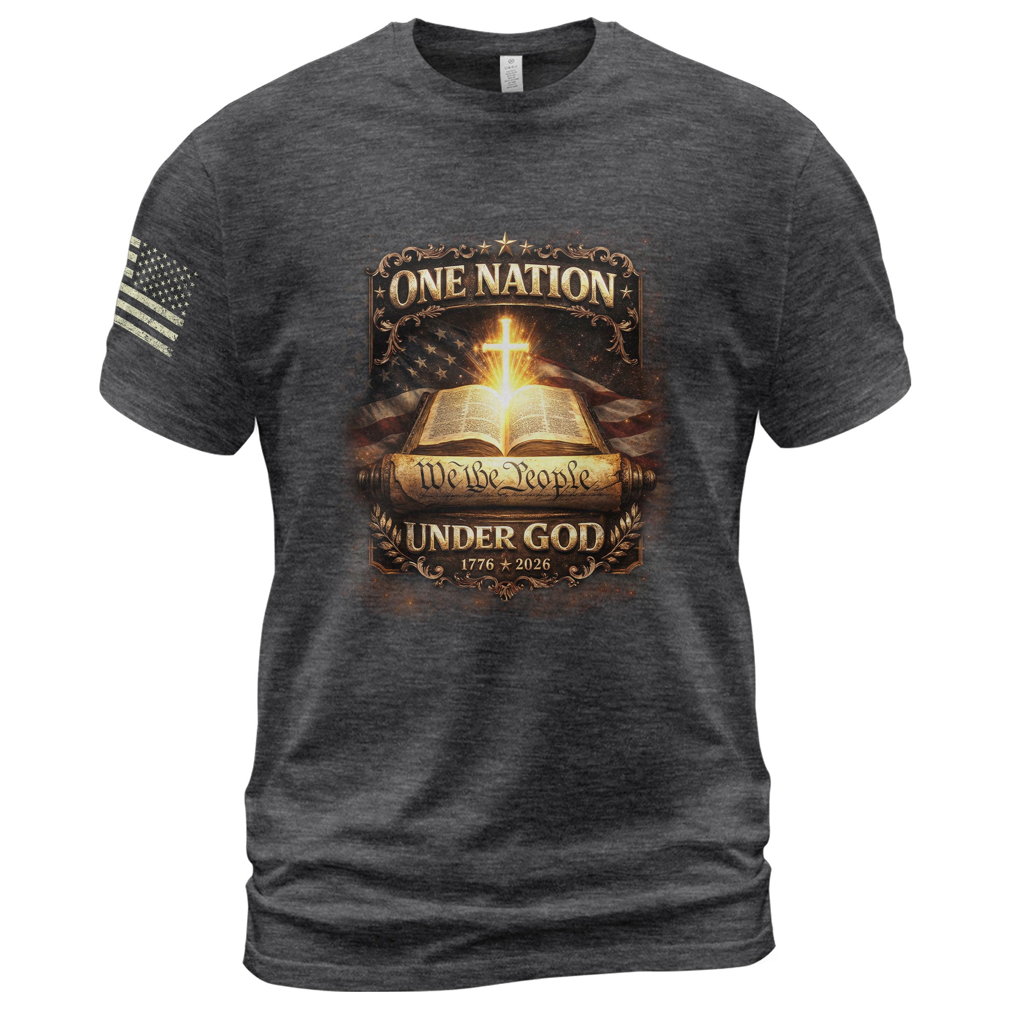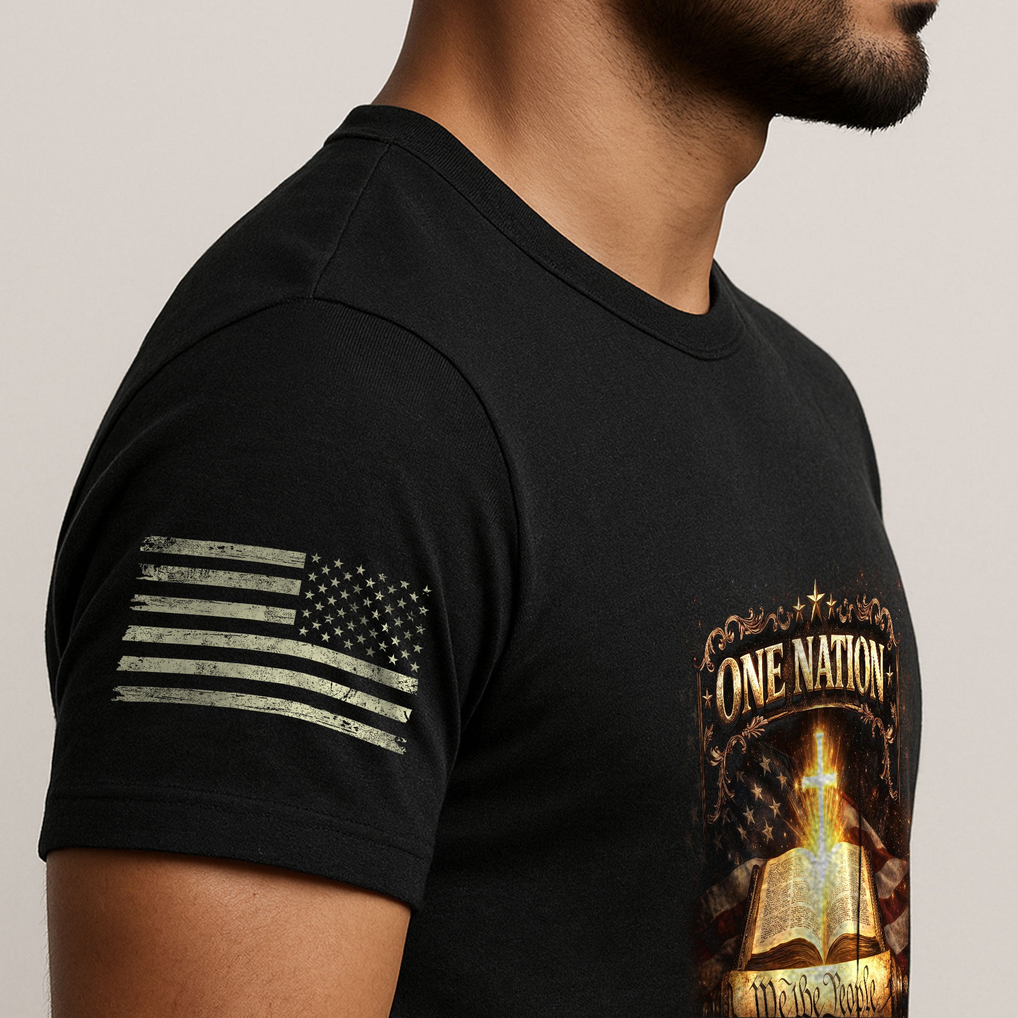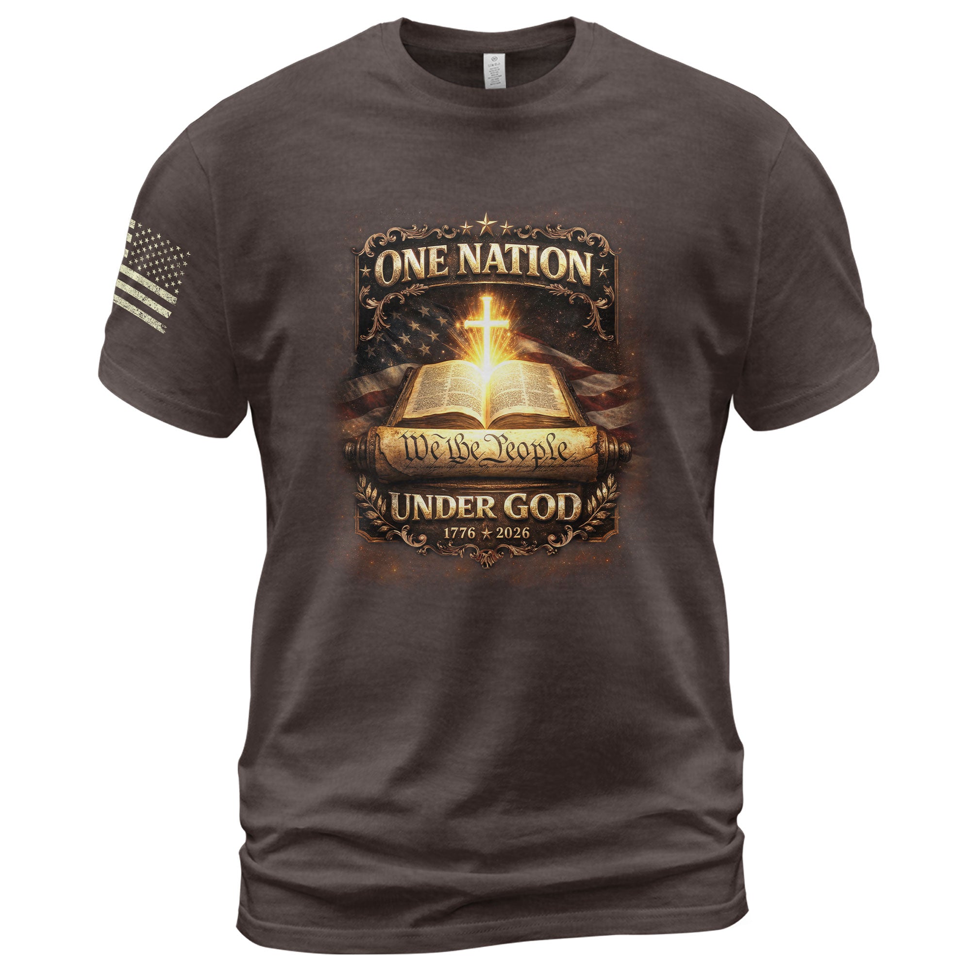 Belief woven into freedom’s story.Pairing We The People with the Bible and American flag, this tee reflects faith, unity, and 250 years of resilience under God.