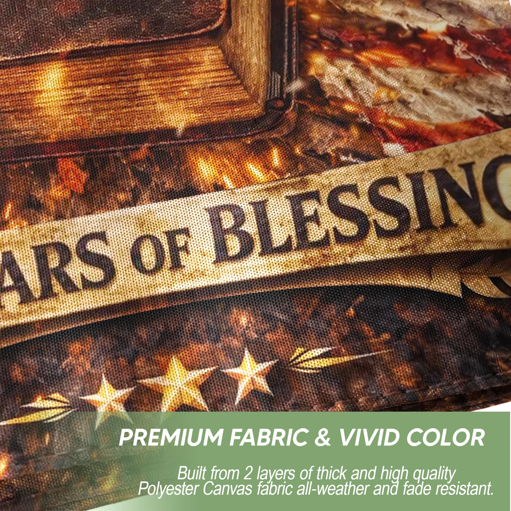 Celebrate America’s 250th anniversary from 1776 to 2026 with this meaningful One Nation Under God house flag. Featuring 250 Years of Blessings and Holy Bible America design, this double-sided flag honors the nation’s spiritual foundation, history, and unity. Crafted for durability, it displays clearly from both sides, making it perfect for porches, patios, or gardens. Ideal for patriots, Christians, and history enthusiasts to show pride in the USA’s enduring values and blessings. Easy to hang with standard house flag hardware.