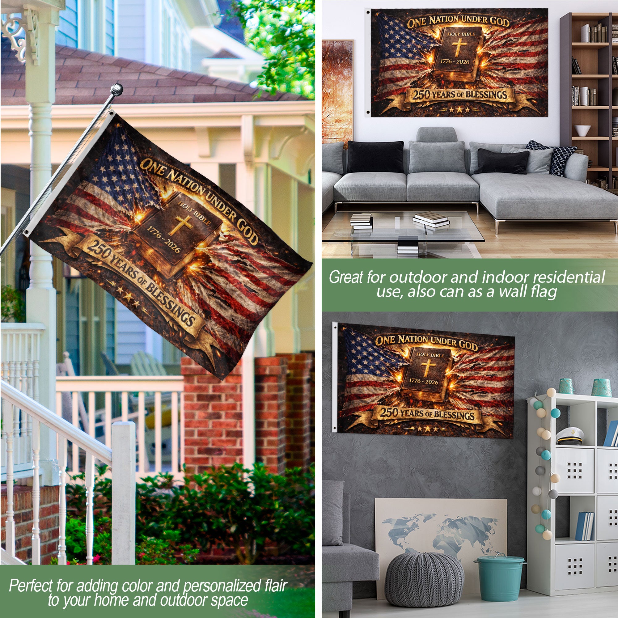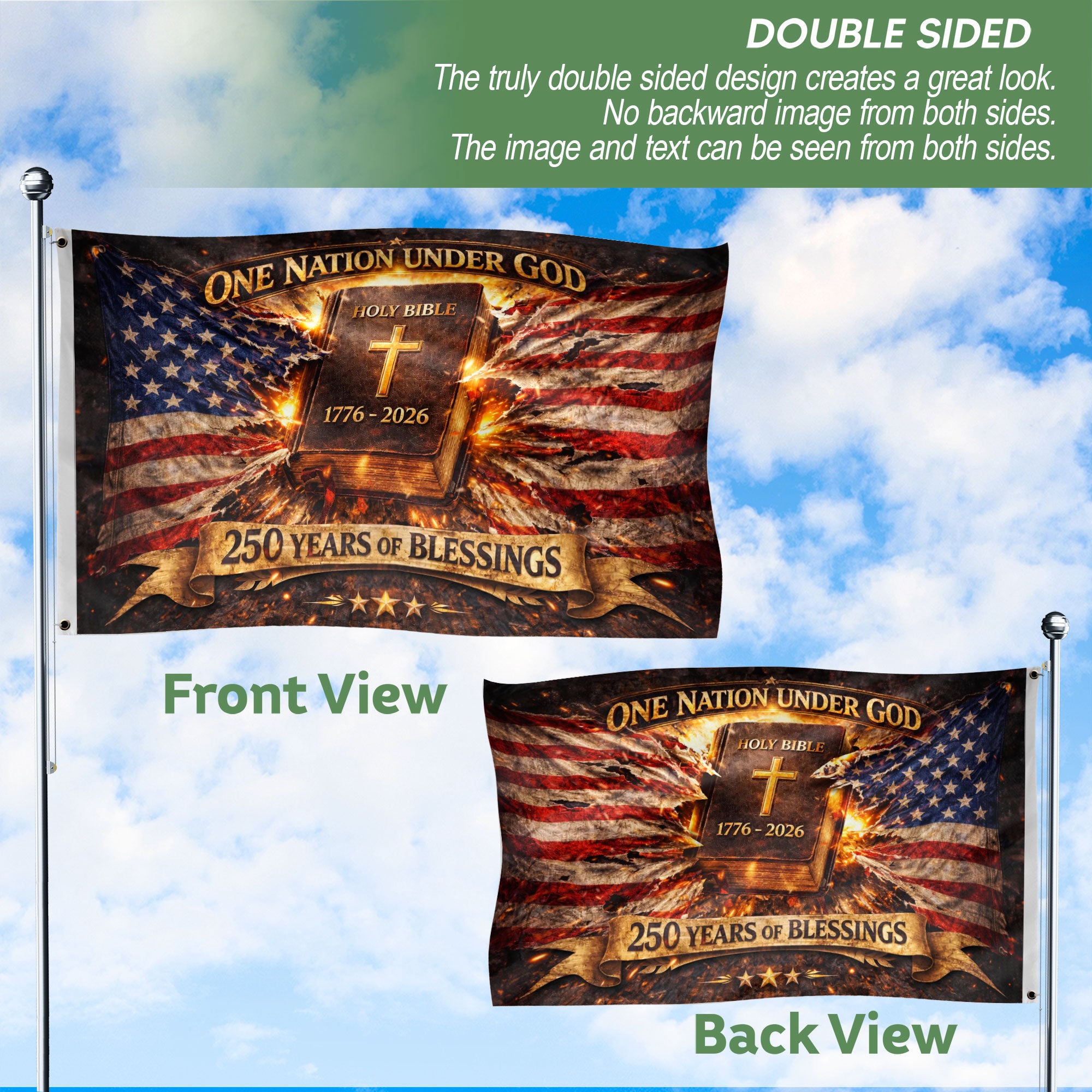 1776-2026 One Nation Under God 250th Anniversary Double Sided Christian USA House Flag