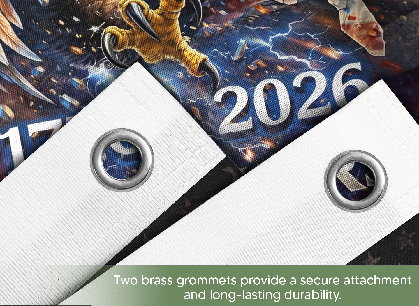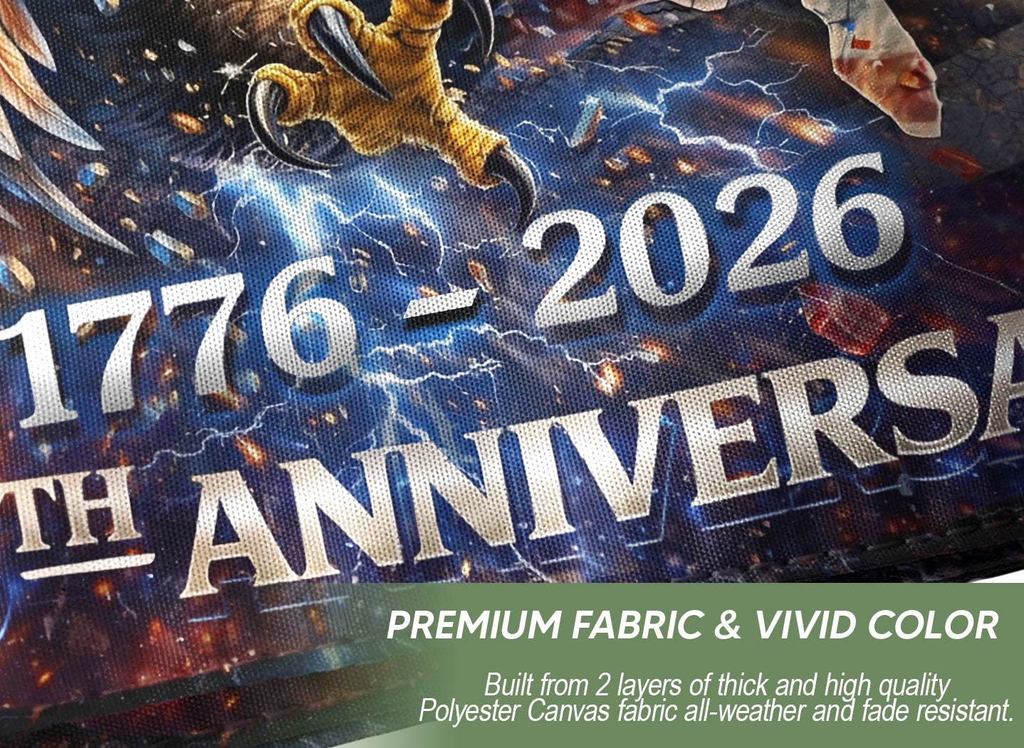 Celebrate 250 years of American independence with the 1776-2026 USA 250th Anniversary House Flag. This striking double-sided flag features a bold vintage bootleg design with a commanding eagle and dramatic lightning motifs, symbolizing the strength forged in freedom’s storm. Perfect for displaying outside your home, garden, or porch, it proudly honors the nation’s enduring spirit of patriotism and resilience. Crafted for durability, the flag is printed on both sides for vivid visibility from any angle, ensuring your patriotic pride shines through in all weather conditions. Ideal for July 4th celebrations, historical commemorations, or everyday display of American heritage. Measures standard house flag size for easy mounting on poles or brackets. Made with high-quality polyester fabric that resists fading and tearing, this vintage-style eagle lightning flag captures the revolutionary essence of 1776 while looking forward to 2026.