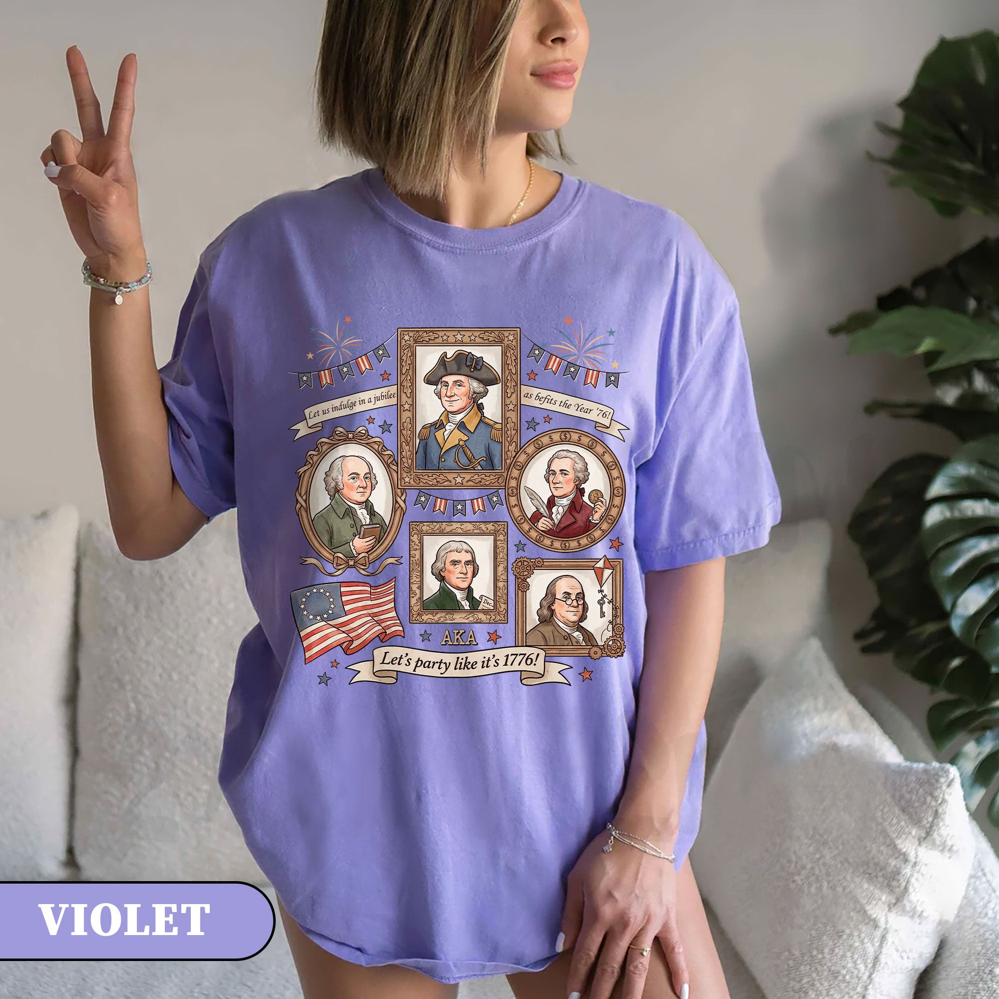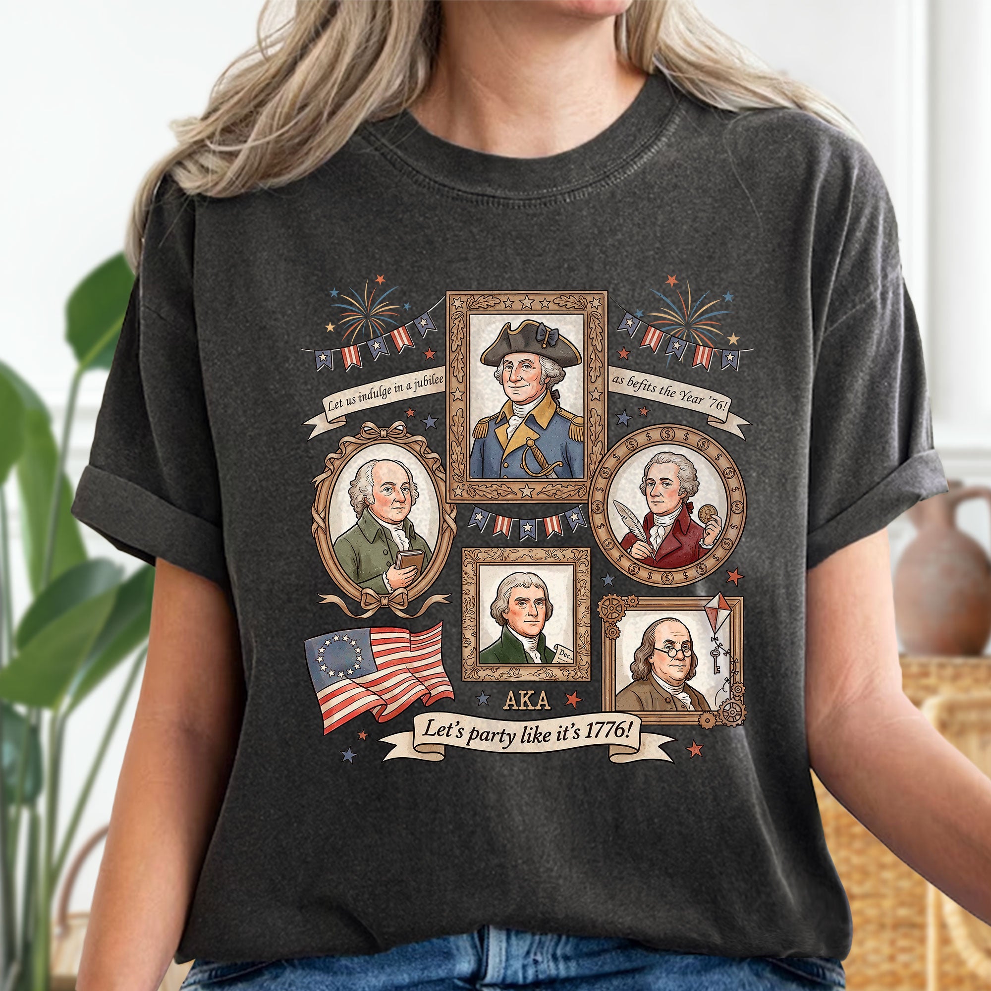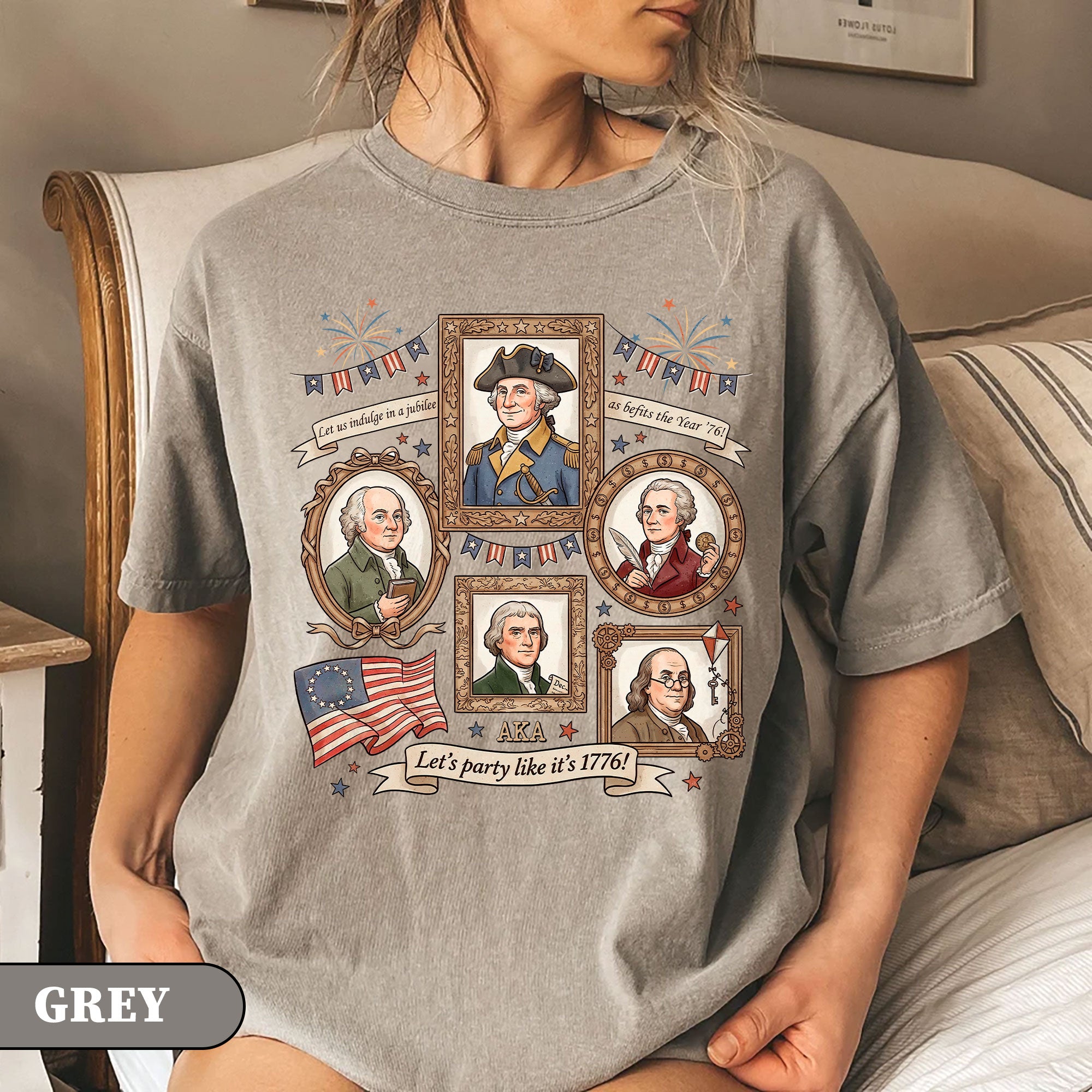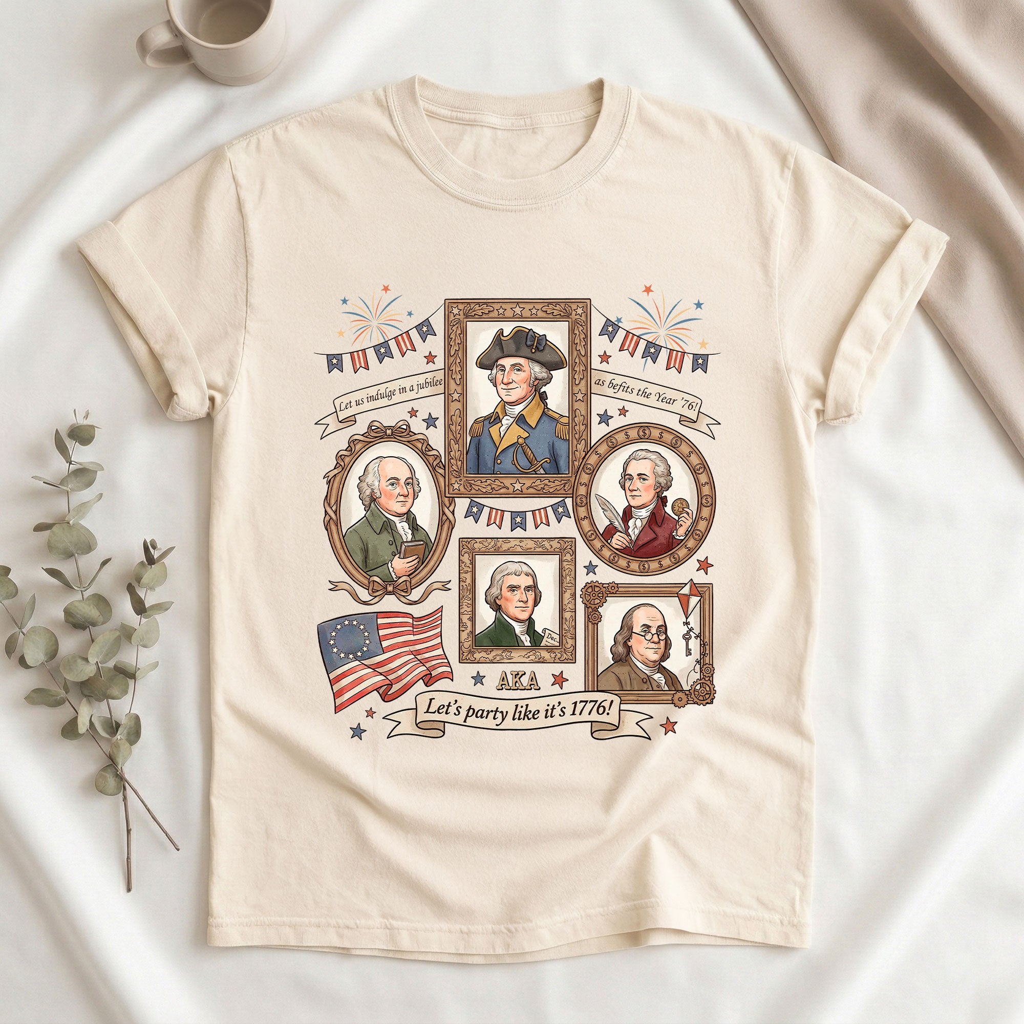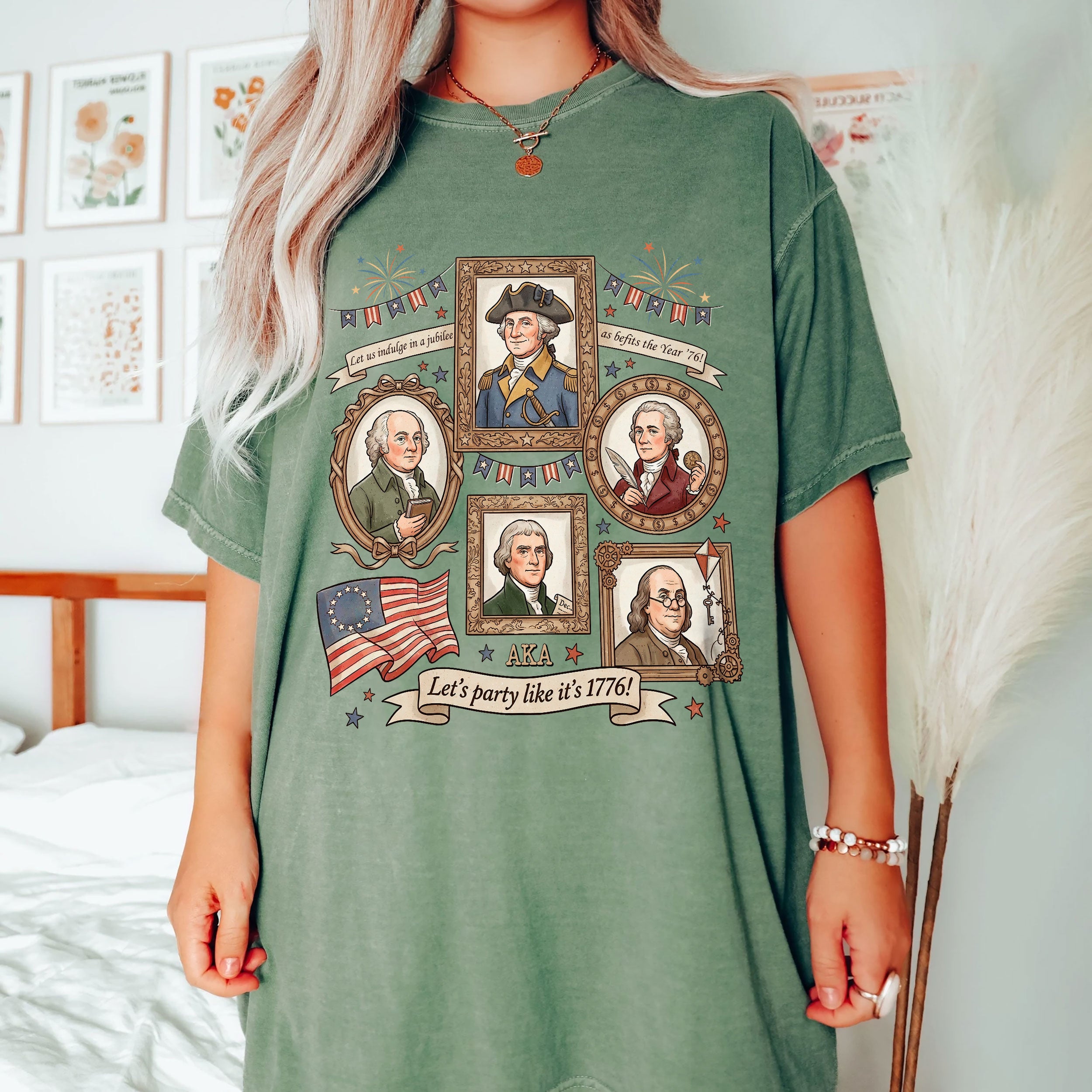 A vintage-style Founding Fathers 1776 T-shirt celebrating American history and patriotic spirit. Perfect for Independence Day, history lovers, and anyone who wants to “Party Like It’s 1776.”
