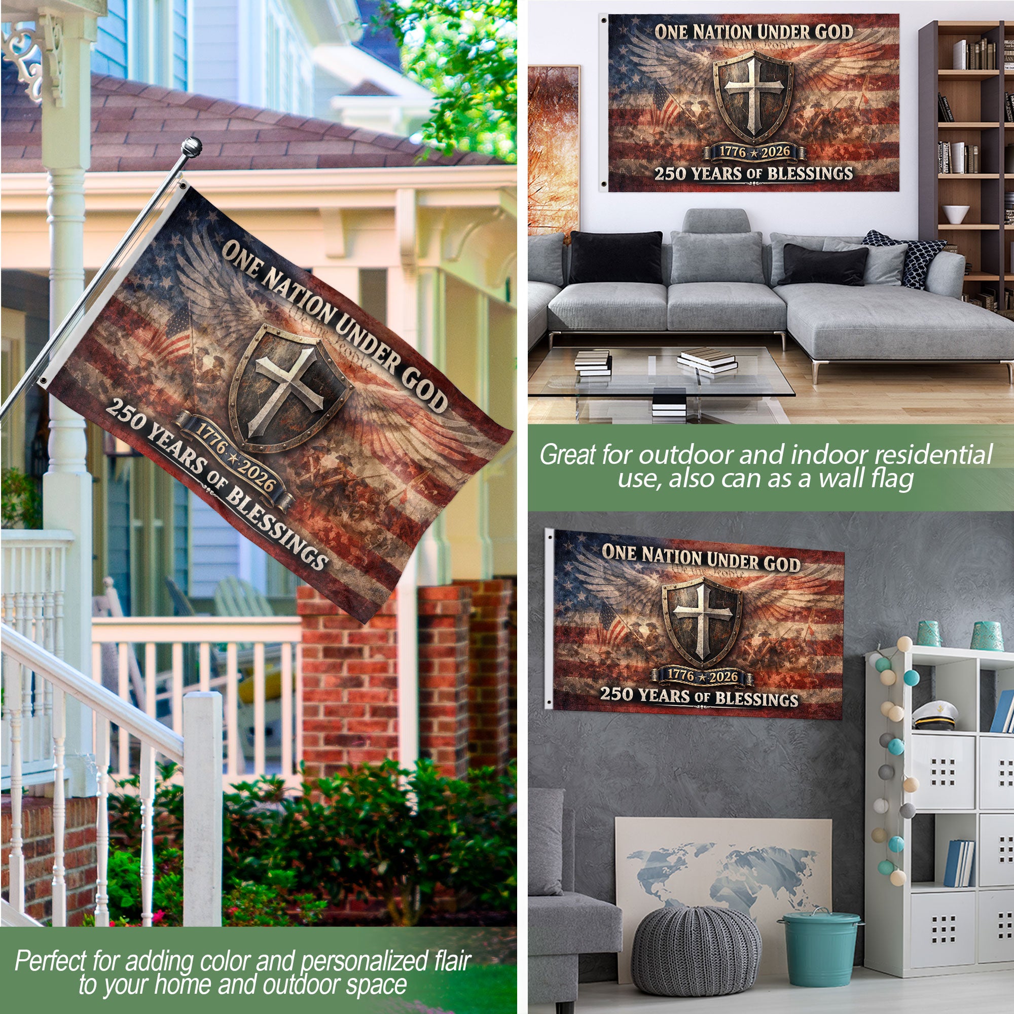 250 Years America Anniversary Flag 1776-2026 Double Sided One Nation Under God House Banner