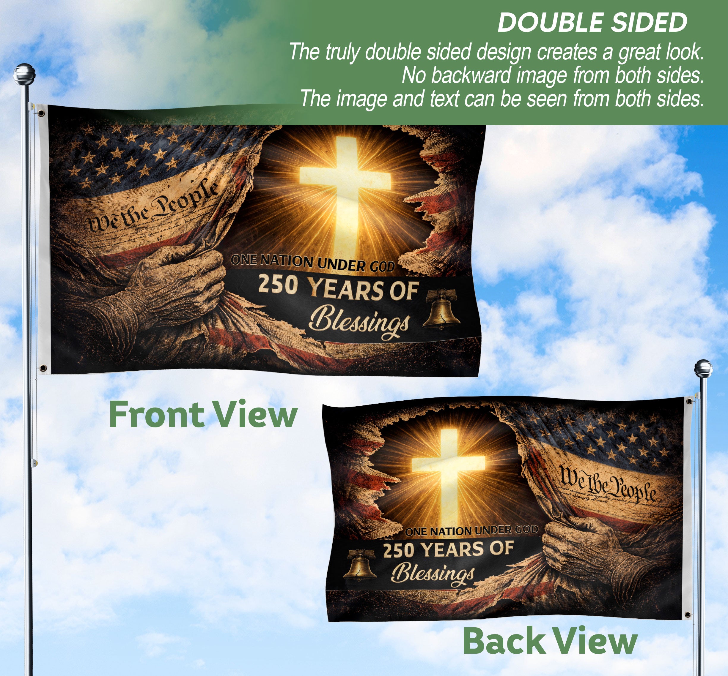 250 Years of Blessings American Flag – Christian Patriotic One Nation Under God Double Sided Design