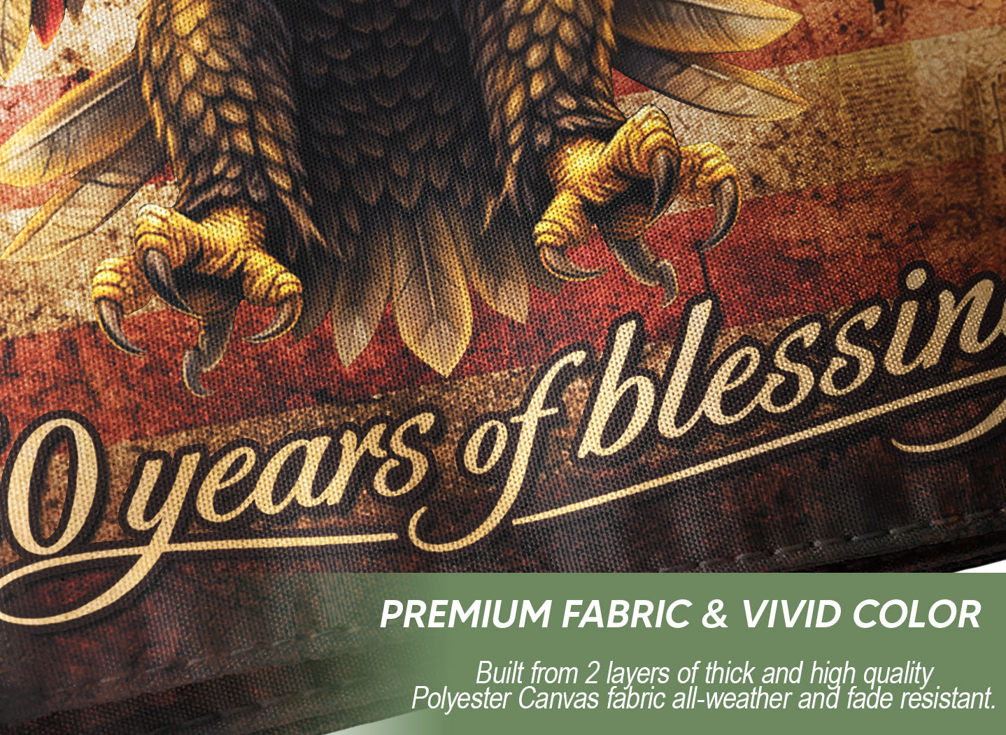 Celebrate America’s 250th anniversary with this striking double-sided outdoor flag featuring the proud American eagle, iconic Liberty Bell, and majestic Statue of Liberty. Spanning 1776-2026, it honors 250 years of blessings and the enduring spirit of freedom. Crafted for durability, this patriotic flag is perfect for displaying on poles, porches, or gardens. Weather-resistant material ensures vibrant colors and clear double-sided printing withstand outdoor elements. Ideal for Independence Day, Memorial Day, Fourth of July, or everyday display of national pride. Symbols of liberty that stand strong through time.