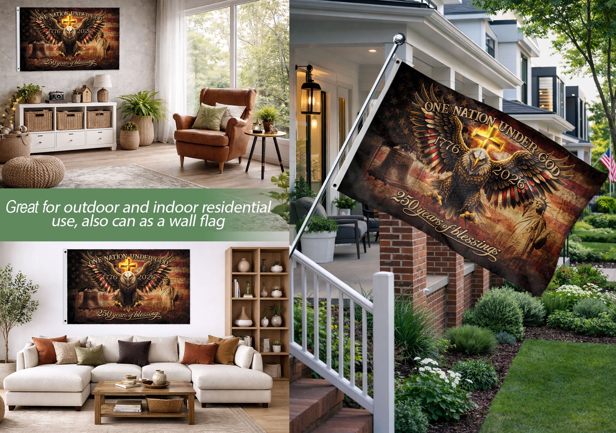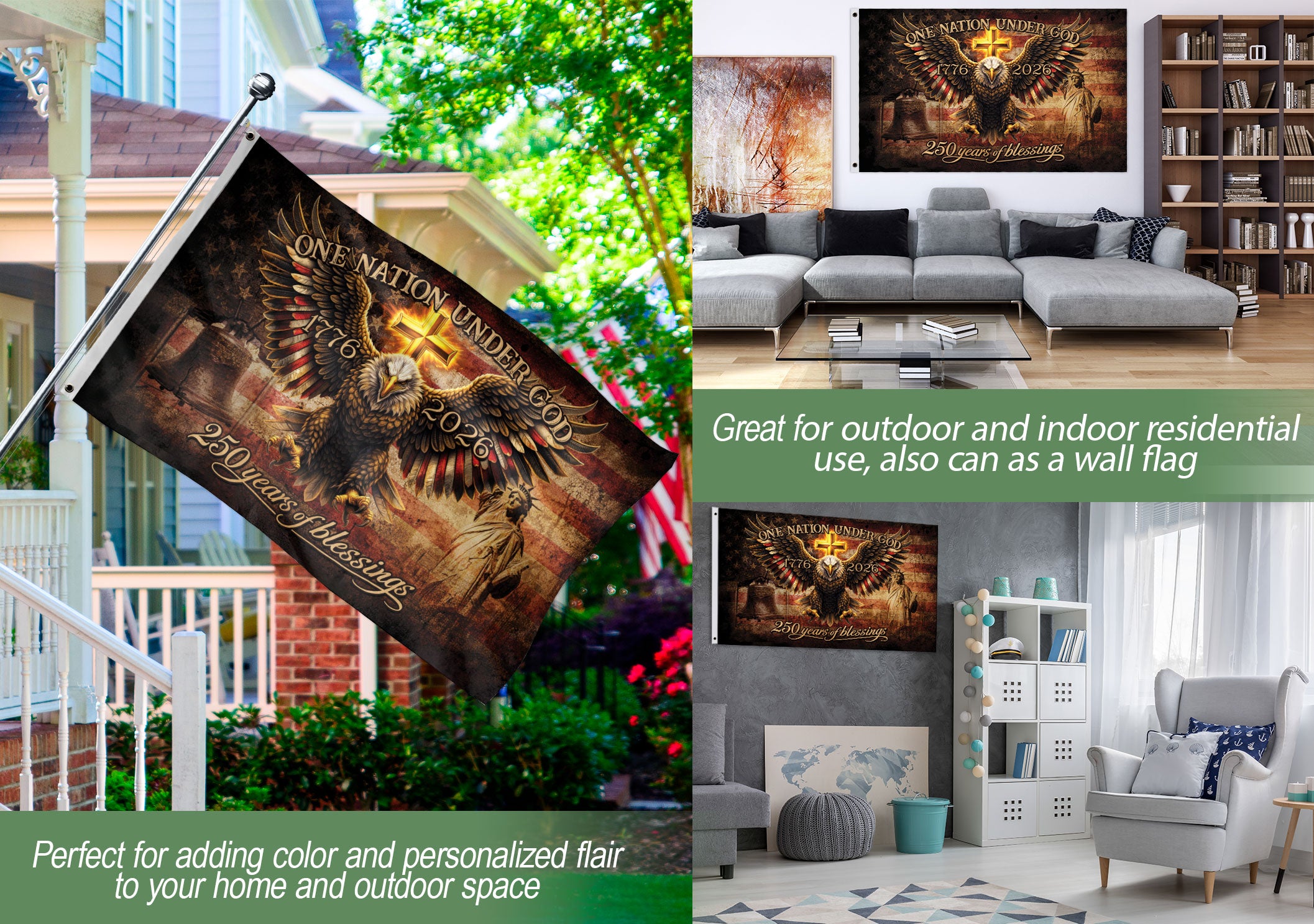 USA 250th Anniversary 1776-2026 Double Sided Flag Flying Eagle One Nation Under God