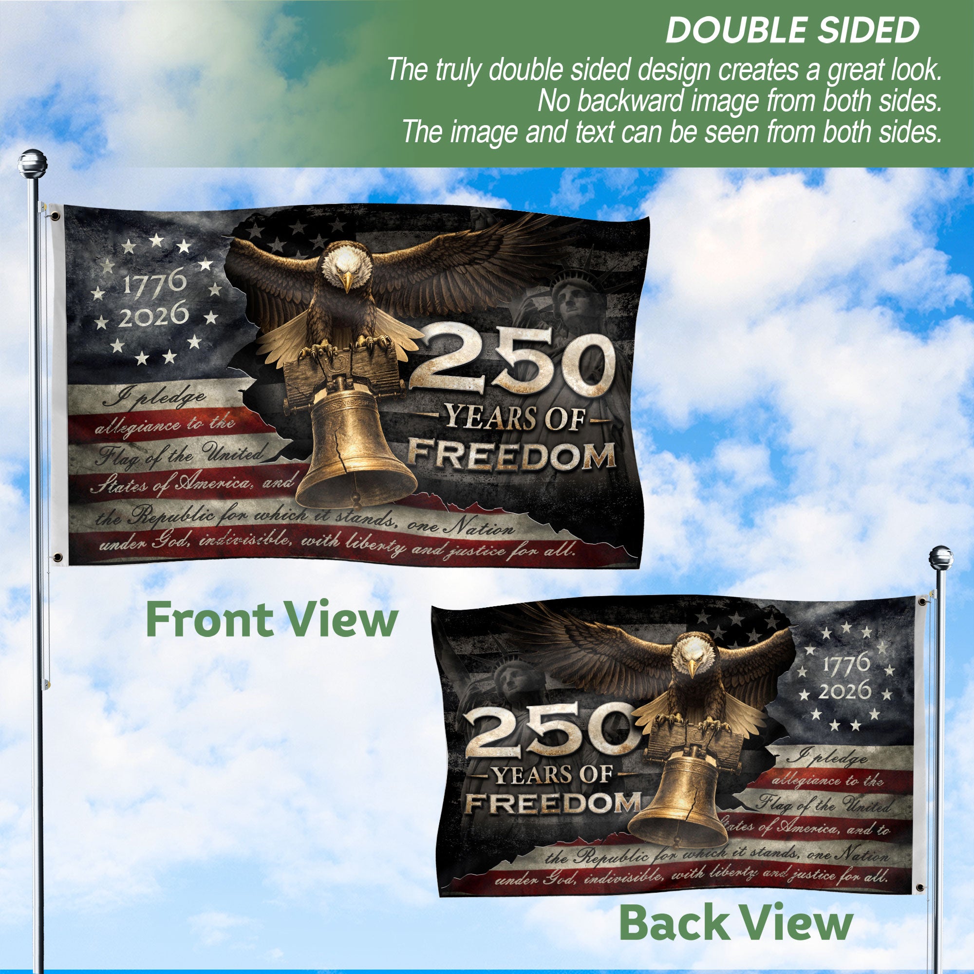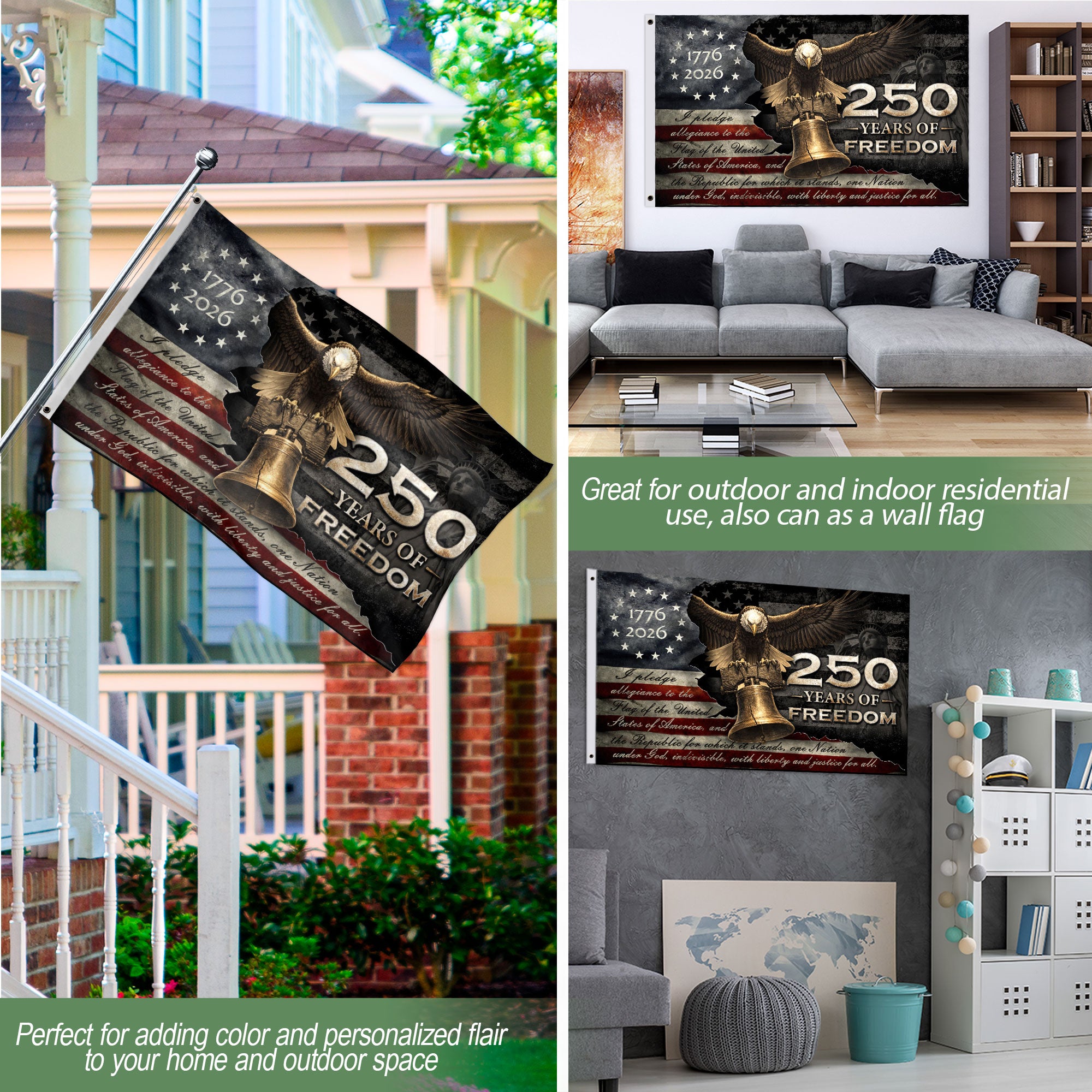 250 Years of Freedom Double-Sided House Flag 1776-2026 Liberty Bell Eagle Patriotic