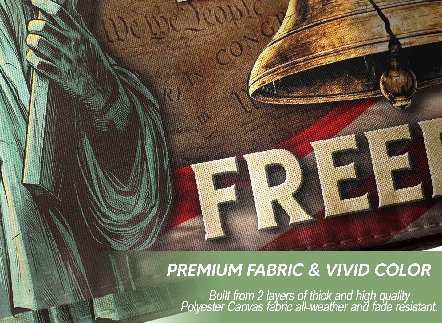 Celebrate America’s 250th anniversary with this double-sided house flag honoring 250 years of freedom from 1776 to 2026. Featuring iconic patriotic artwork visible from both sides, this durable house flag is perfect for displaying national pride on porches, gardens, or patios. Crafted with high-quality polyester fabric for weather resistance and vibrant colors that withstand outdoor conditions. Easy to hang with a standard flagpole sleeve. Ideal for Independence Day, Memorial Day, Fourth of July, or everyday patriotic decor. Measures standard house flag size for versatile use.