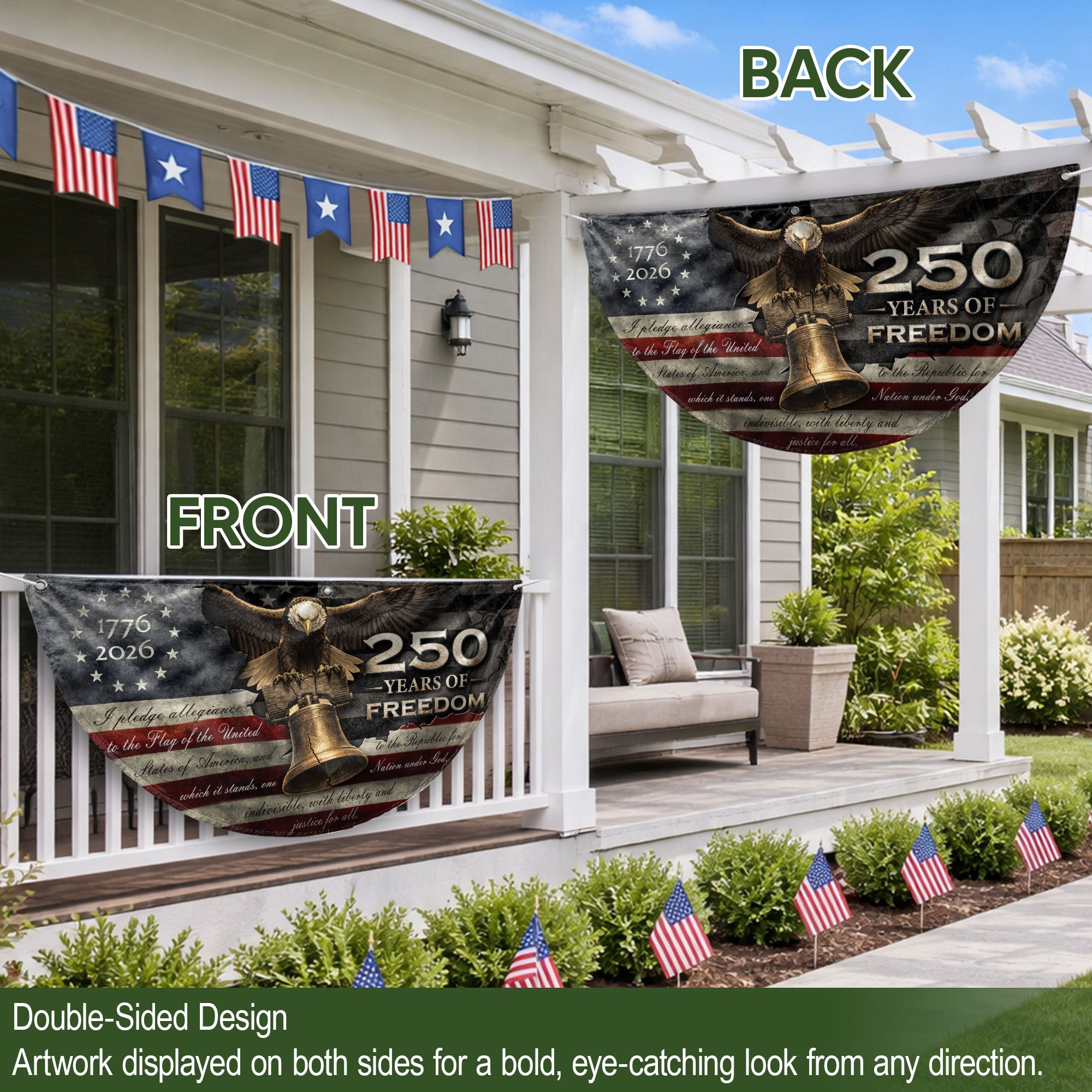 250 Years of Freedom Fence Flag 1776-2026 Liberty Bell Eagle Patriotic Banner