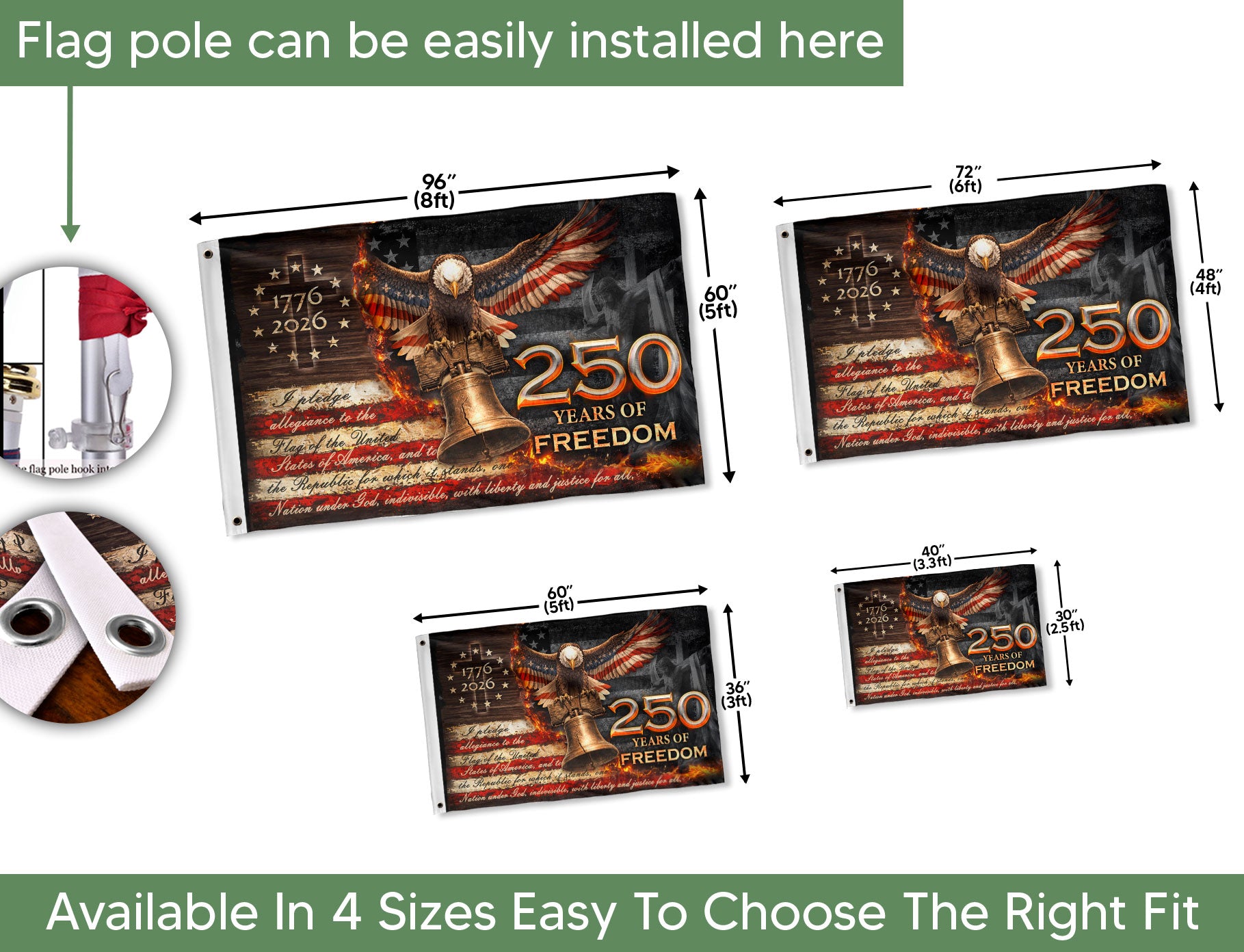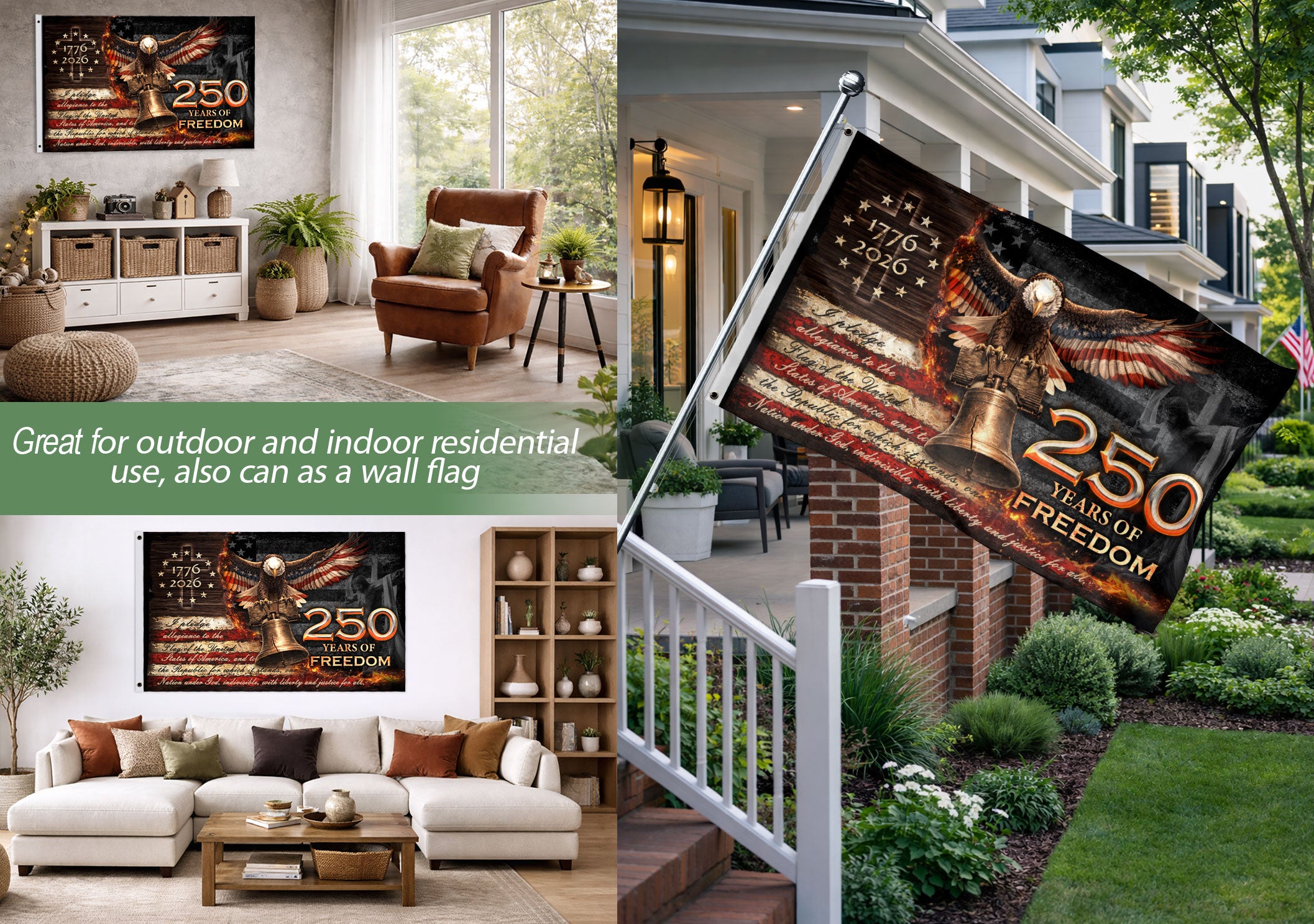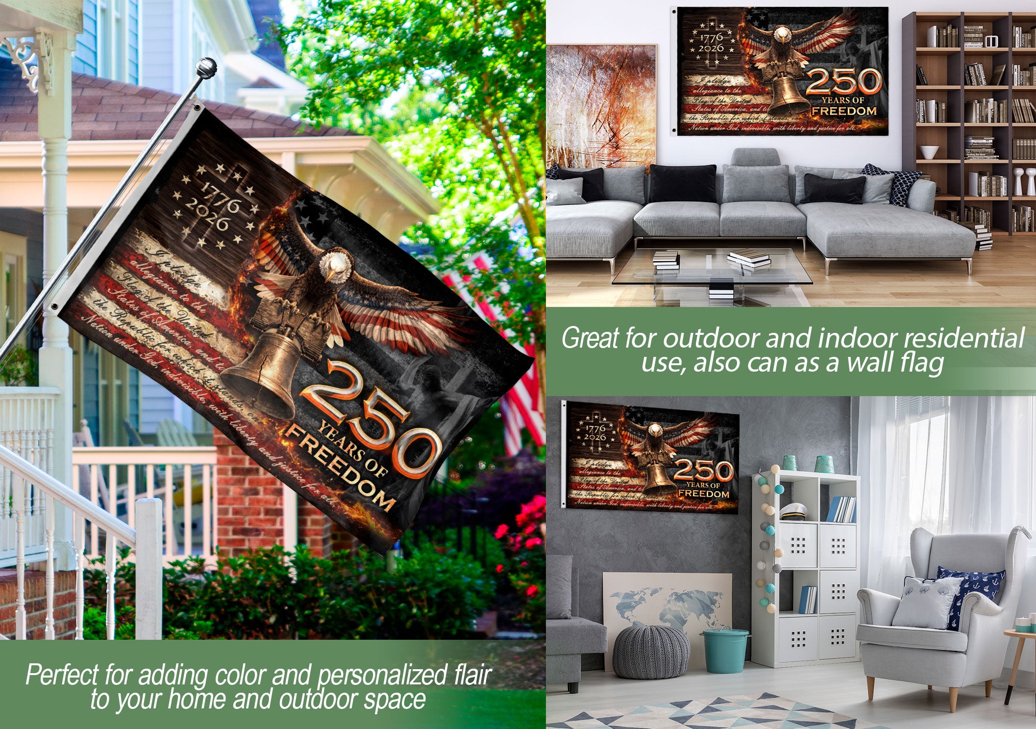 250 Years of Freedom House Flag 1776-2026 Patriotic Eagle Liberty Bell Design