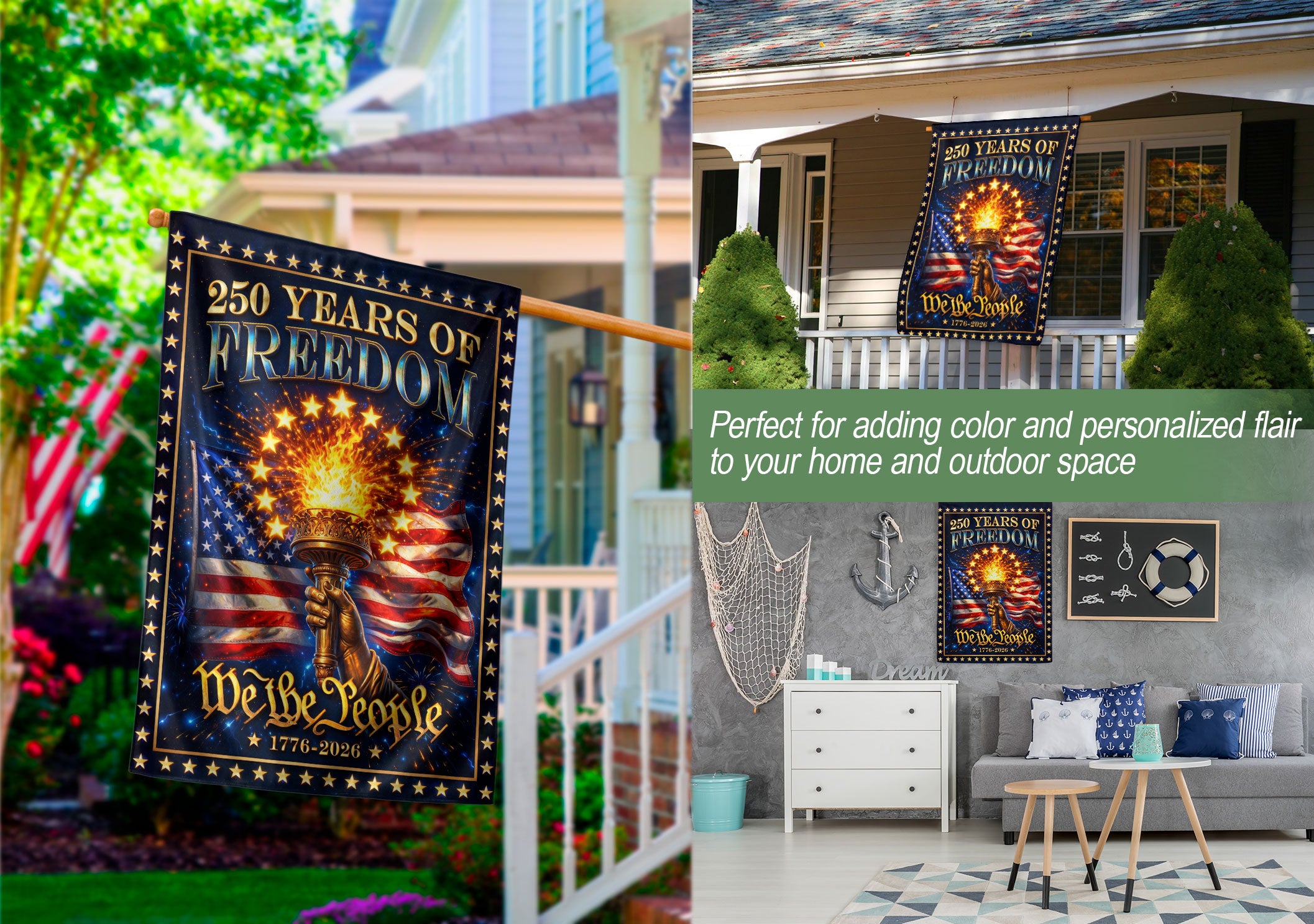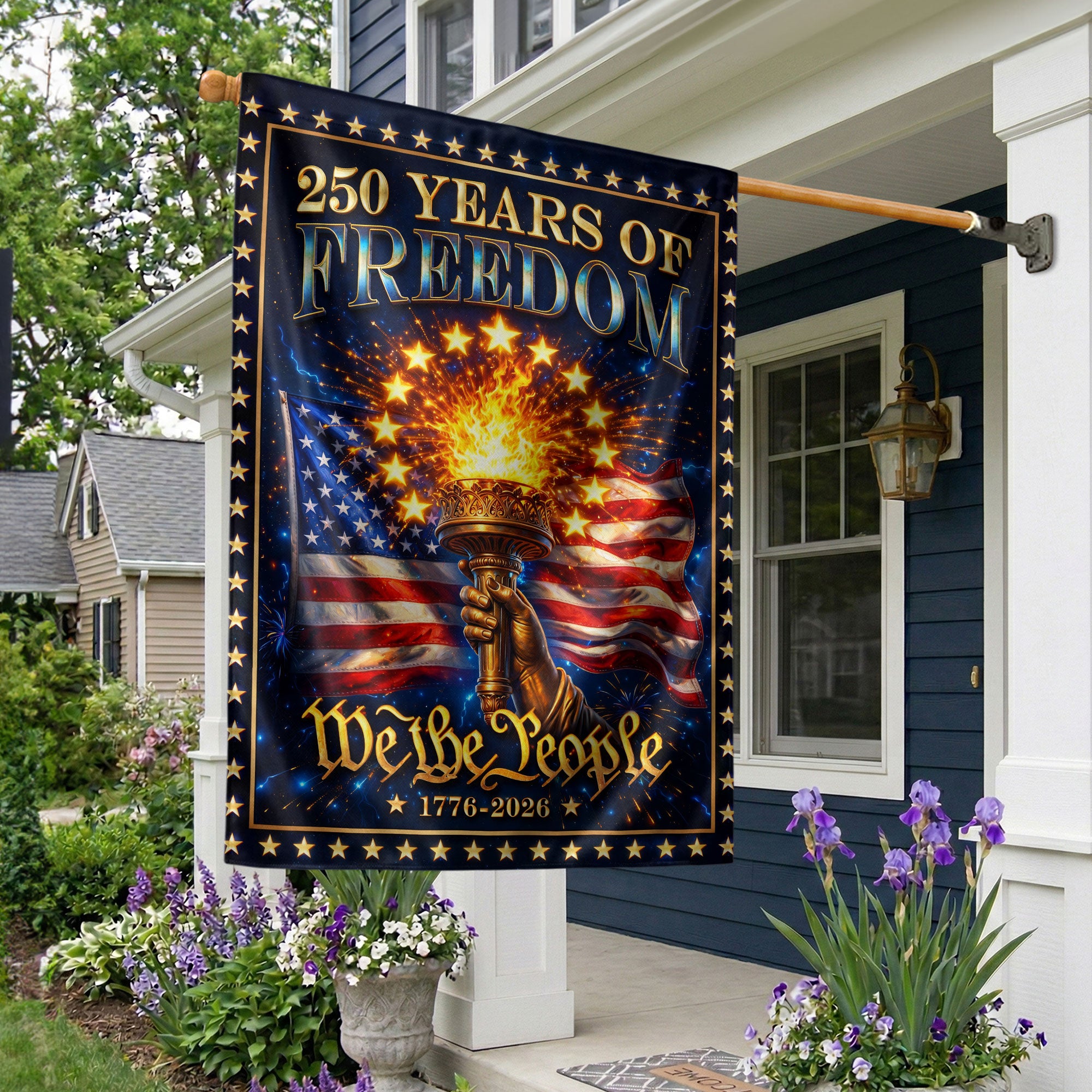 250 Years of Freedom House Flag We The People Torch Patriotic 1776-2026 Banner