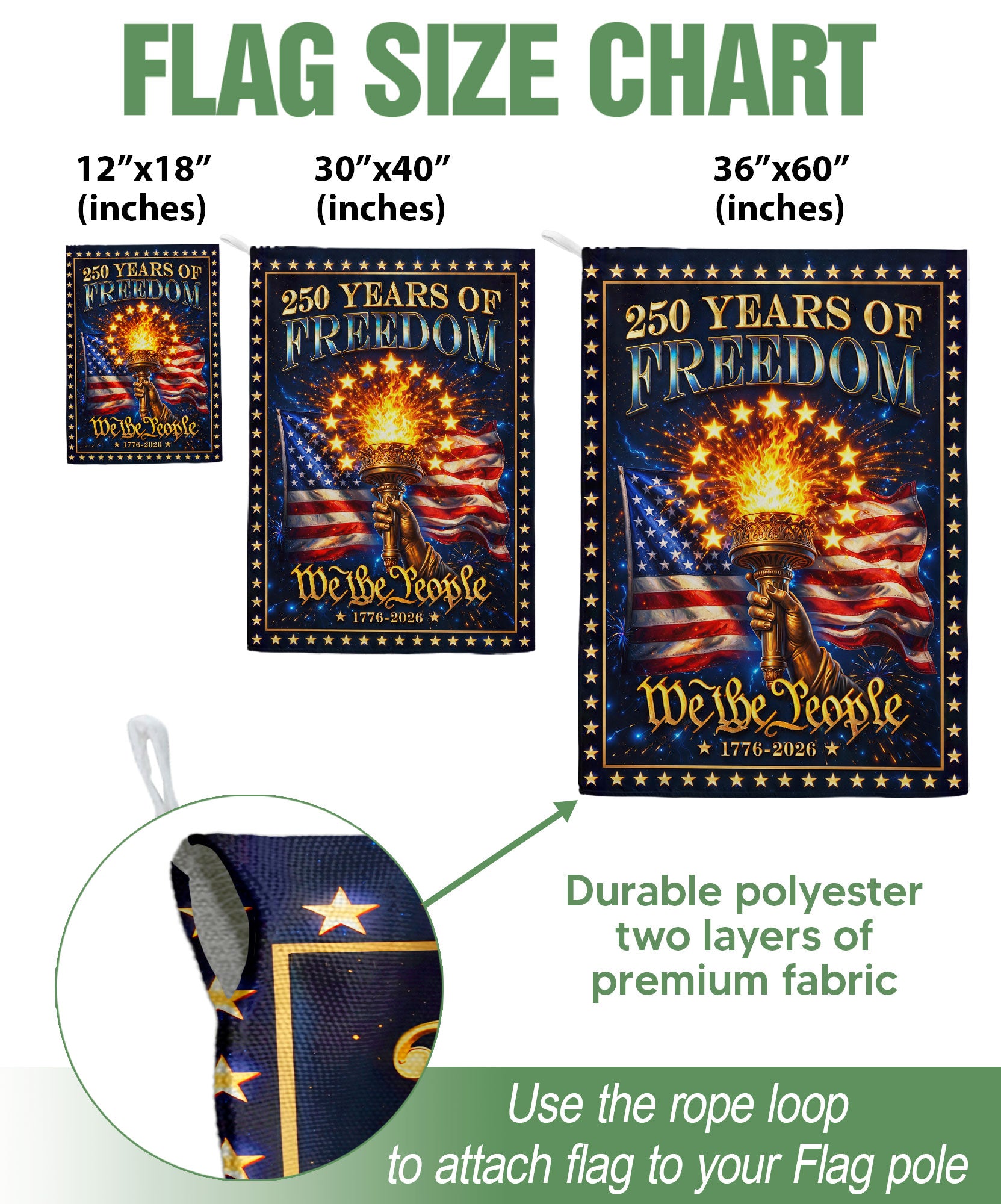 250 Years of Freedom Patriotic Garden Flag We The People Torch American Flag 1776 2026