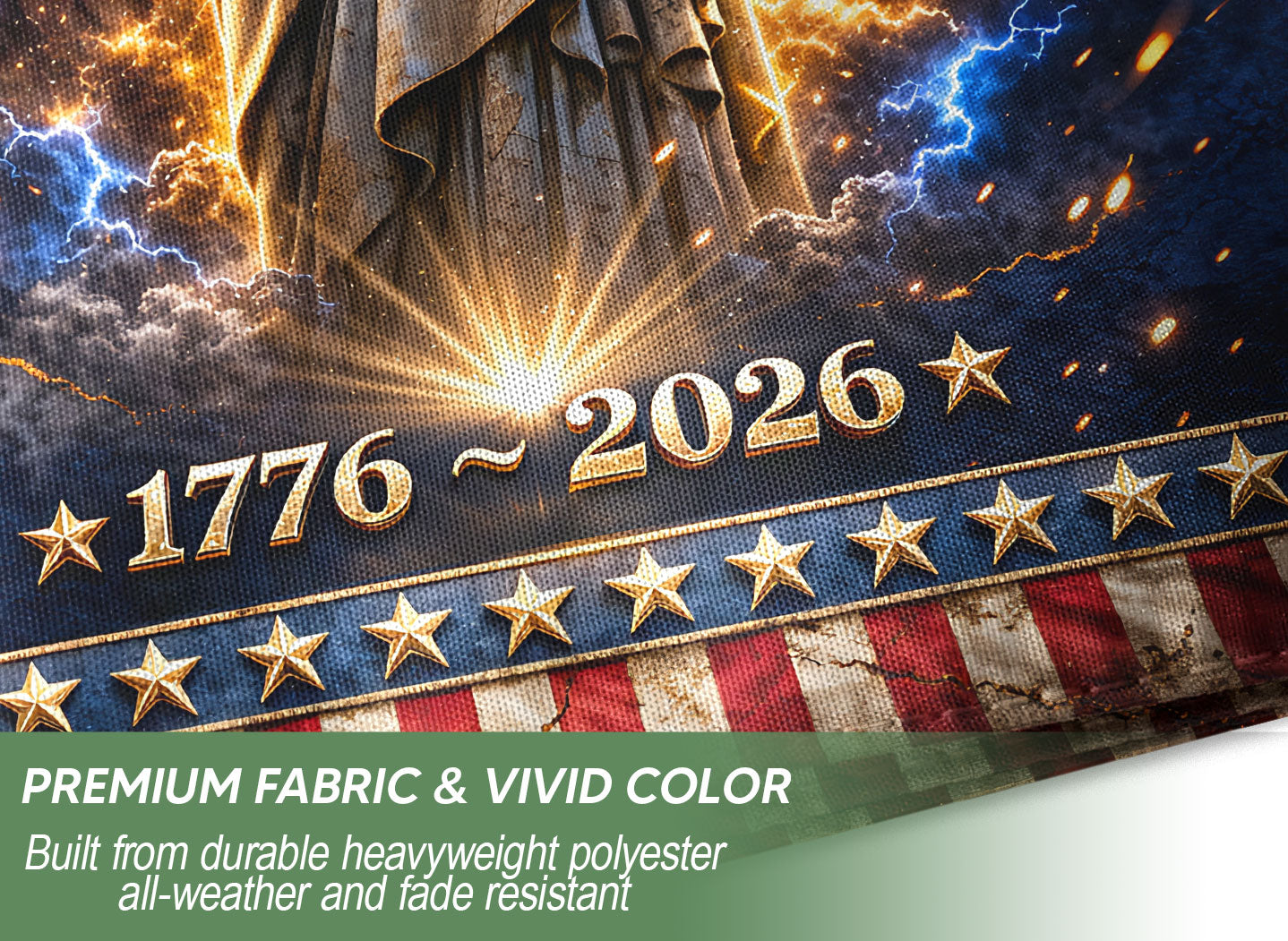 Celebrate 250 years of American liberty with this double-sided garden flag commemorating 1776-2026. The bold ‘One Nation Under God’ message honors Christian values, patriotic pride, faith, and freedom. Perfect for gardens, porches, yards, or outdoor spaces, this durable flag is crafted for all-weather use, resisting wind, rain, and sun while displaying vibrant designs on both sides. Ideal for Independence Day, Memorial Day, Fourth of July, or year-round display of national heritage and American pride. Made from high-quality, fade-resistant polyester fabric with reinforced stitching for long-lasting performance. Easy to hang with a standard garden flag pole (not included). Stand as a symbol of enduring liberty and unity in your outdoor decor.