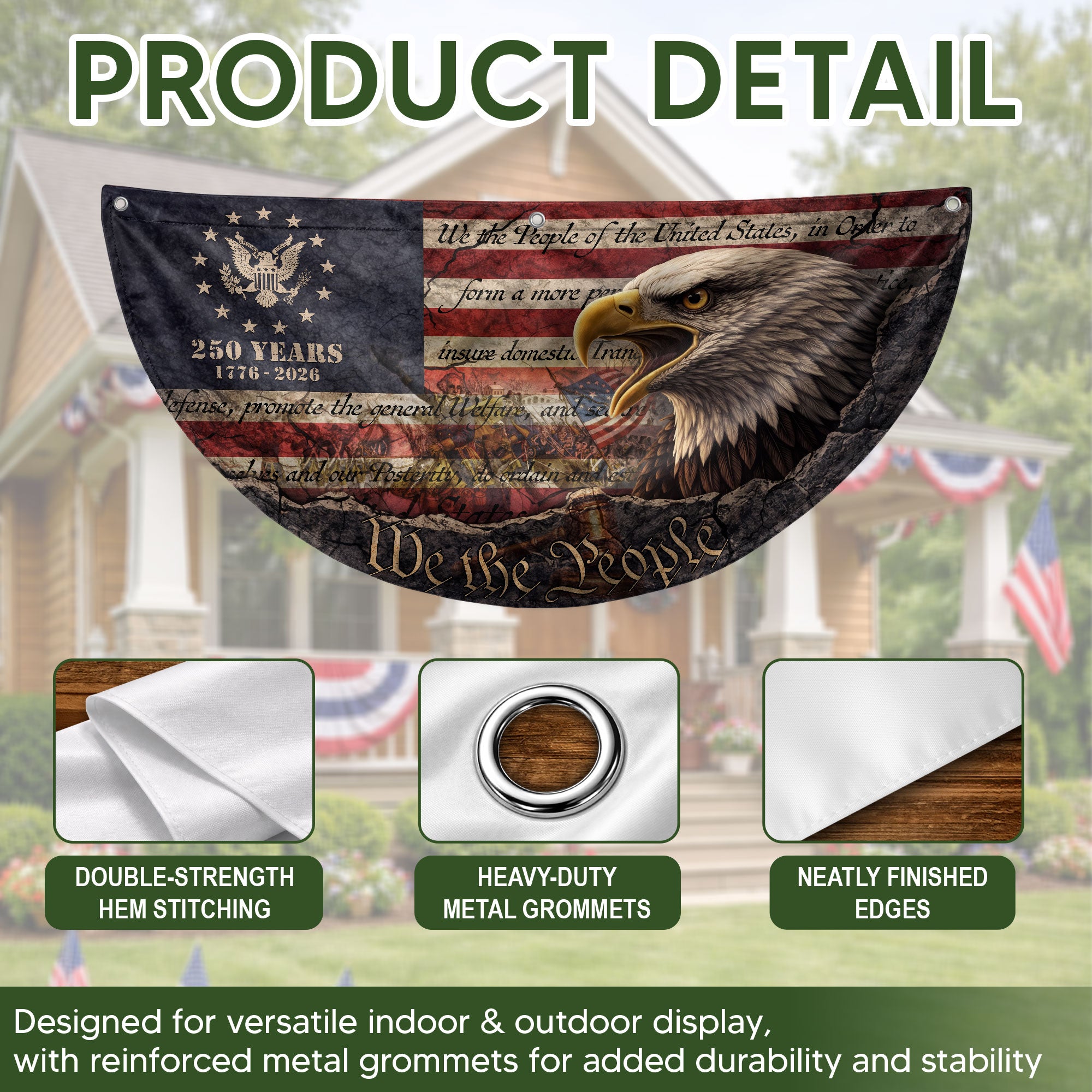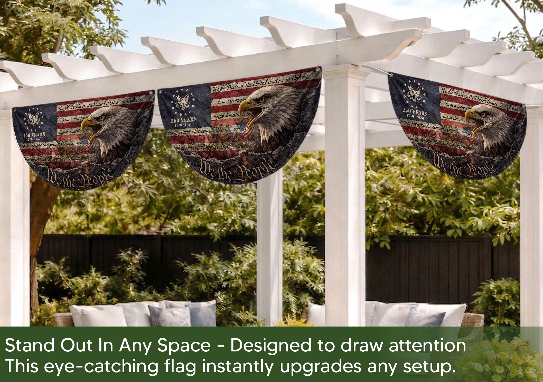 USA 250th Anniversary Fence Flag 1776-2026 Patriotic Eagle American Celebration
