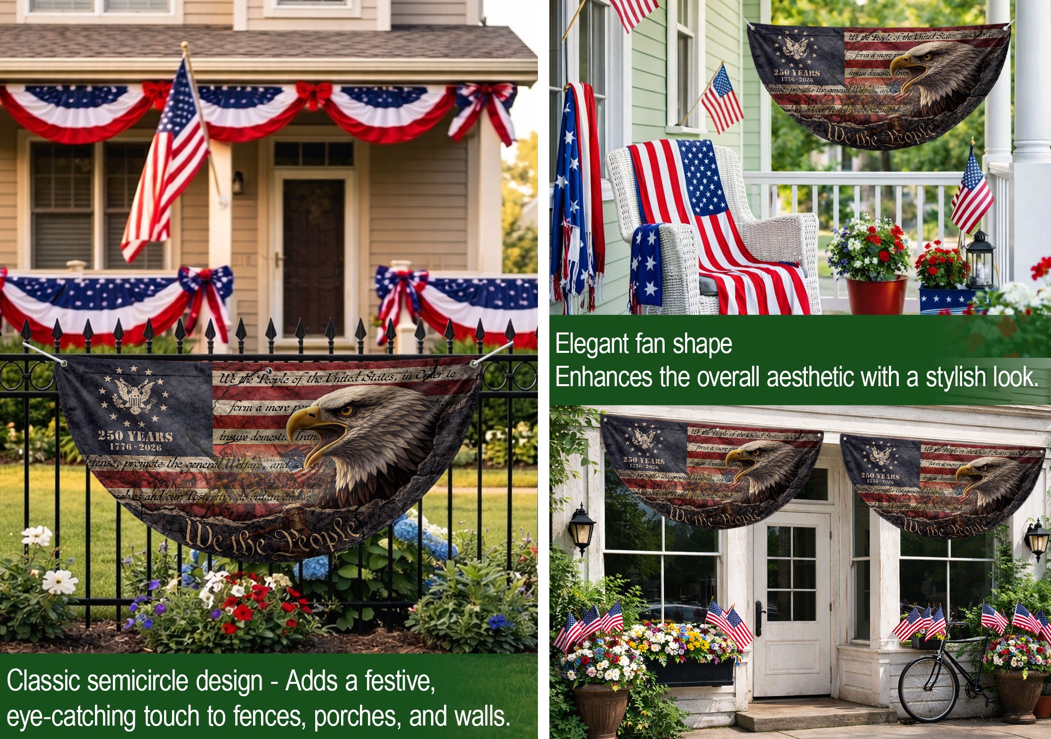 USA 250th Anniversary Fence Flag 1776-2026 American Eagle Patriotic Outdoor Banner