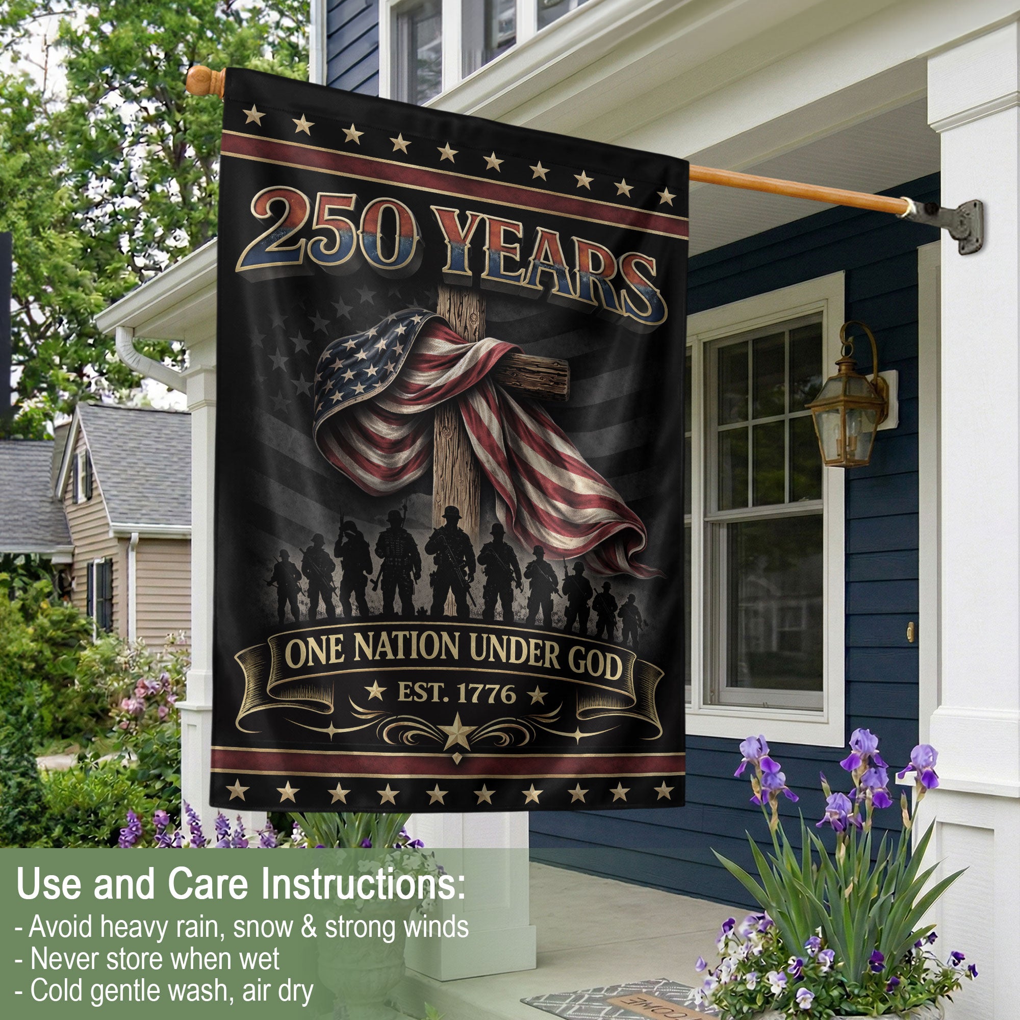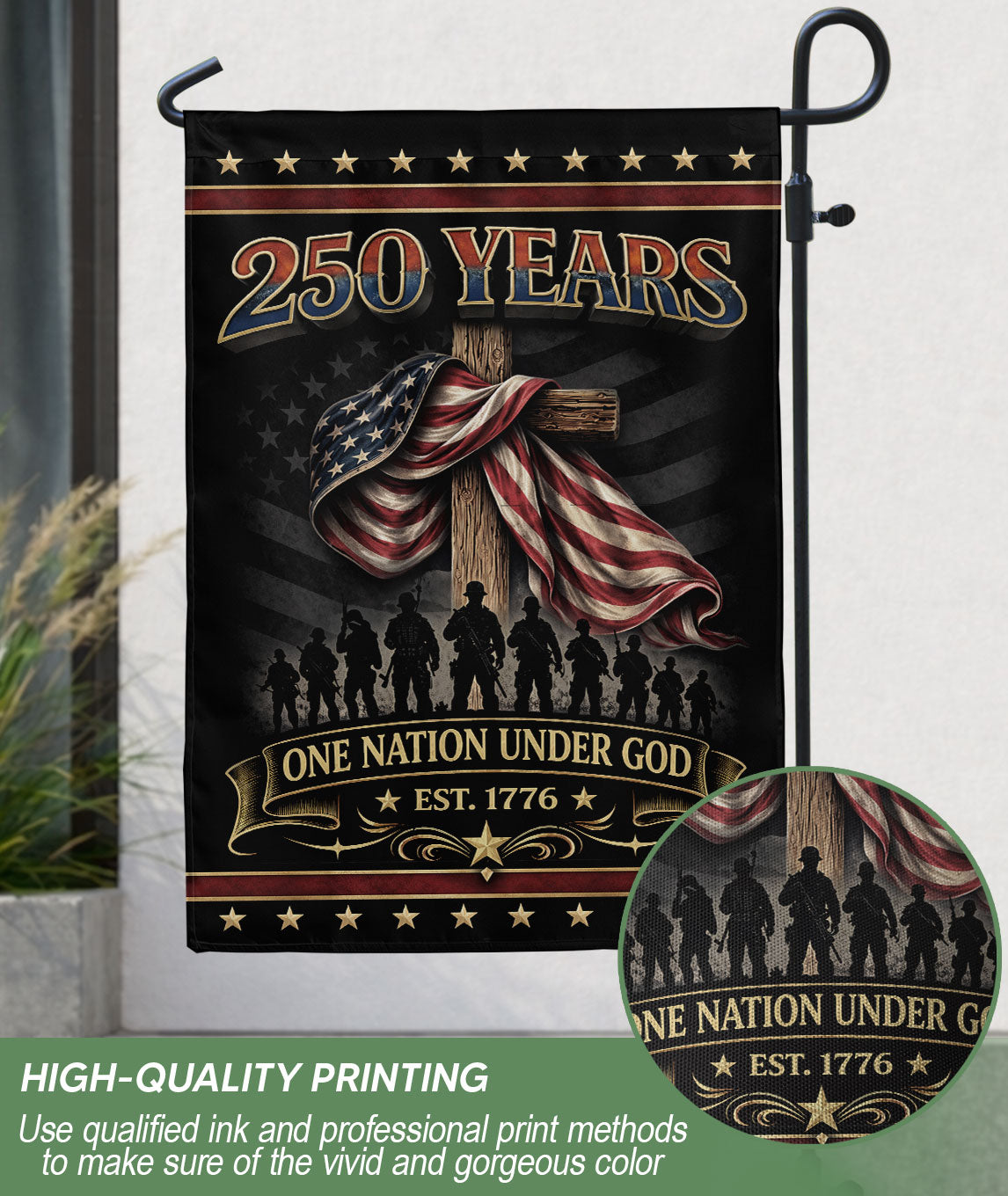 250th Anniversary USA Patriotic Garden Flag – One Nation Under God, We The People Cross Eagle Design
