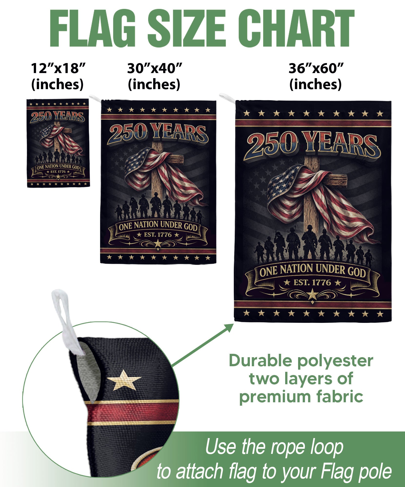 America 250th Anniversary Double-Sided Flag 1776-2026 Bald Eagle Cross One Nation Under God Banner