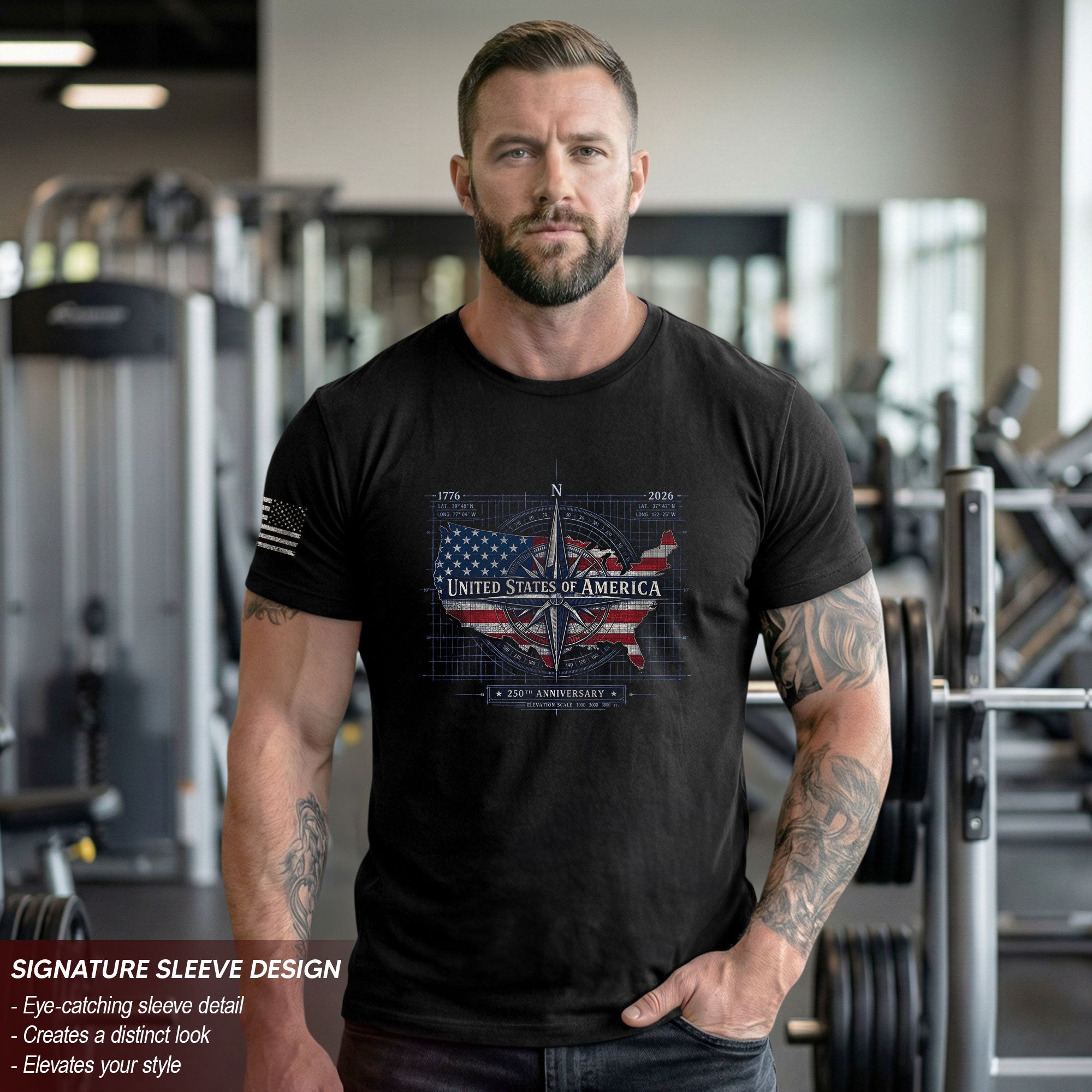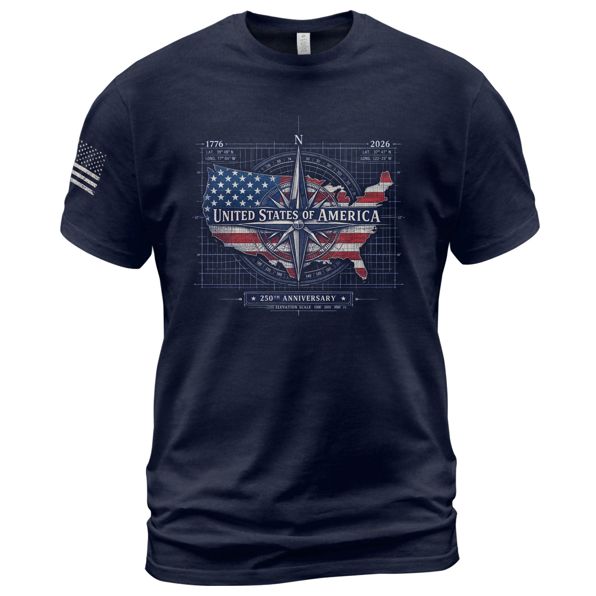 Focused on freedom, proud of the legacy.Featuring the USA flag and bold 250th birthday details, this tee honors two and a half centuries of freedom, resilience, and unwavering American pride since 1776.