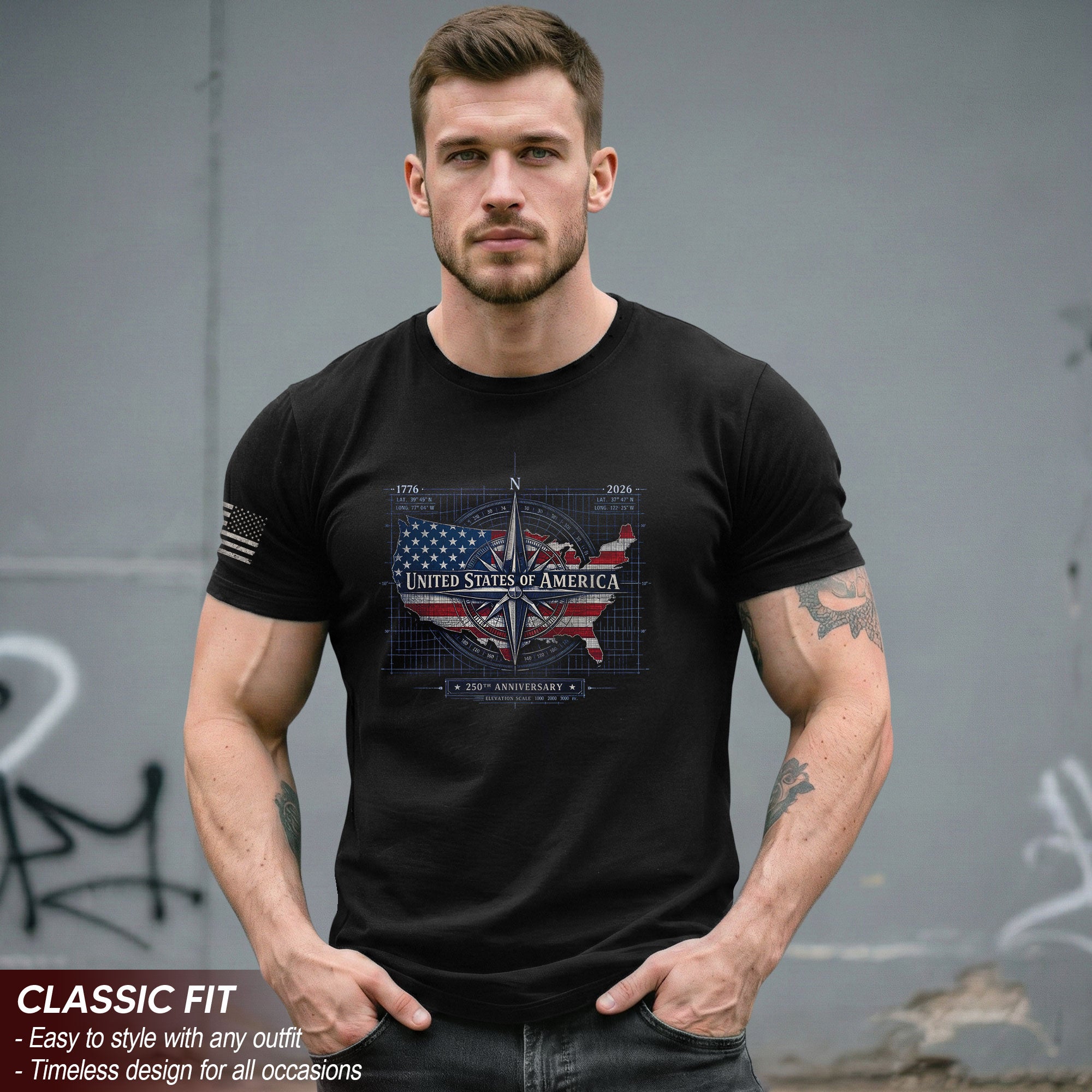 250th Anniversary USA Shirt 1776-2026 – Patriotic US Flag Freedom Tee, American Birthday Mens T-Shirt