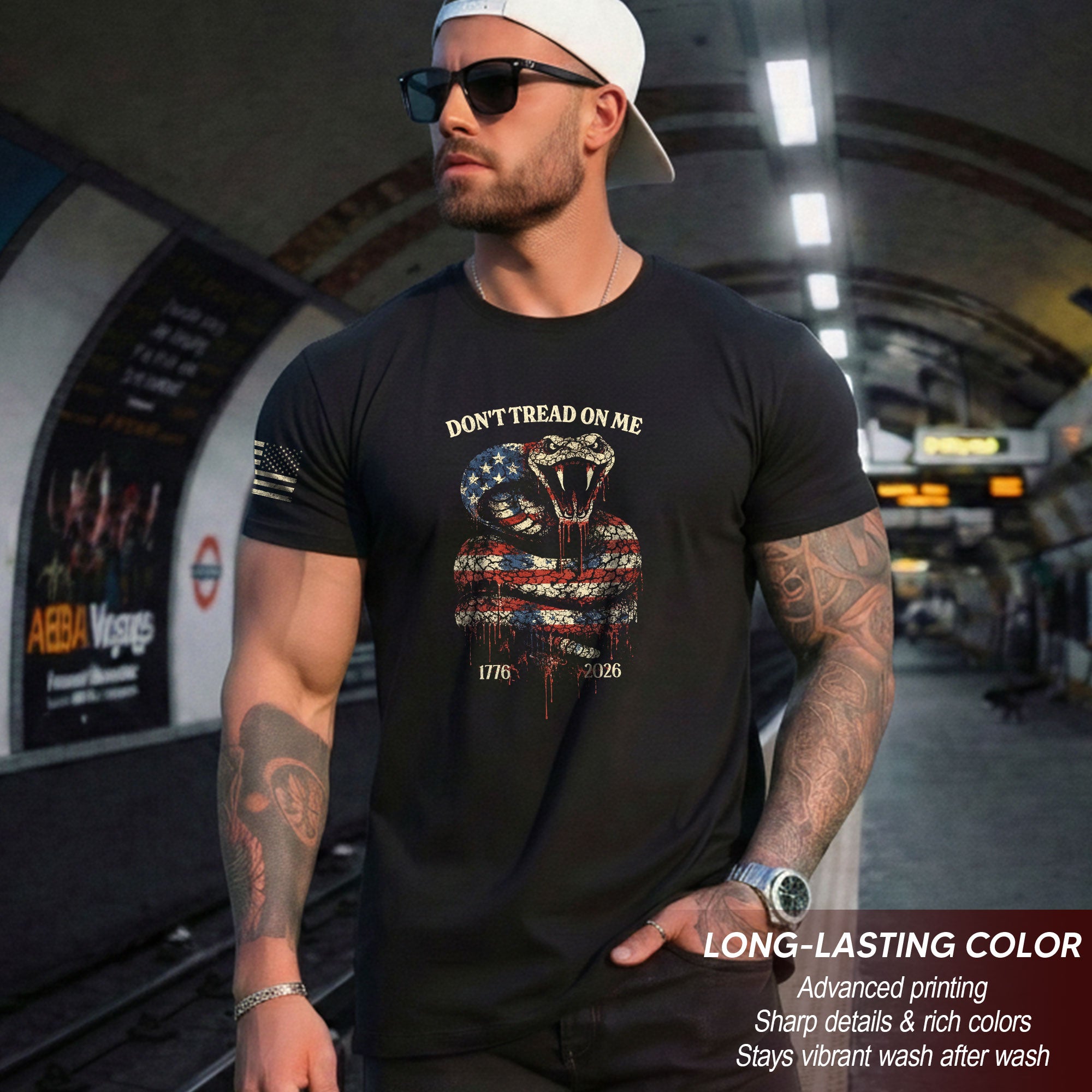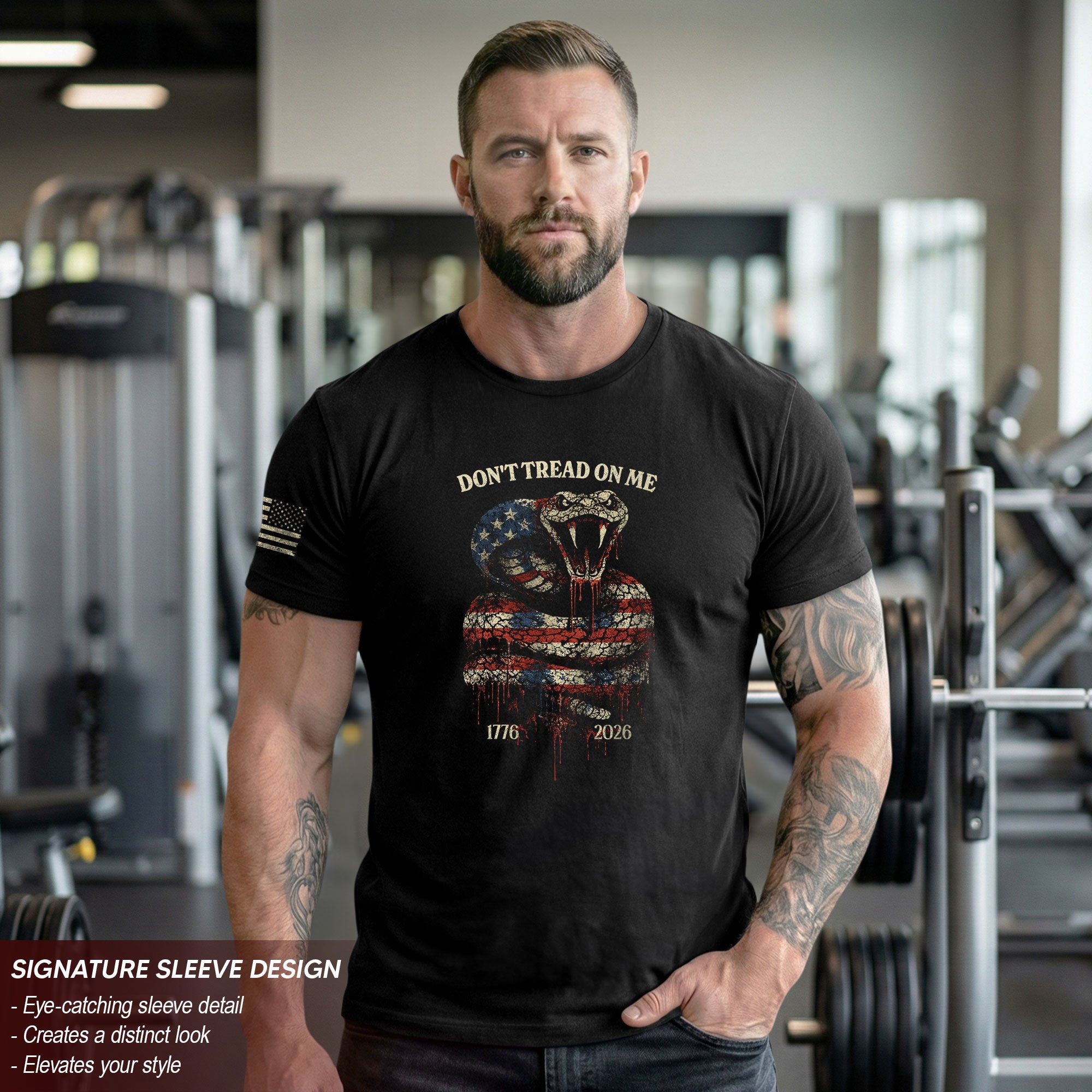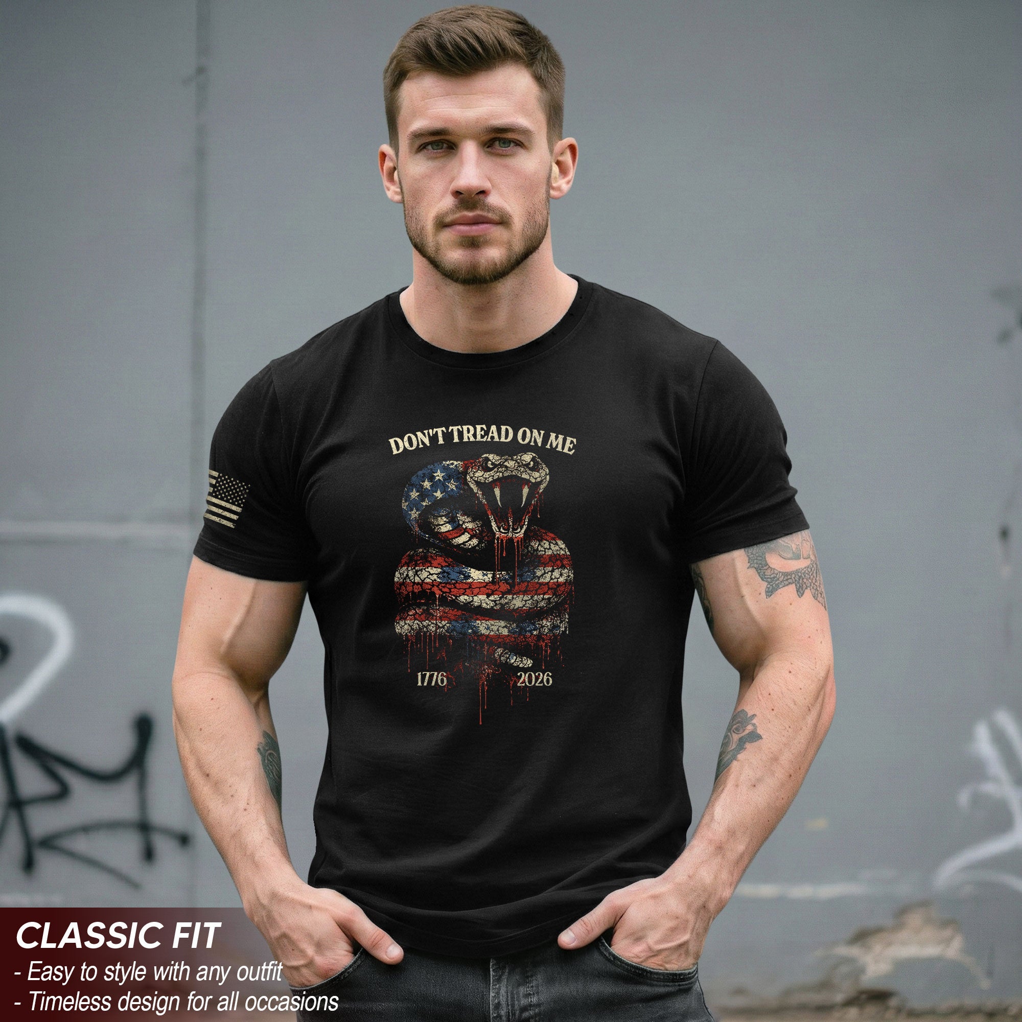 Rooted in Revolutionary-era symbolism.Inspired by the historic Gadsden Flag motif, the coiled snake and bold message reflect independence, determination, and the spirit of liberty that has defined America since 1776.