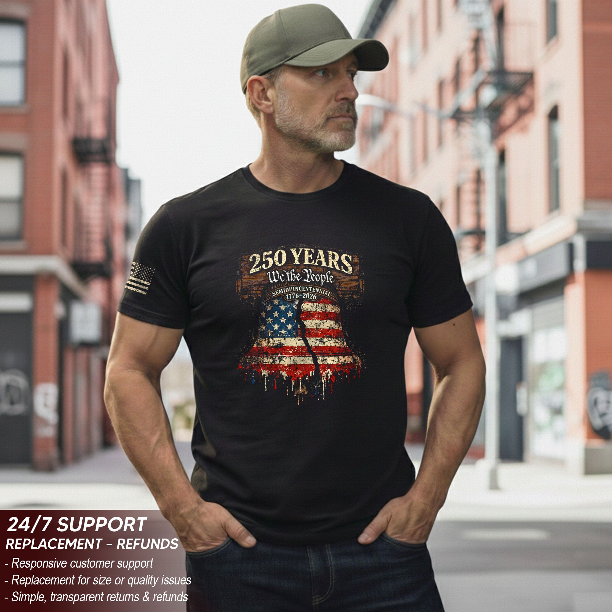 A meaningful tribute to America’s founding spirit.Featuring “We The People” alongside the historic Liberty Bell, this design commemorates 250 years of independence, unity, and constitutional pride from 1776 to 2026.