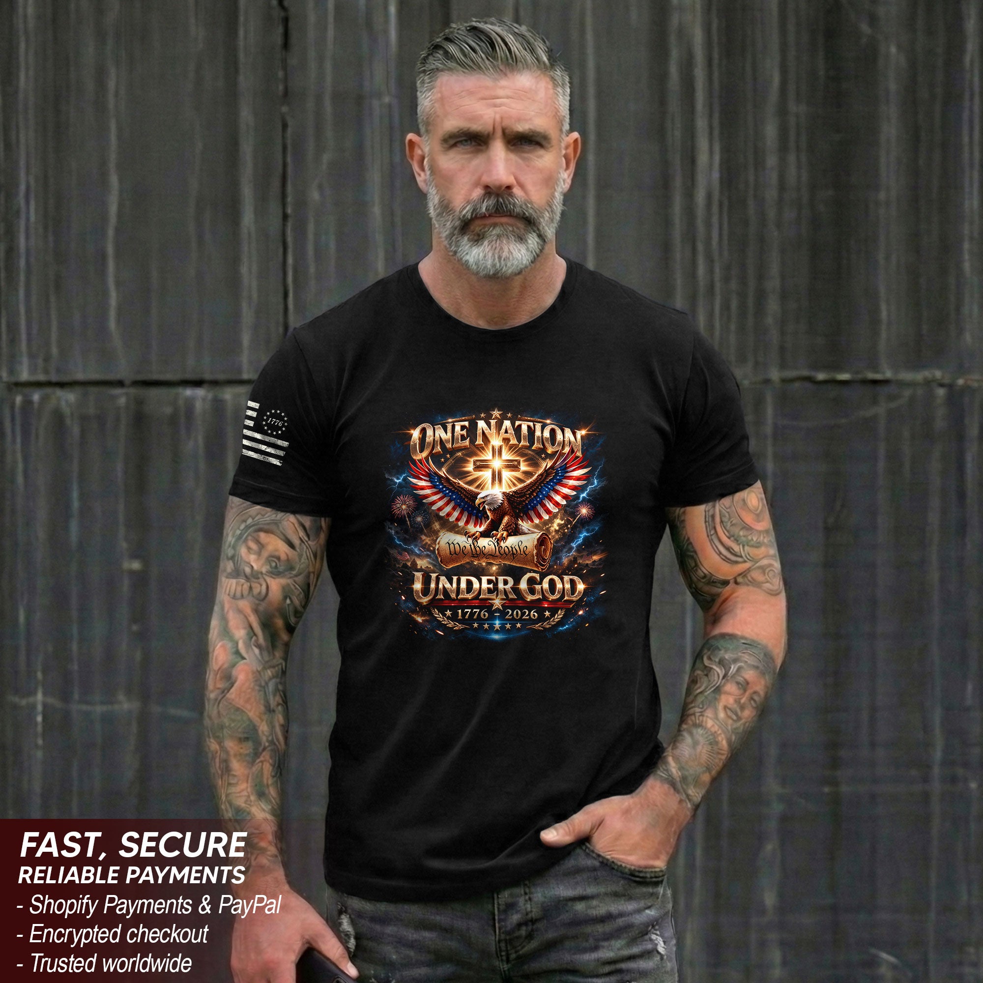 America 250th Anniversary 1776-2026 T-Shirt – We The People Eagle Cross & Constitution One Nation Under God Bootleg Shirt
