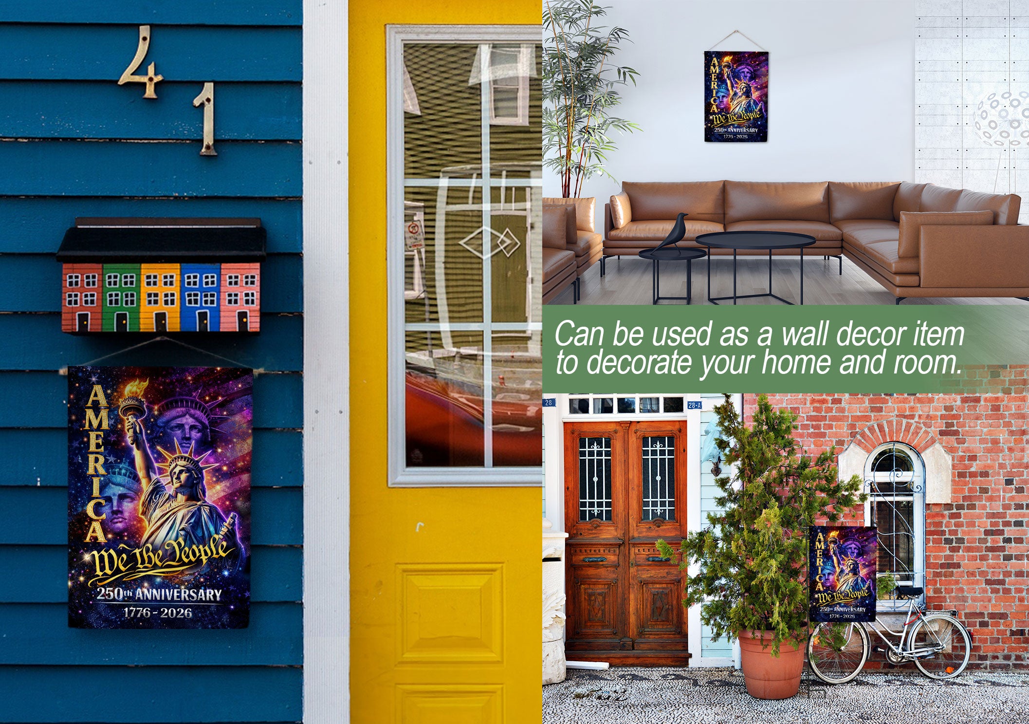 Celebrate the United States’ 250th anniversary with this premium double-sided garden flag featuring the iconic Statue of Liberty and bold ‘We The People’ design. Marking the historic span from 1776 to 2026, it symbolizes 250 years of American freedom, unity, and national pride. Perfect for displaying on garden stakes, porches, mailboxes, or patios to showcase your patriotic spirit year-round.