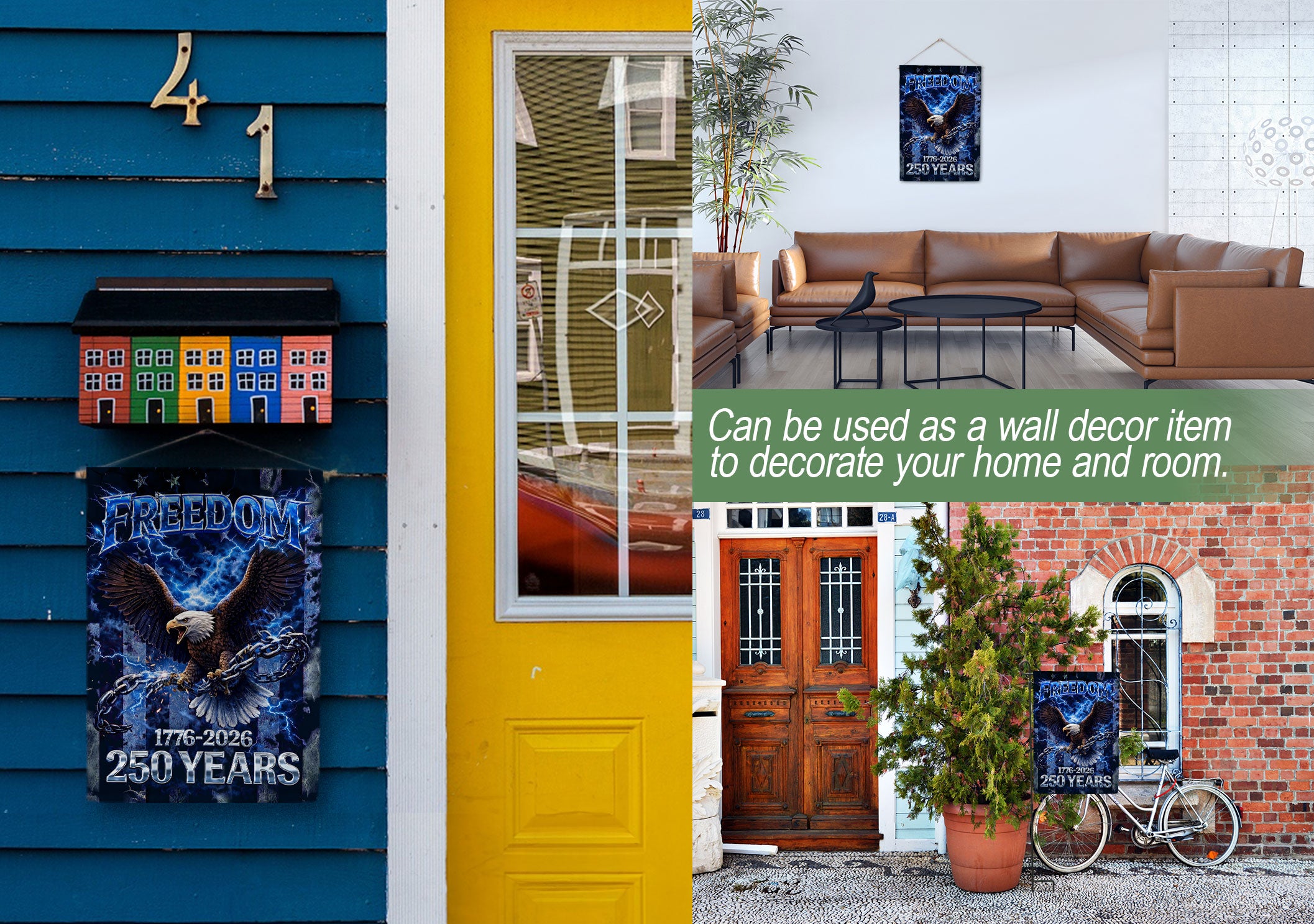 Celebrate America’s 250th anniversary from 1776 to 2026 with this striking double-sided house flag featuring a powerful patriotic Freedom Eagle design. Crafted for outdoor durability, this house flag proudly displays the enduring spirit of independence and national pride. Perfect for porches, patios, gardens, or any outdoor space, it withstands weather elements while maintaining vibrant colors on both sides. Ideal for patriots honoring U.S. history, Fourth of July, Memorial Day, or everyday display of American heritage. Easy to hang with standard flagpole hardware, this 28×40-inch flag combines high-quality polyester fabric with vivid printing for long-lasting beauty.