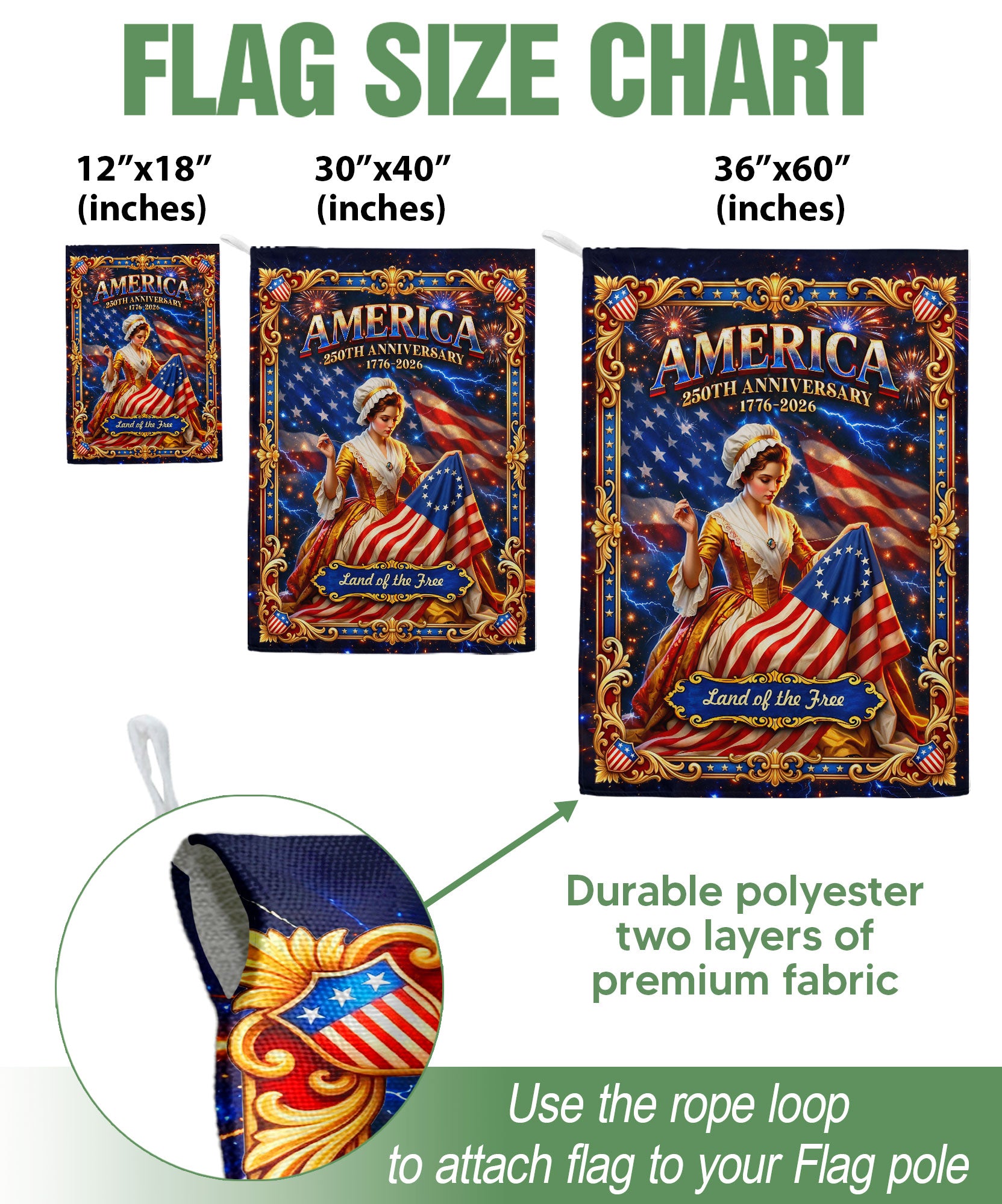 America 250th Anniversary House Flag Betsy Ross Land of the Free 1776-2026