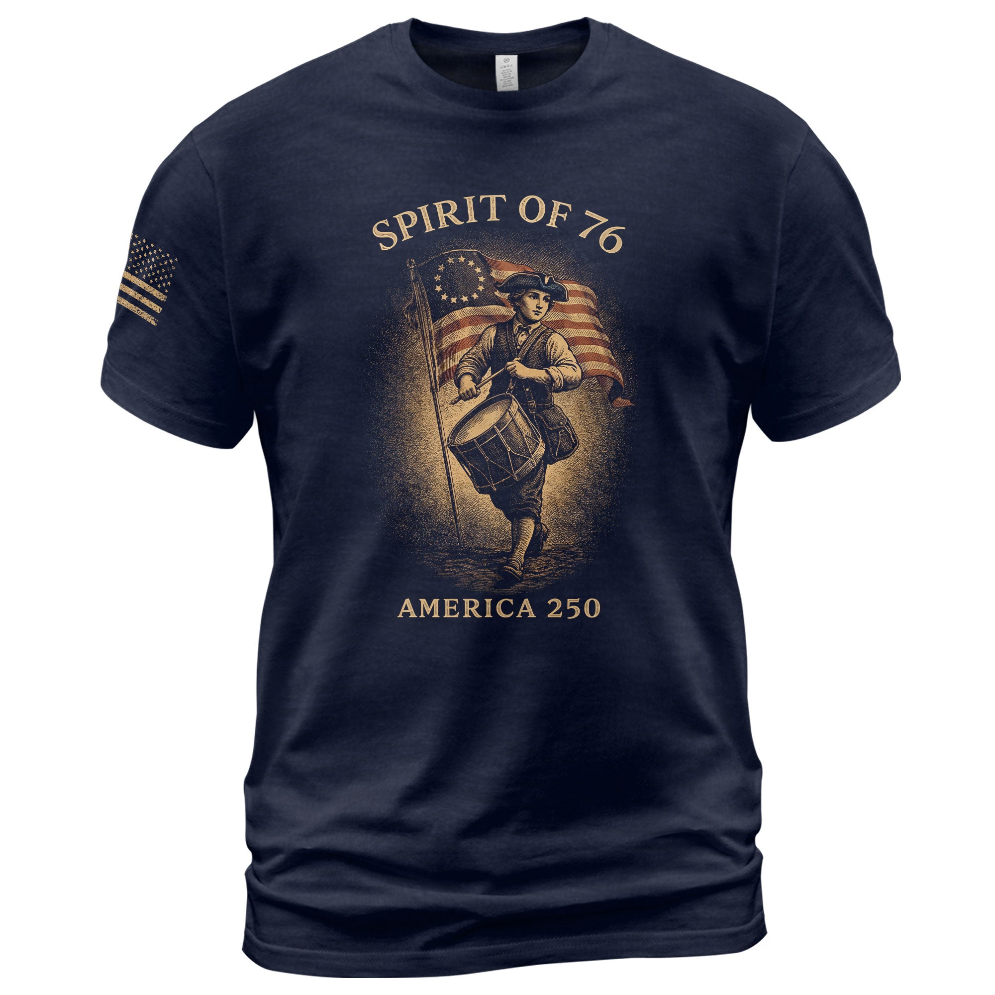 Echoes of independence that still inspire today.Showcasing the legendary Spirit of ’76 drummer, this retro-inspired shirt honors the courage and determination that sparked a nation and celebrates two and a half centuries of liberty.