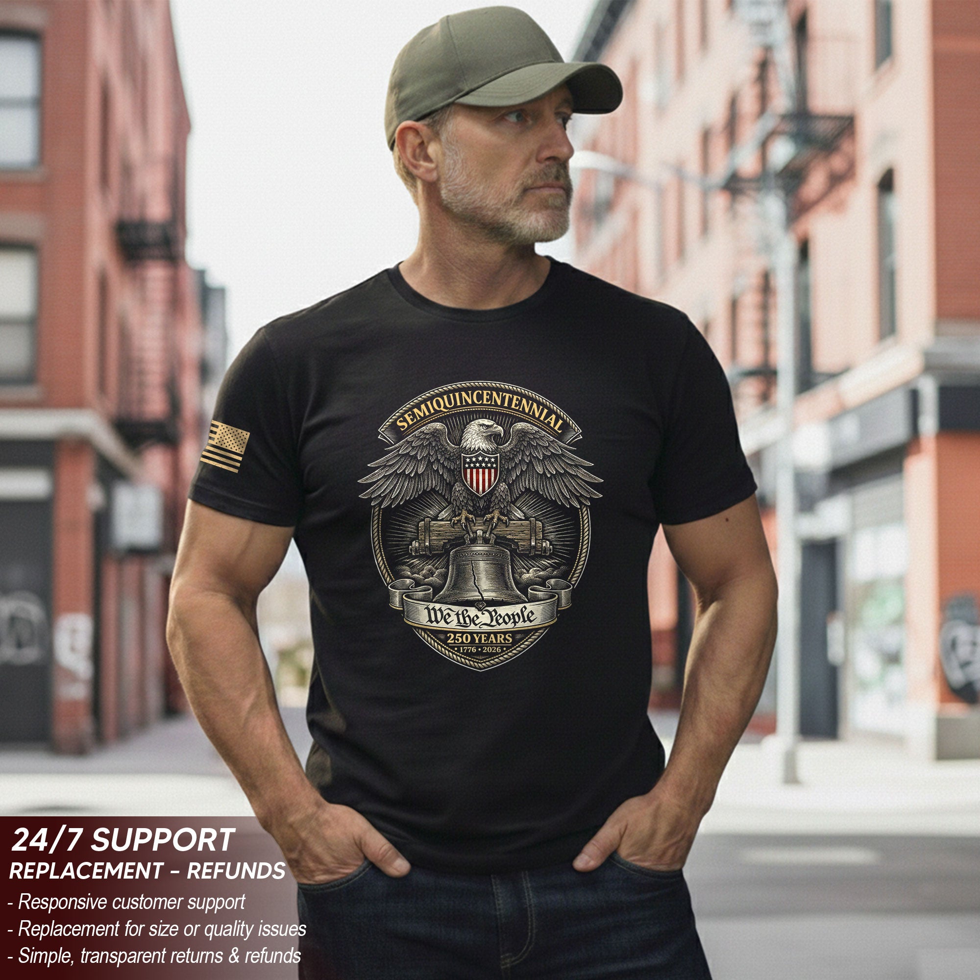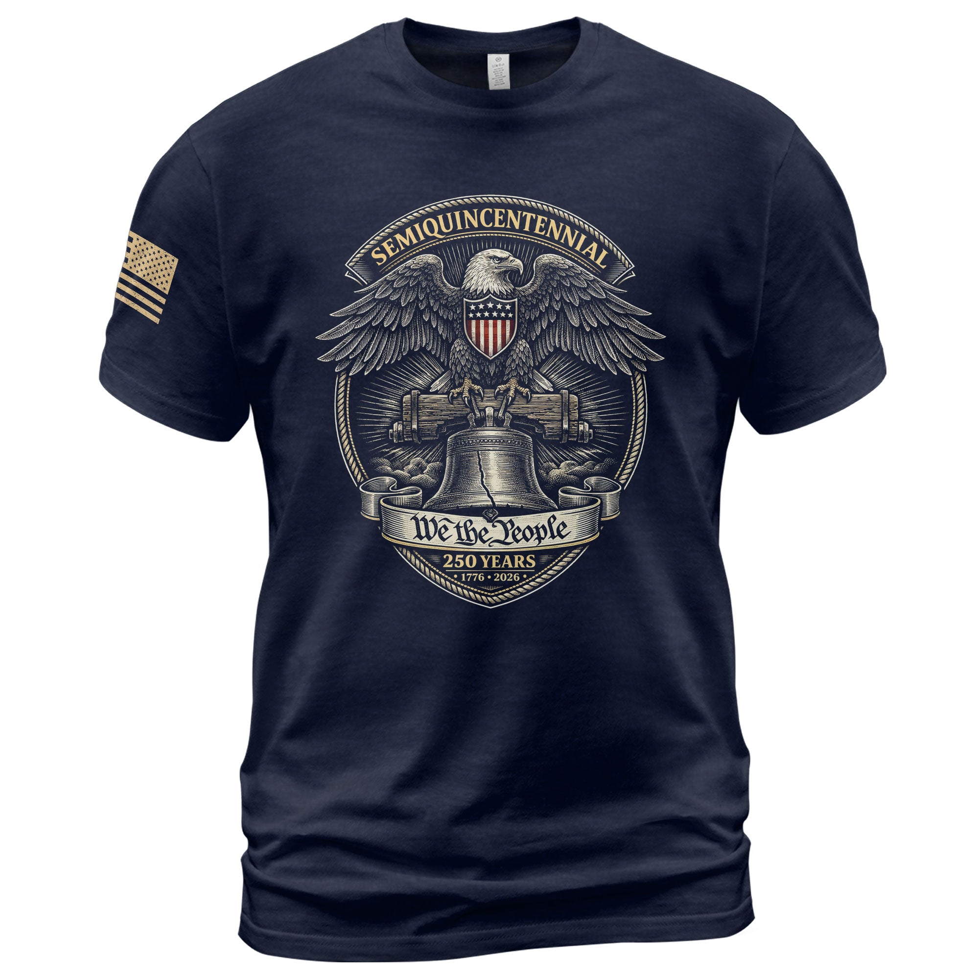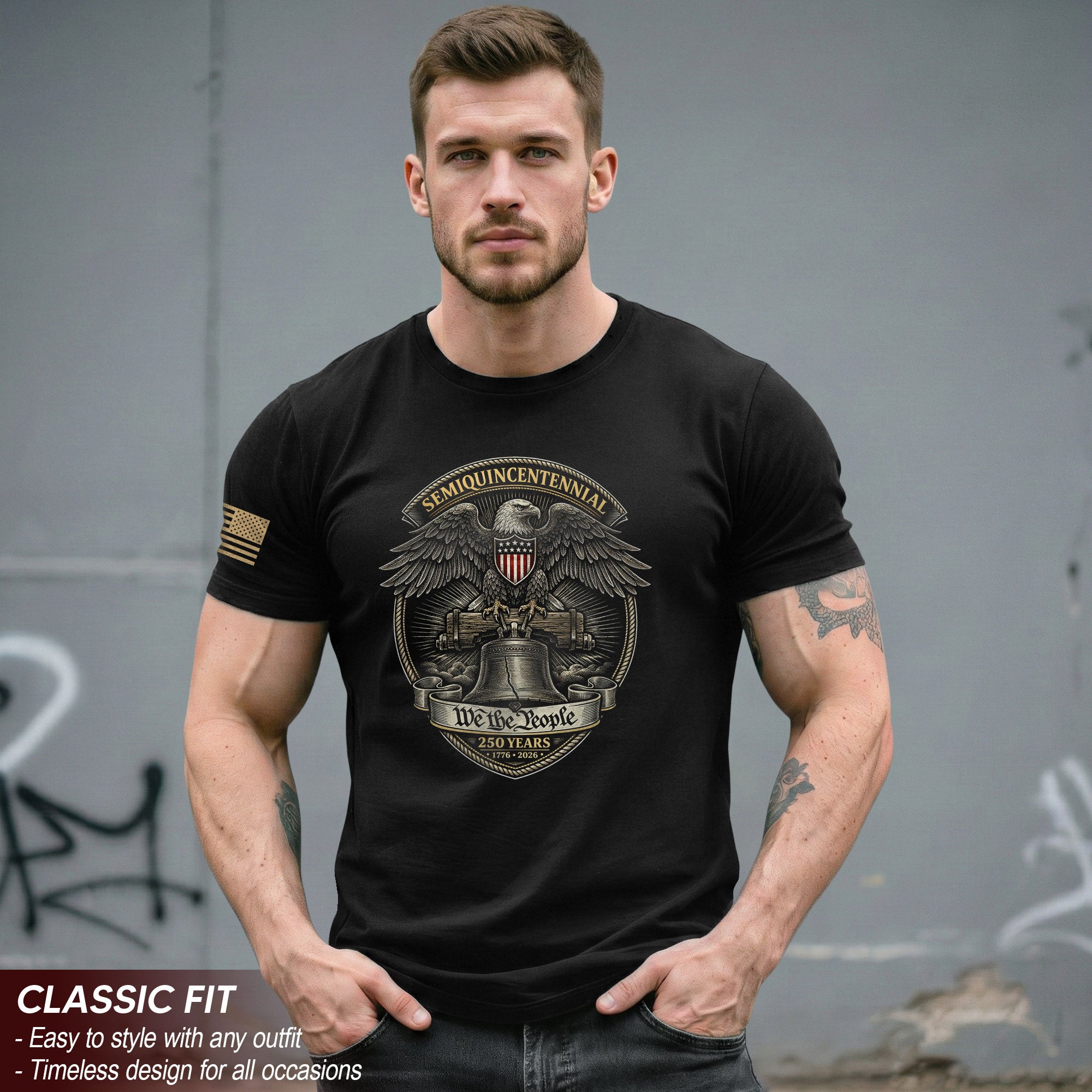 A powerful blend of history and pride.Featuring the iconic Liberty Bell, a bold eagle, and the words “We The People,” this design honors 250 years of American independence and the enduring spirit that unites the nation from 1776 to 2026.