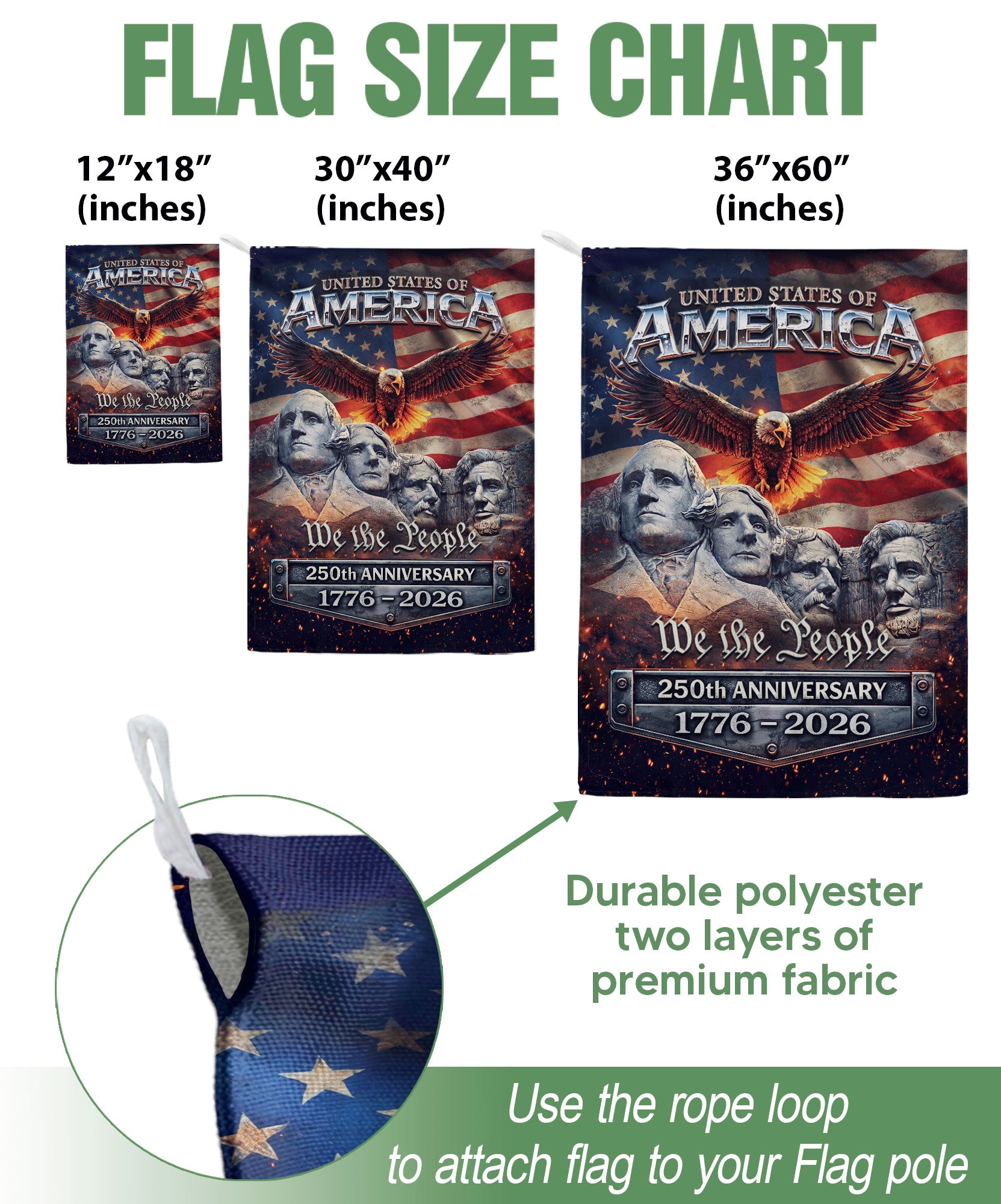 American Flag 250 Years Anniversary House Flag 1776-2026 Mount Rushmore Eagle Patriotic Outdoor Yard Decor