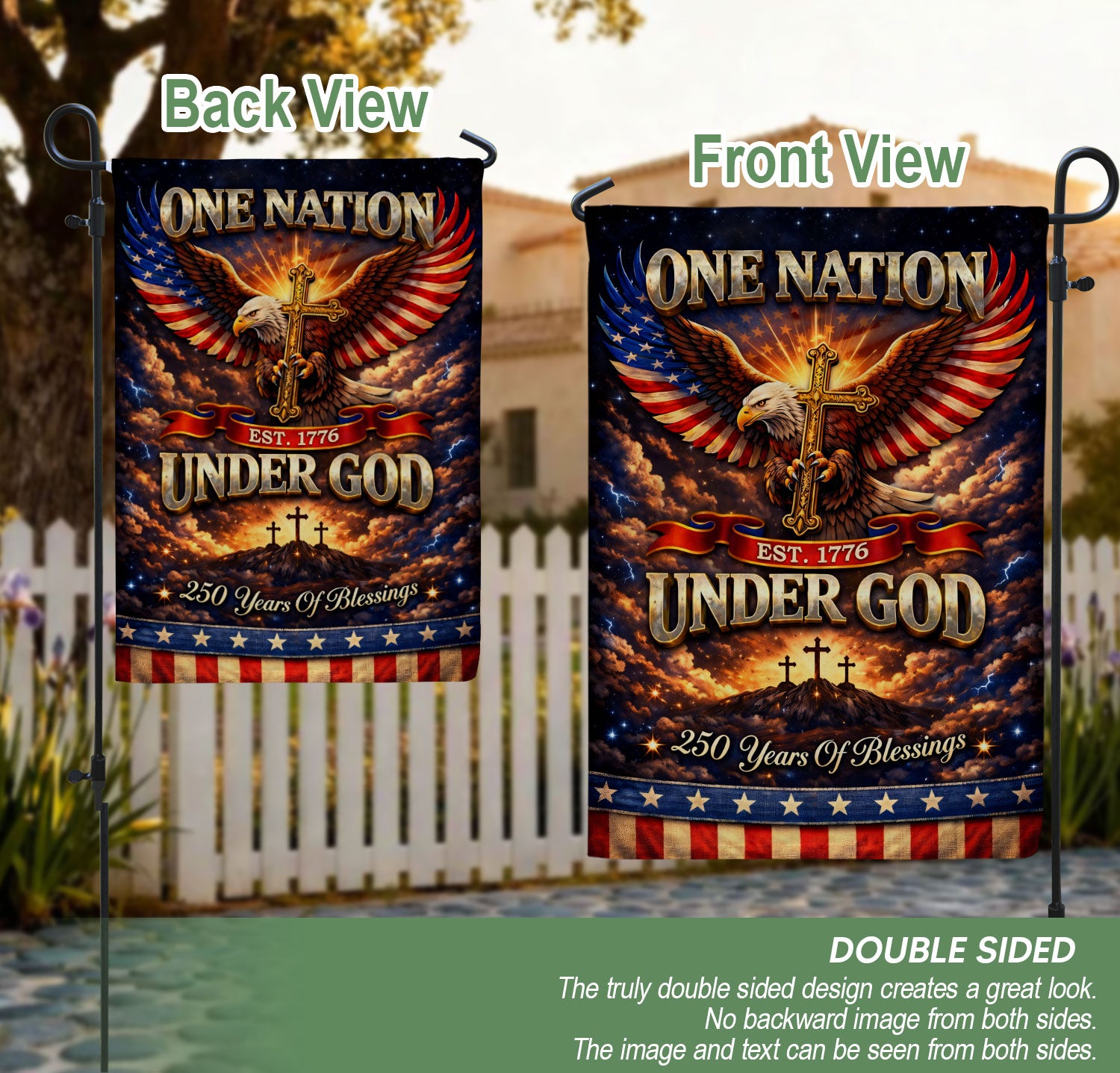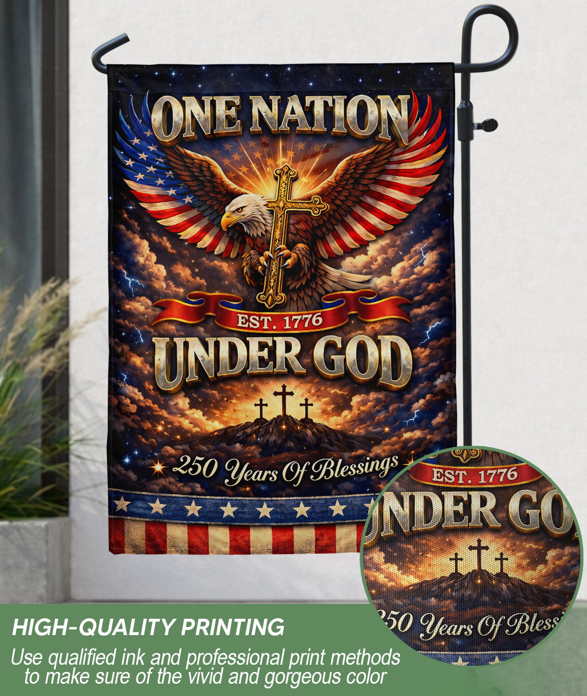 Christian One Nation Under God 250th USA Anniversary Garden Flag 1776-2026 Eagle Cross