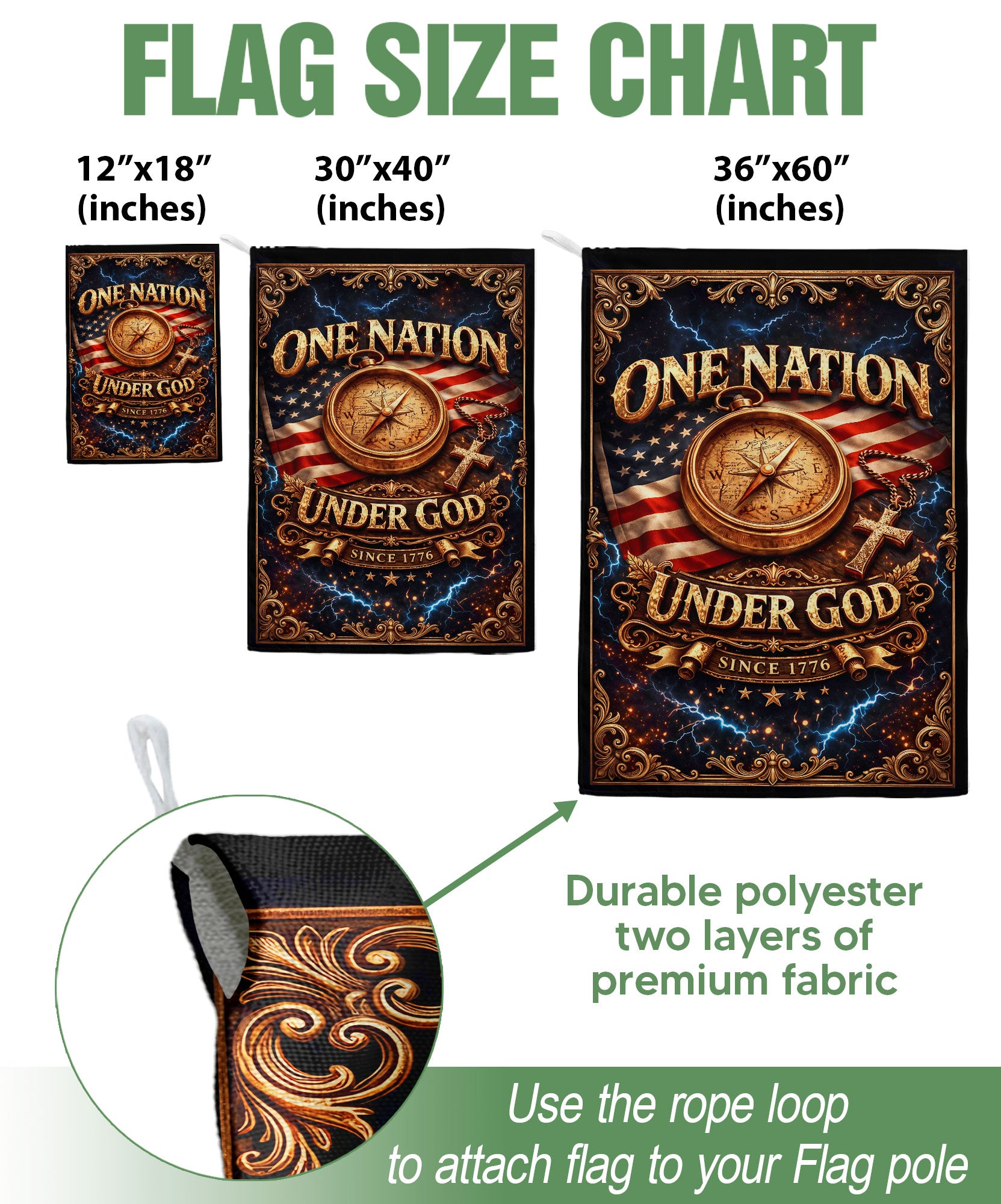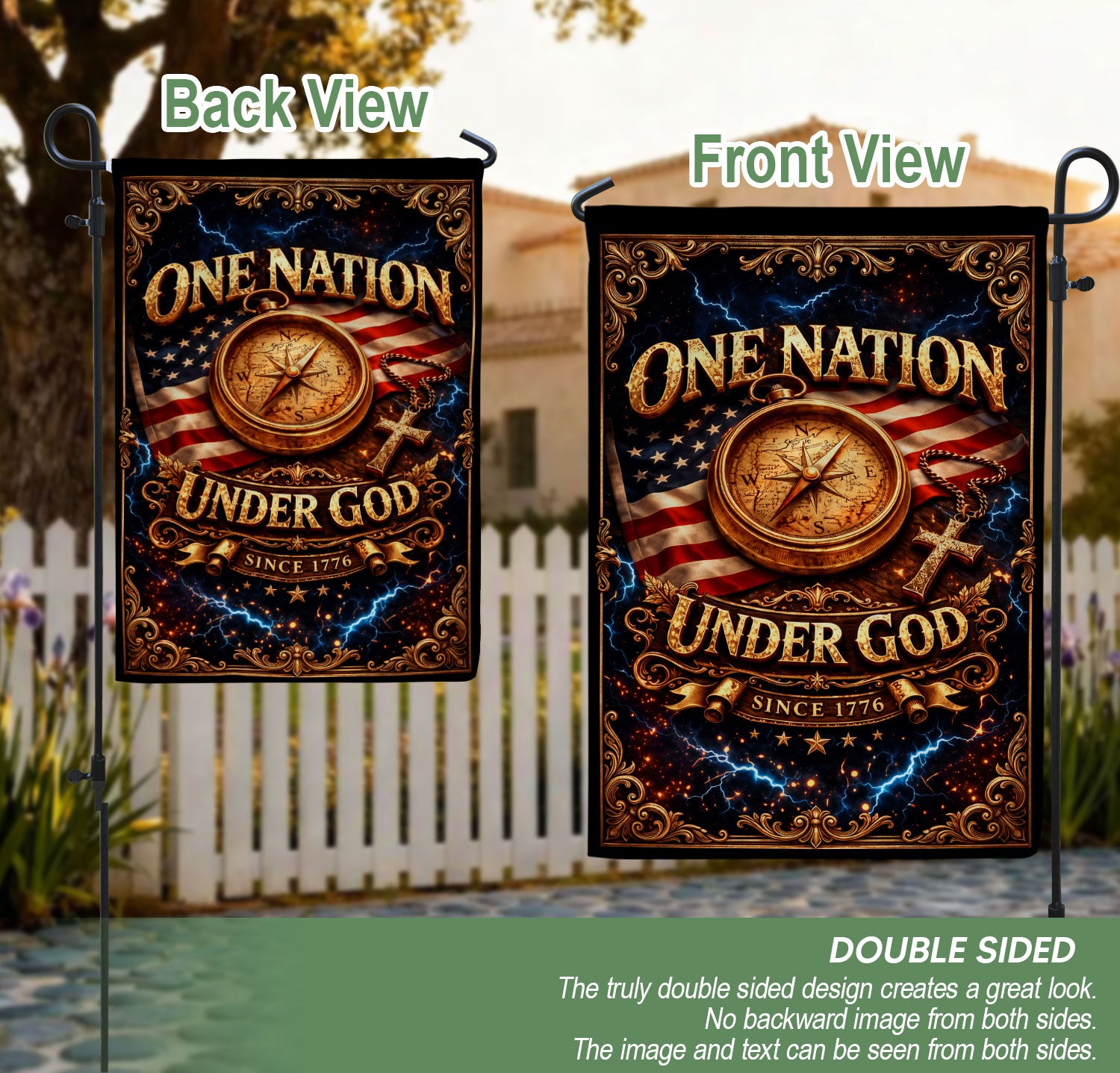Christian One Nation Under God Since 1776 250th Anniversary USA Garden Flag with Compass Cross Design