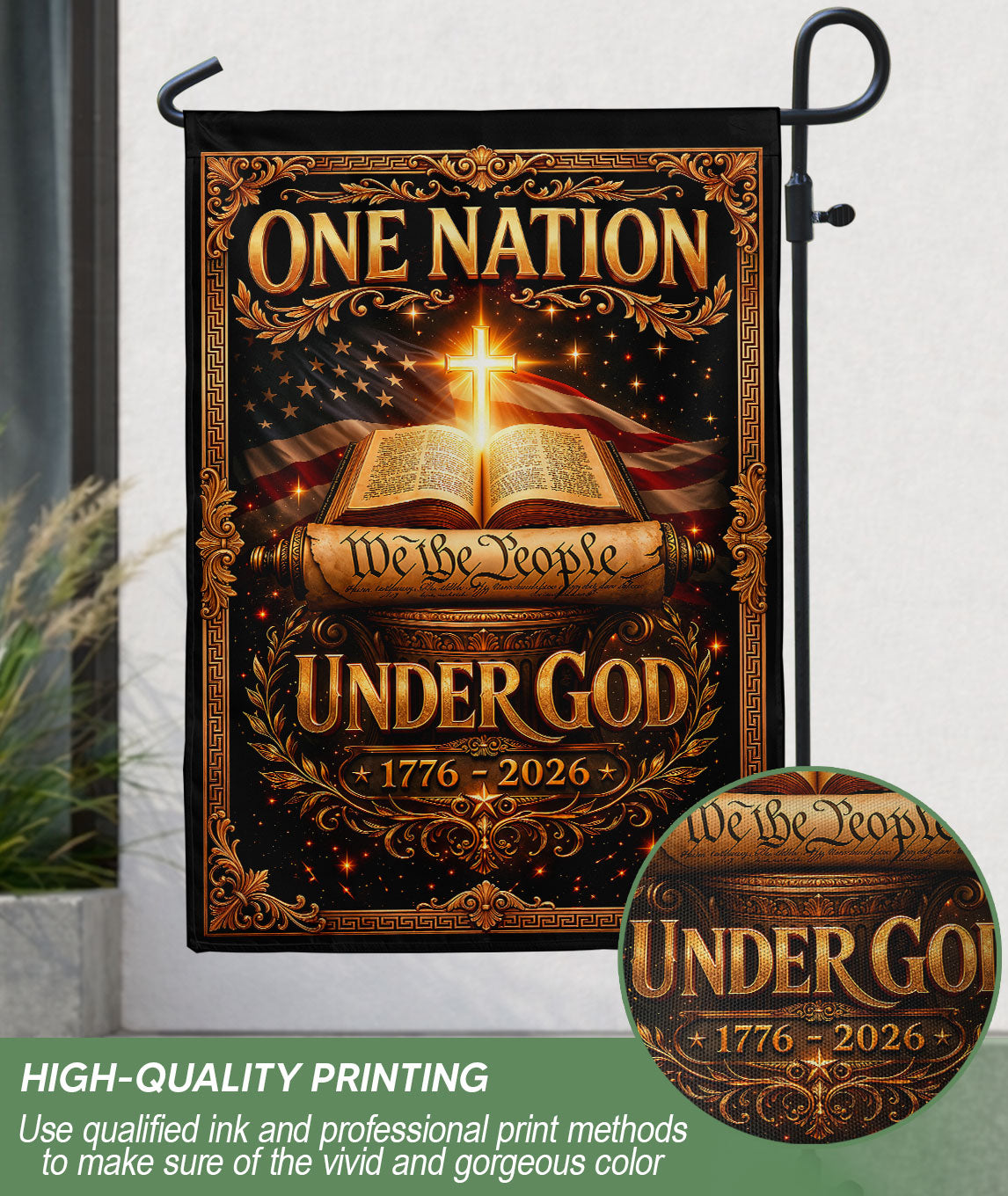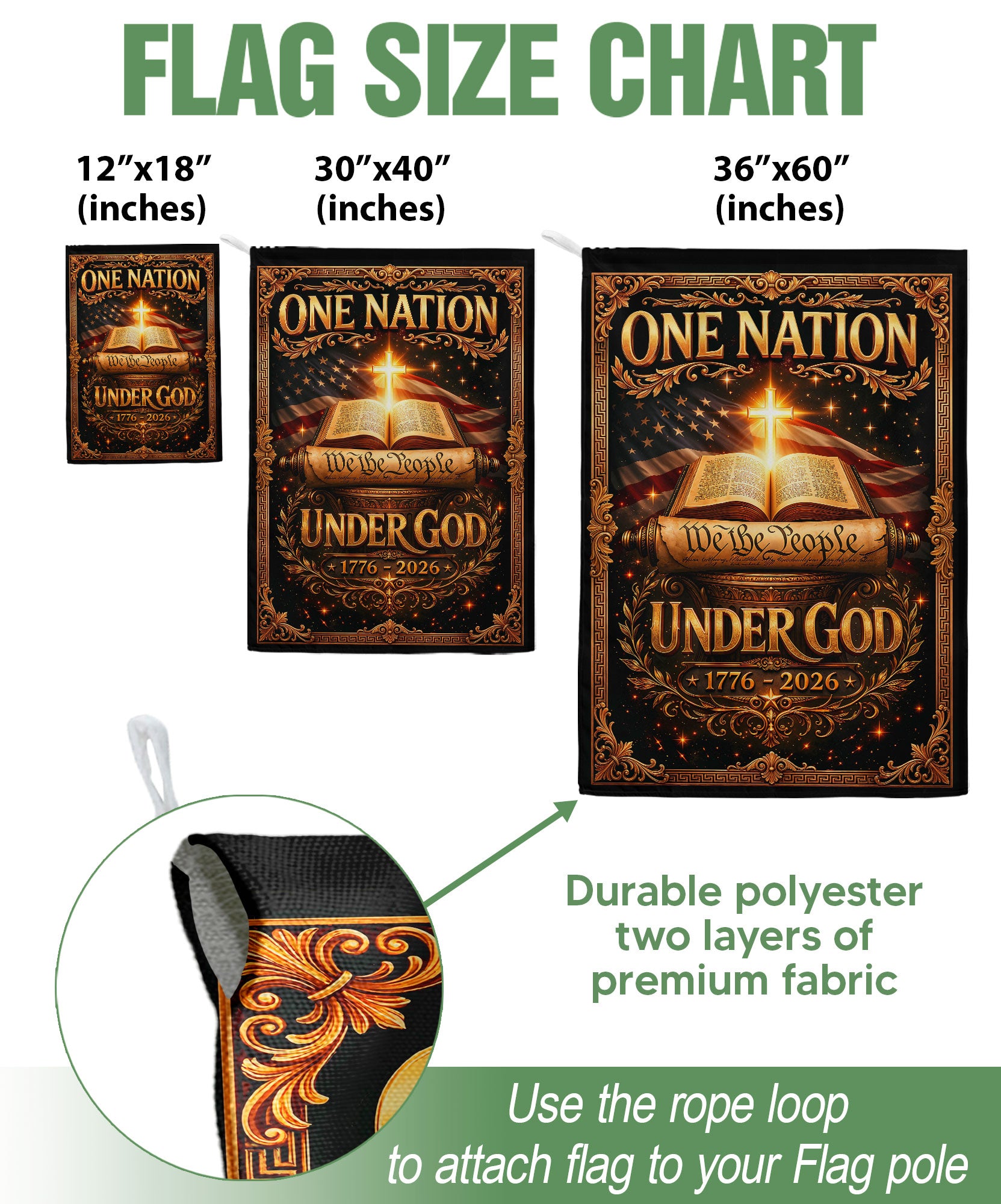 Christian One Nation Under God We The People 250th Anniversary USA House Flag 1776-2026 Bible Cross Patriotic Banner