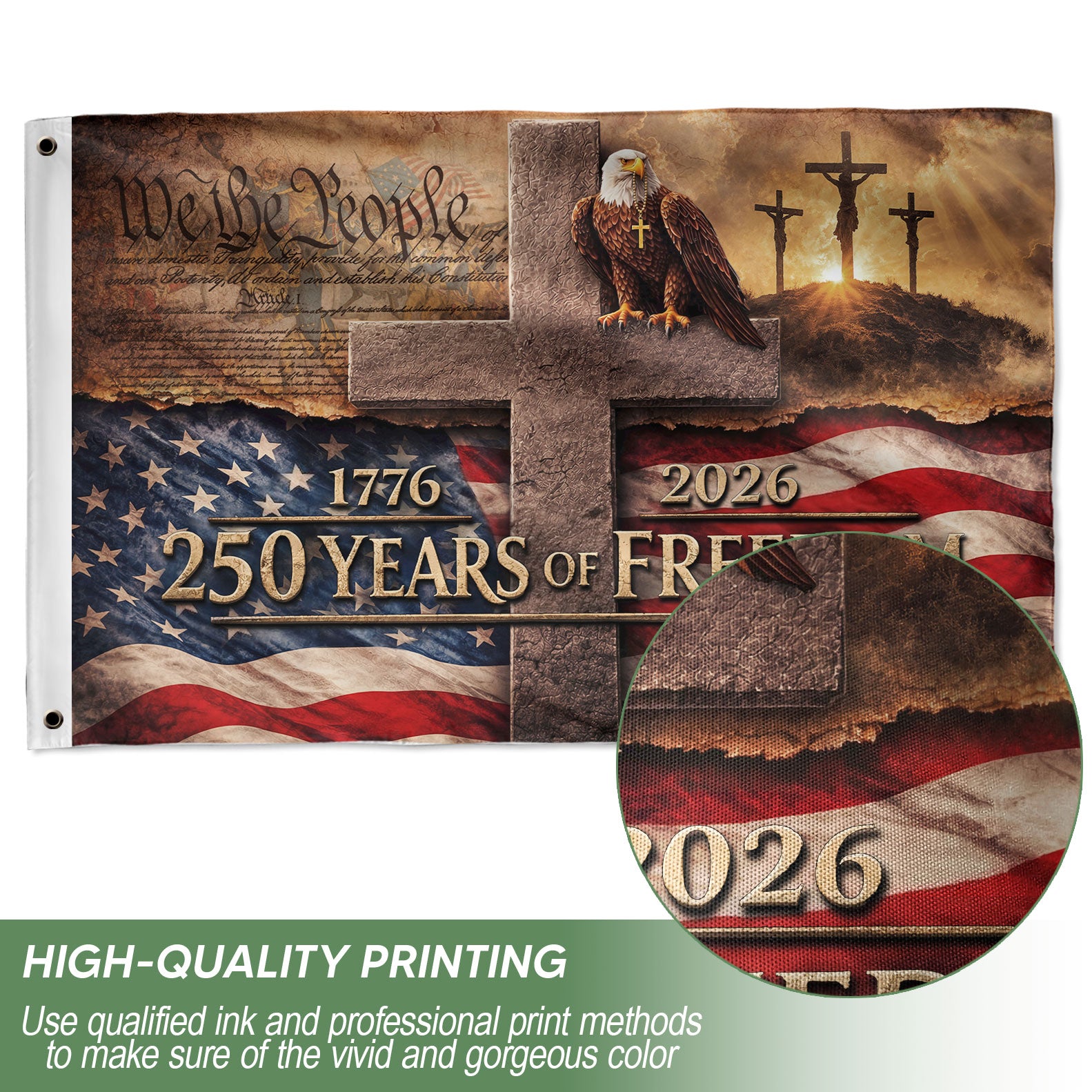 Christian We The People 250th Anniversary USA House Flag Cross Eagle 1776-2026
