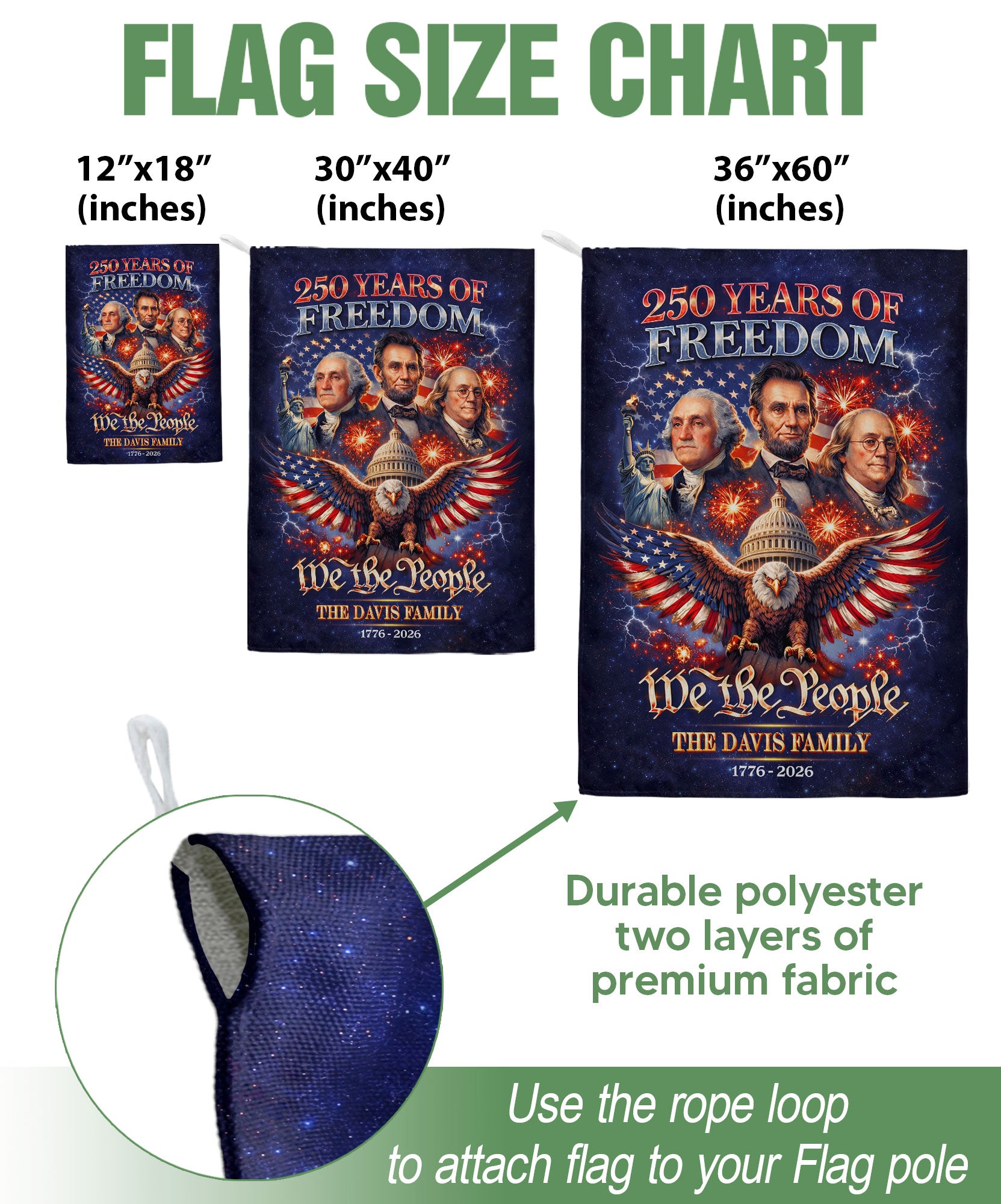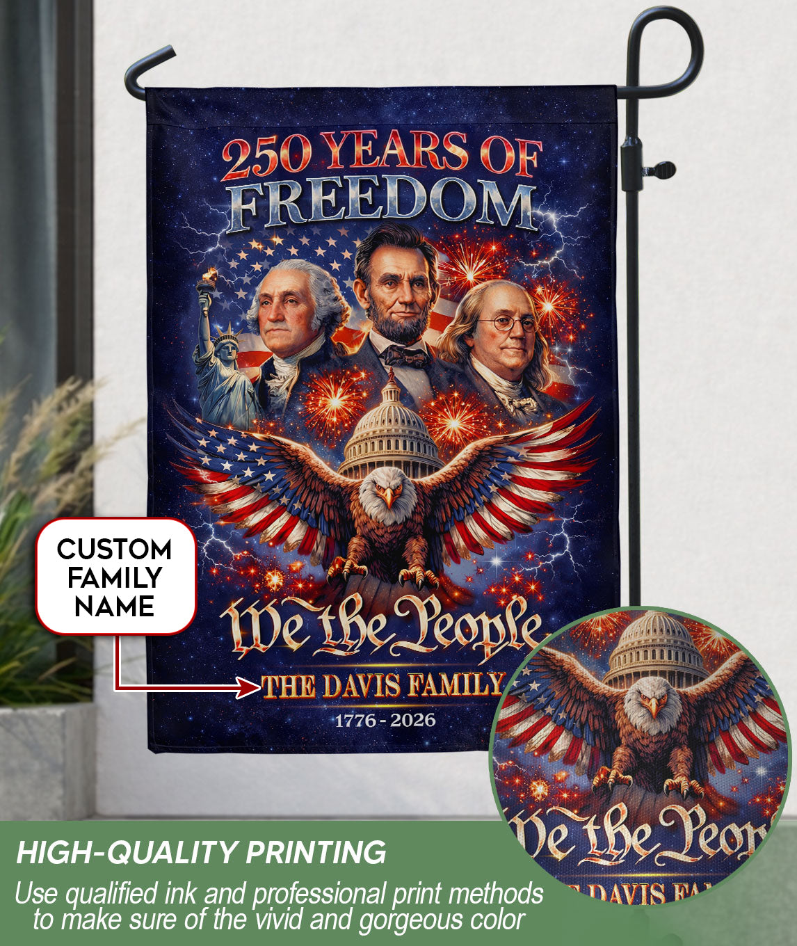 Custom Family Name 250th Anniversary Garden Flag Founding Fathers Eagle Capitol 1776-2026