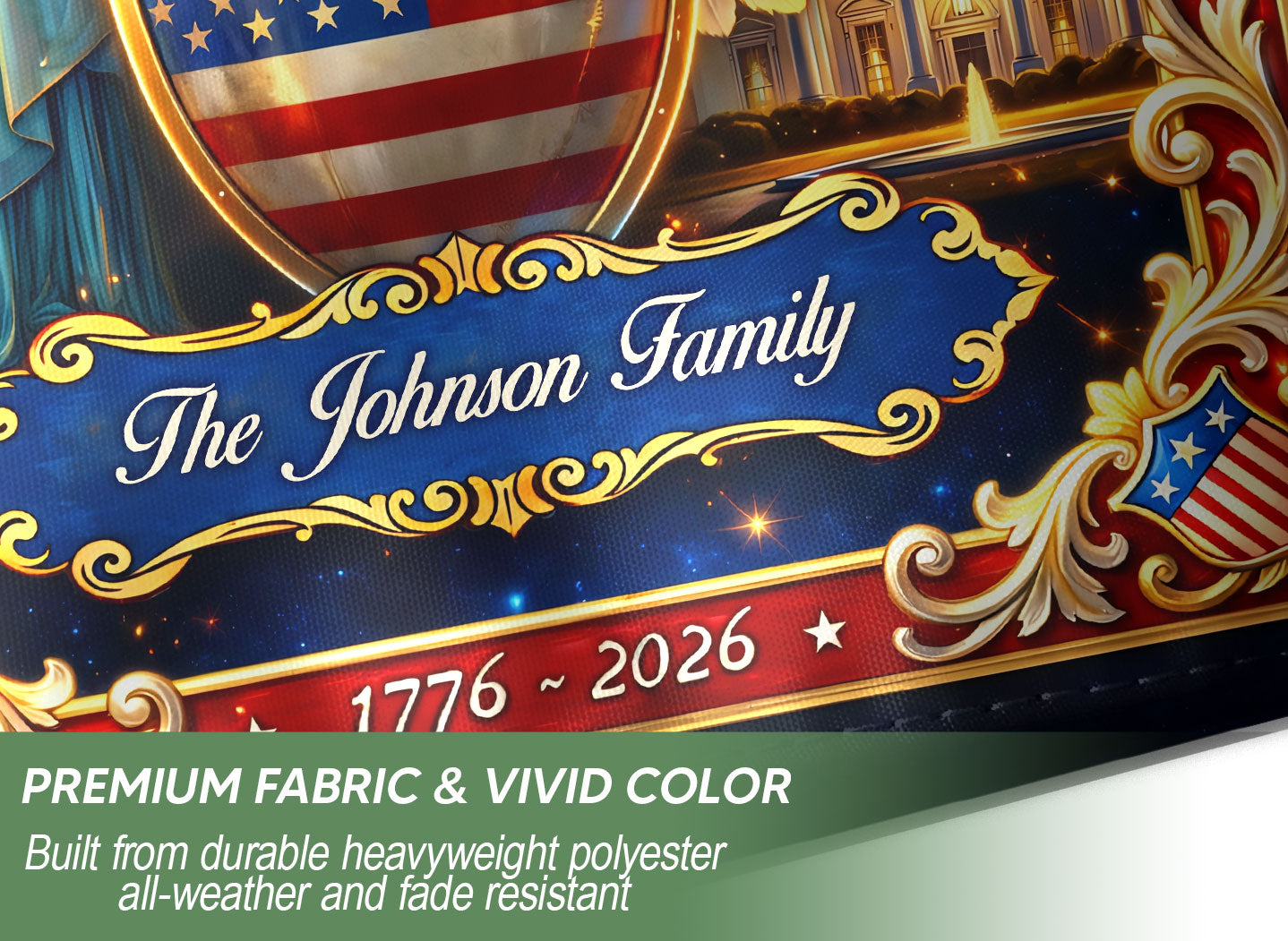Custom Family Name 250th Anniversary Garden Flag USA Eagle Statue of Liberty 1776-2026