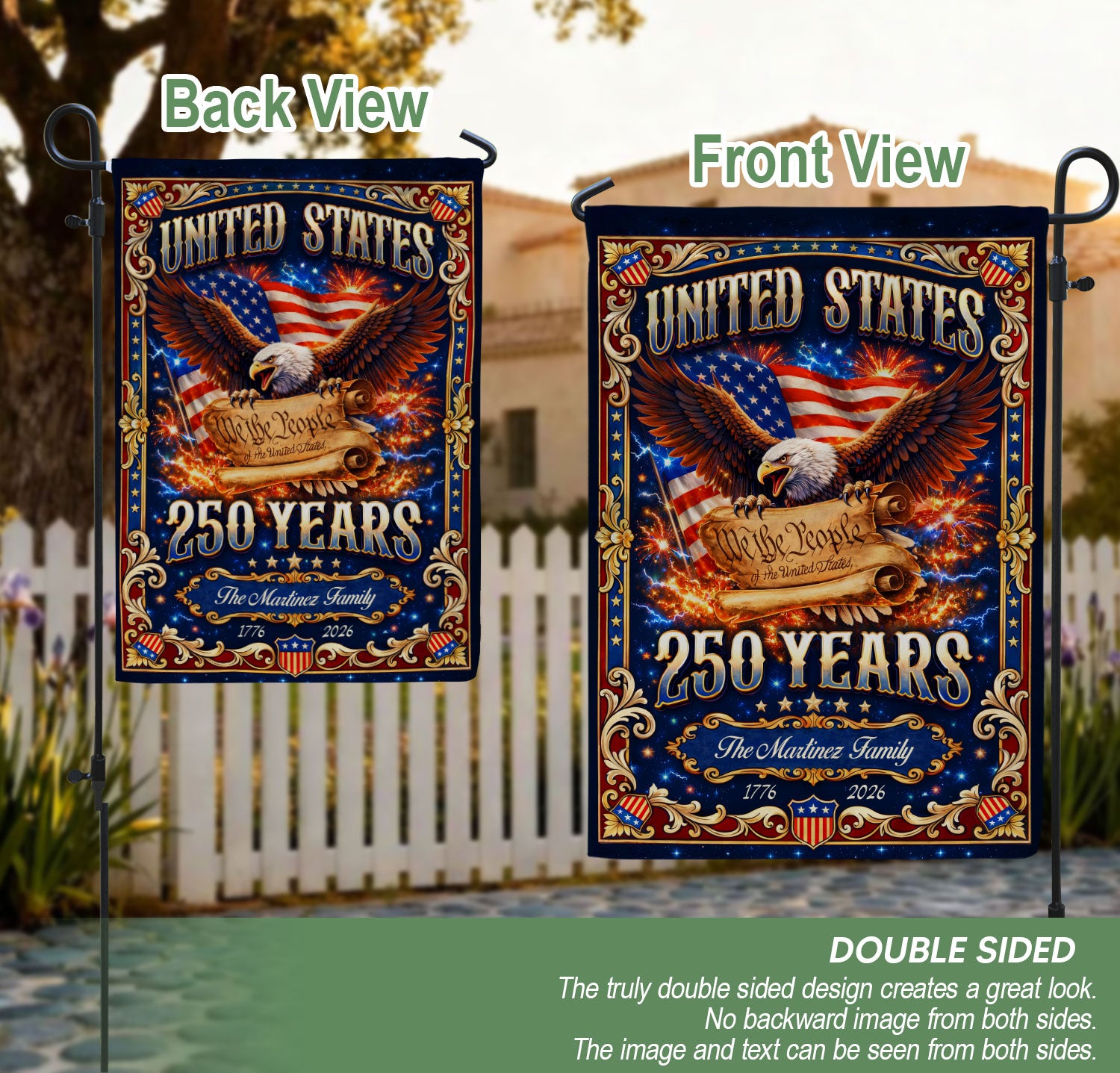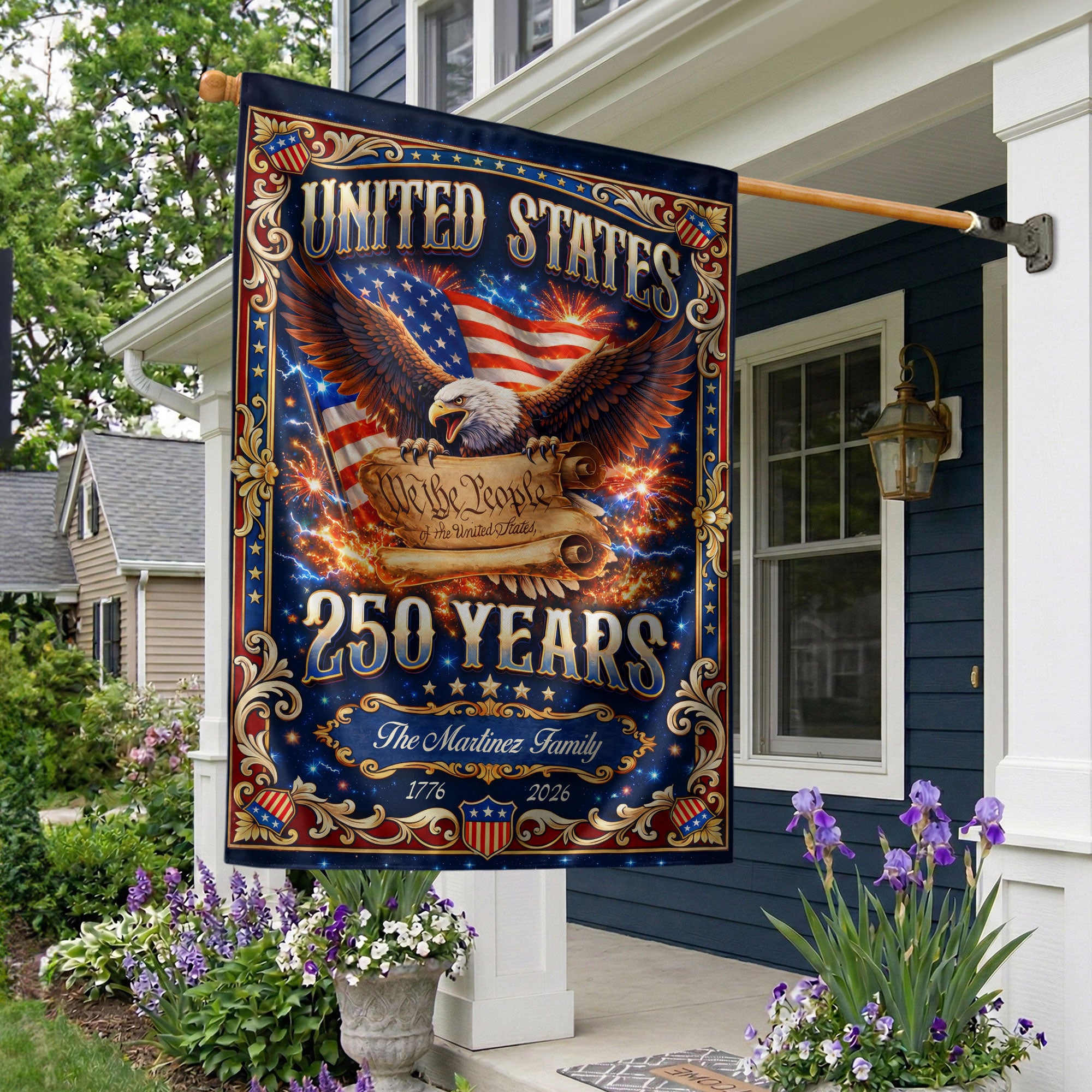 Custom Family Name 250th Anniversary Garden Flag USA Eagle We the People 1776-2026