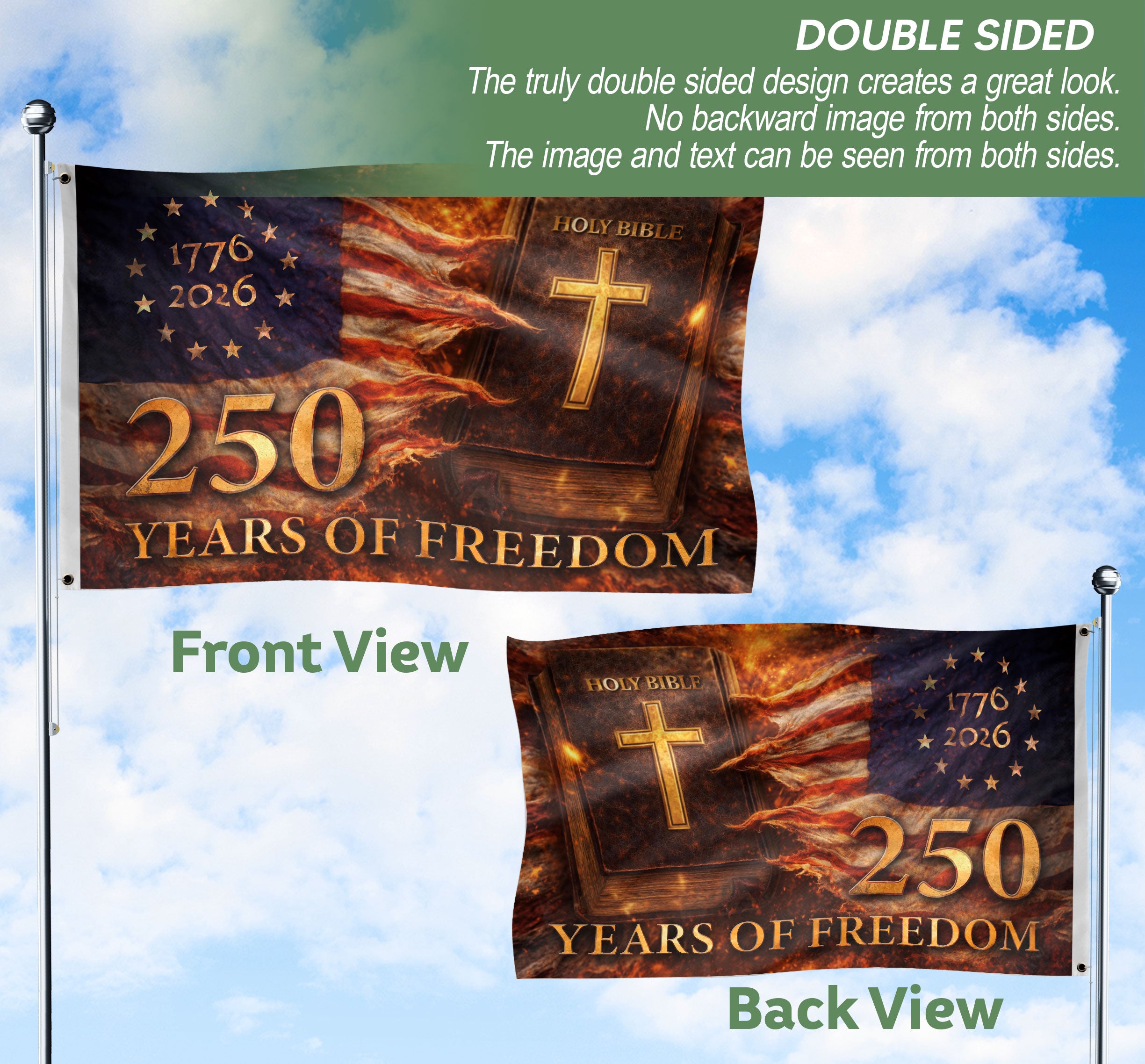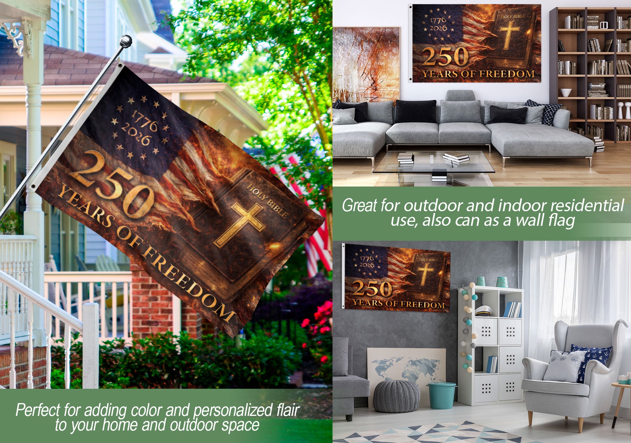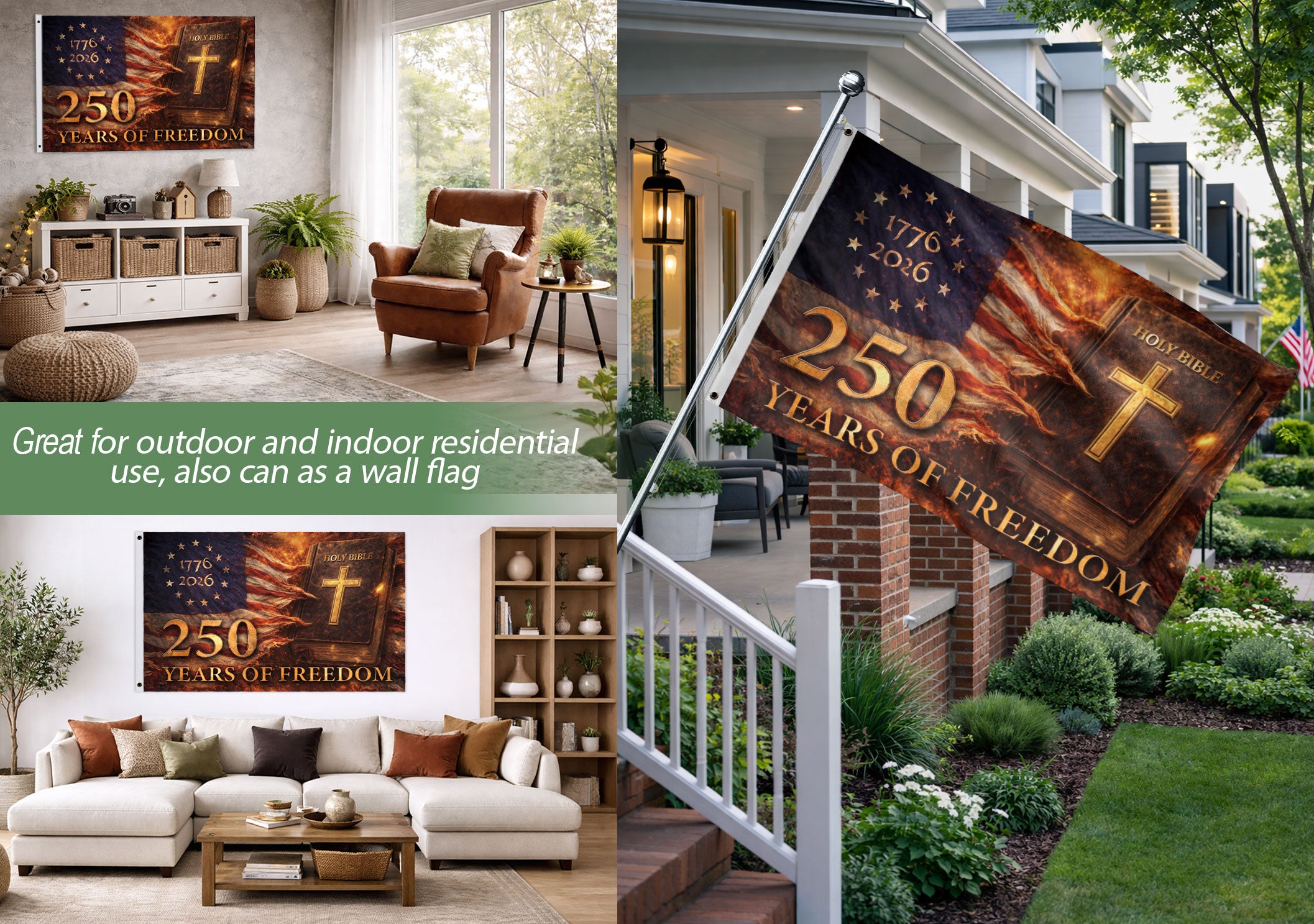 Holy Bible Christian House Flag 1776-2026 One Nation Under God 250 Years Freedom