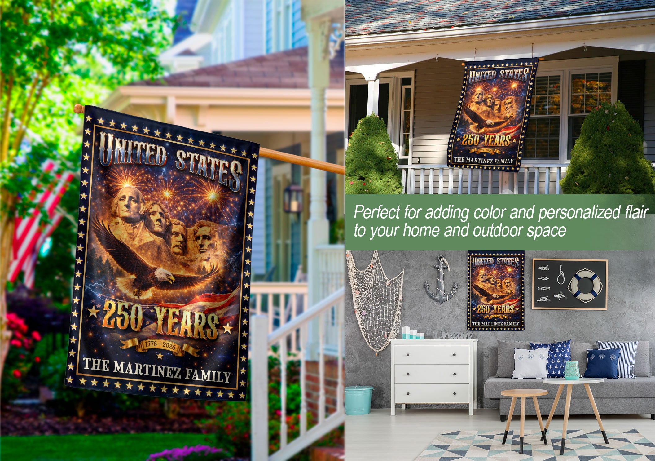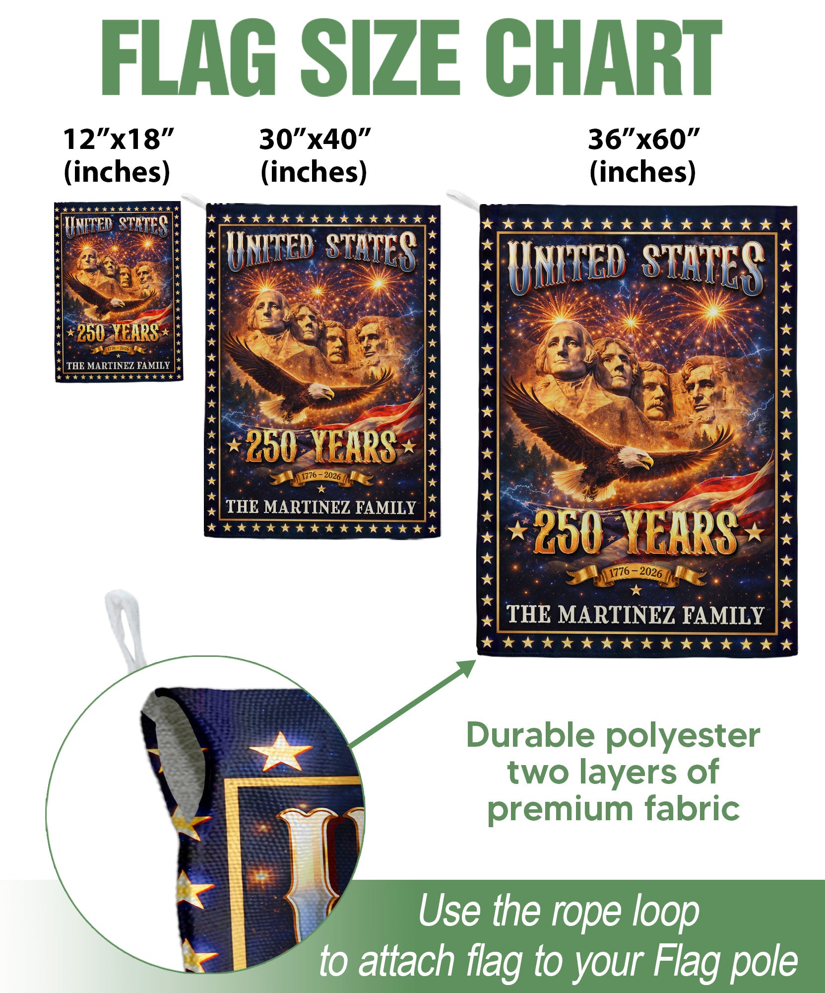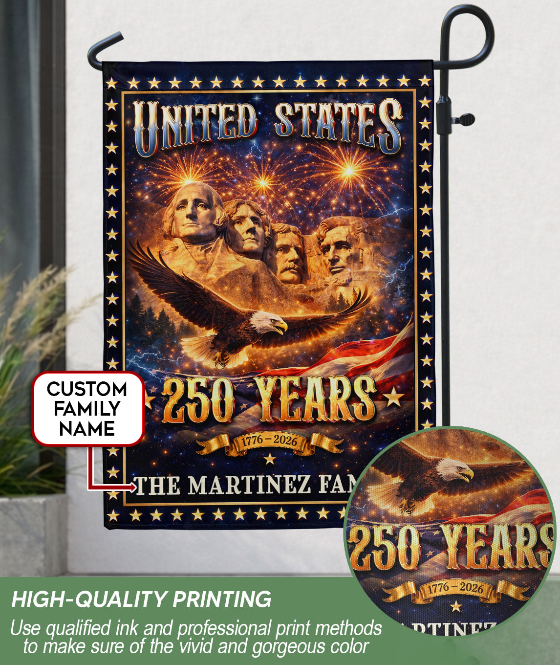 Mount Rushmore Patriotic Garden Flag with Custom Family Name 250 Years 1776-2026 Banner