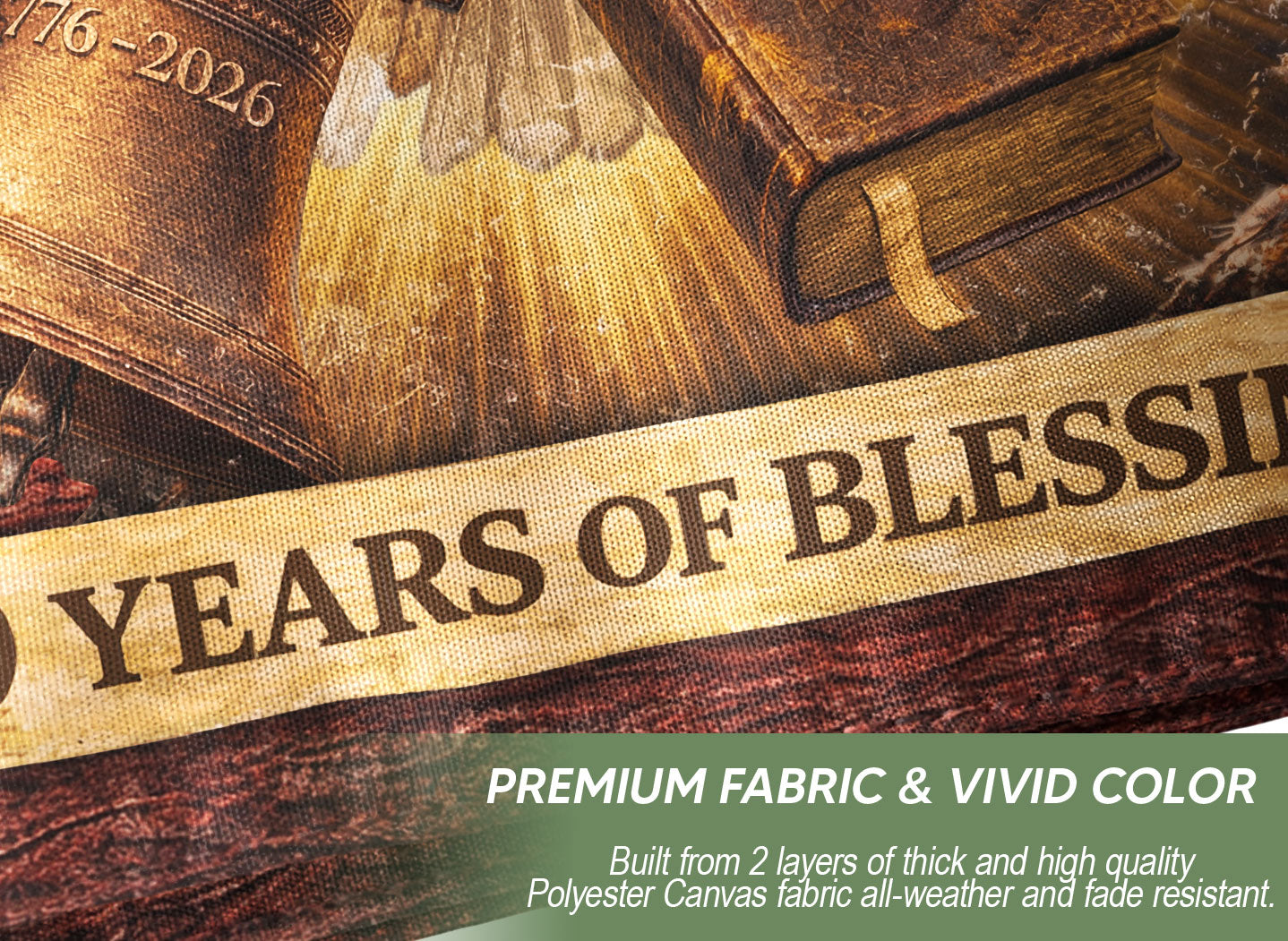 Celebrate 250 years of American independence from 1776 to 2026 with this striking patriotic Christian flag. The design features a majestic bald eagle soaring above a glowing Holy Bible and historic liberty bell, all set against a vintage American flag background. Bold text proclaims ‘One Nation Under God’ and ‘250 Years of Blessings,’ embodying faith, freedom, and national pride. Perfect for displaying at homes, churches, patriotic events, Fourth of July celebrations, or leading up to the 2026 semiquincentennial milestone. Crafted for durability and vibrant colors, this banner serves as a powerful symbol of America’s Christian heritage and enduring strength.