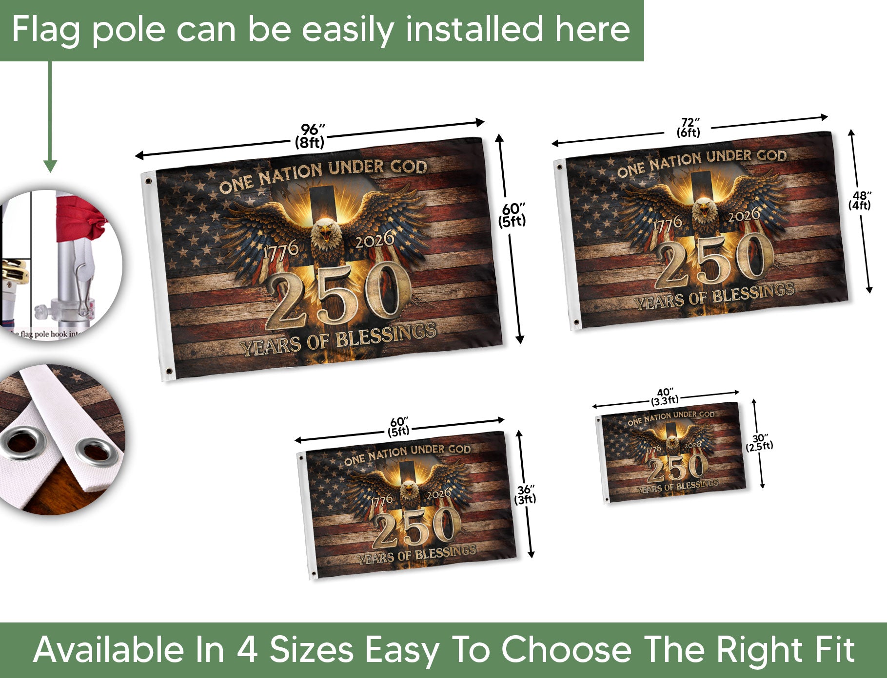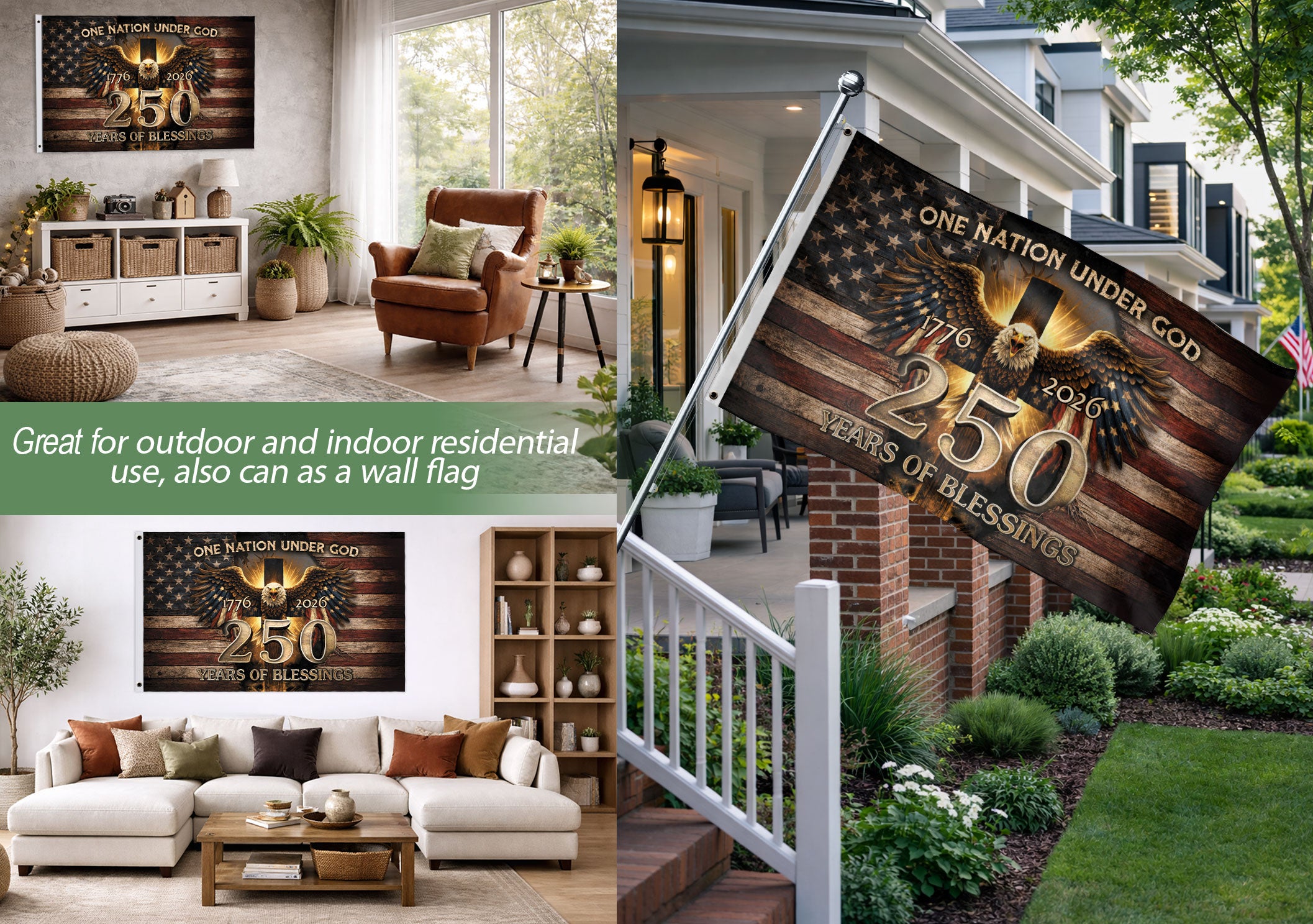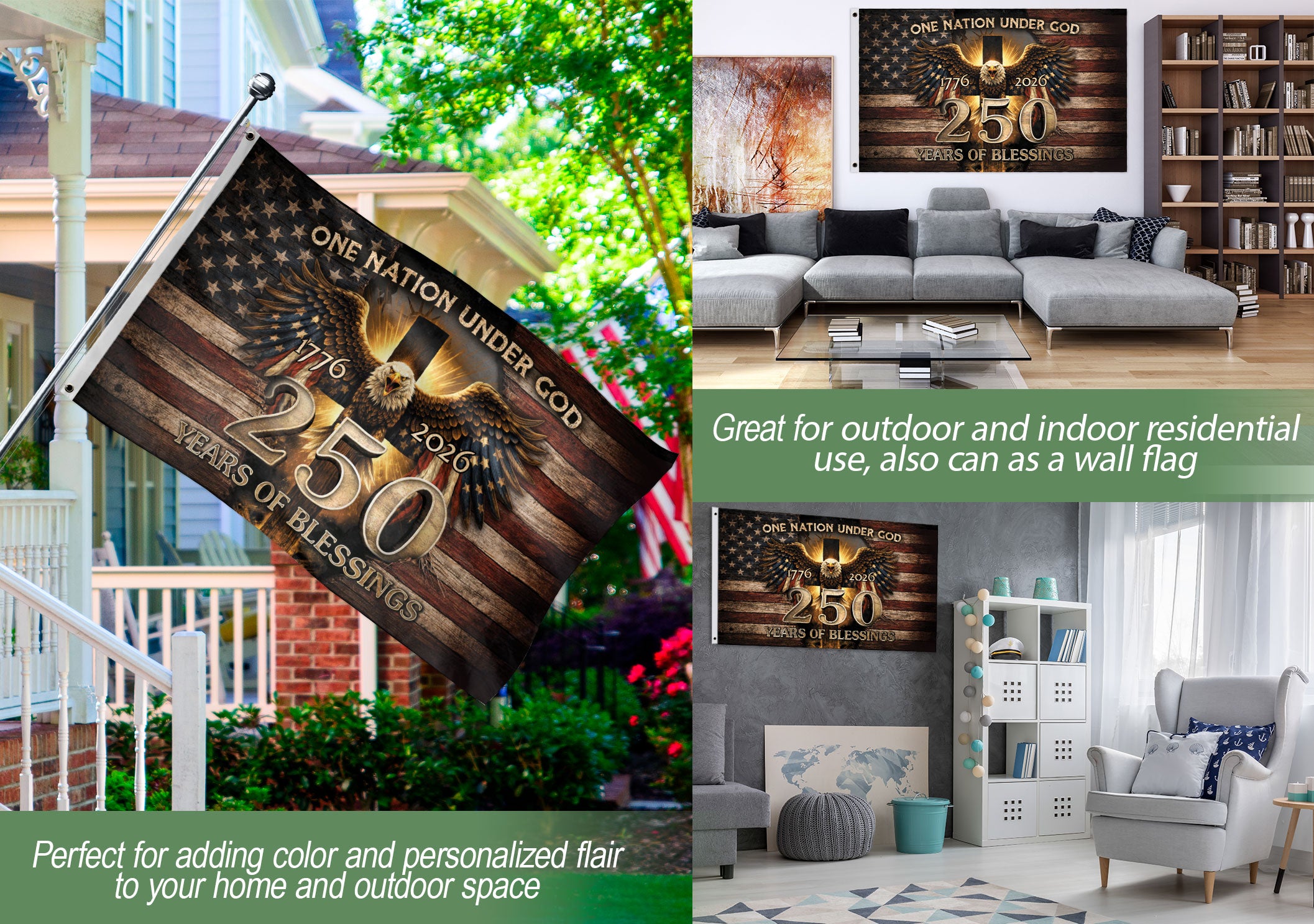 Patriotic Christian House Flag 250th USA Anniversary 1776-2026 One Nation Under God Eagle Cross
