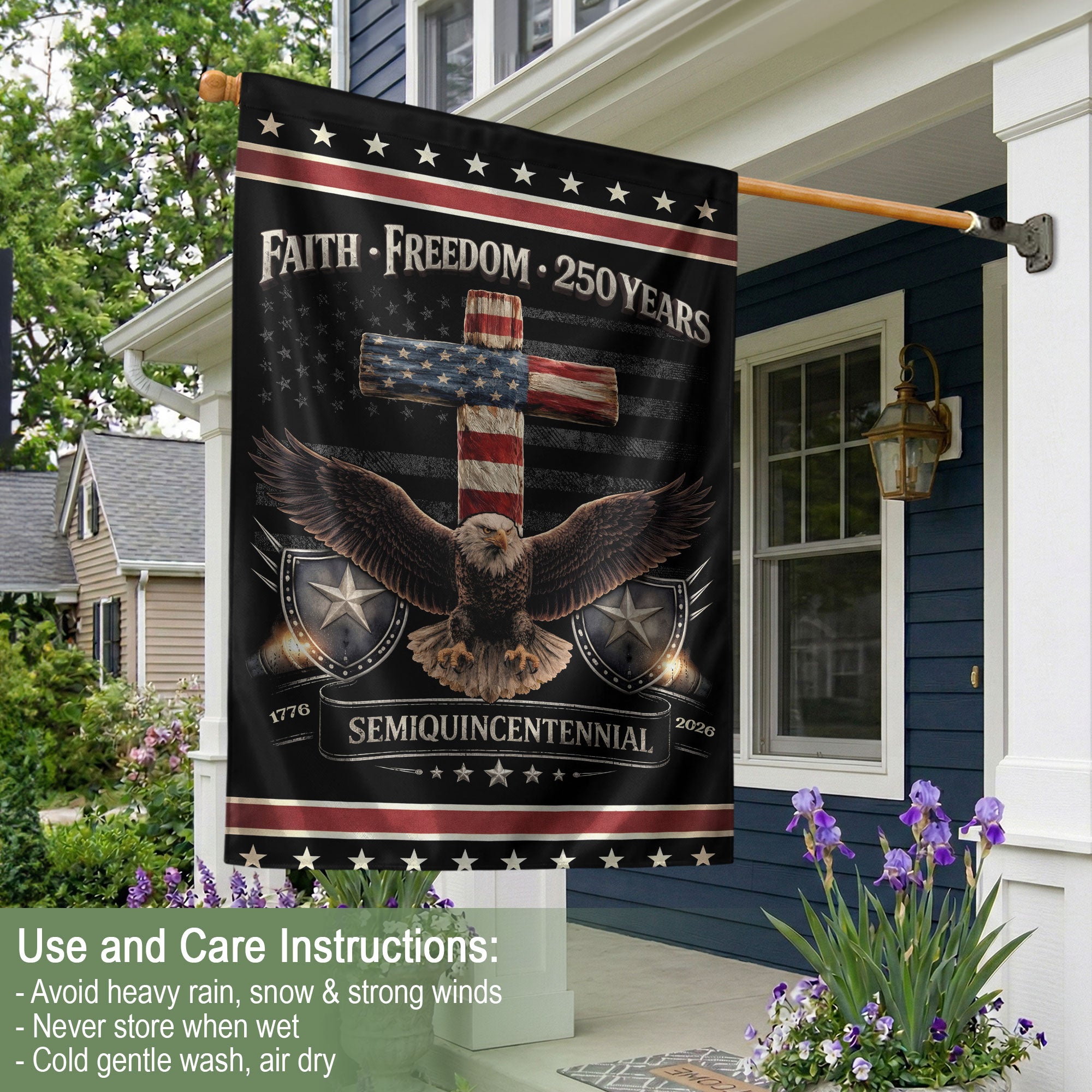 Patriotic One Nation Under God Garden Flag – 250th USA Anniversary Double-Sided Eagle Cross Design