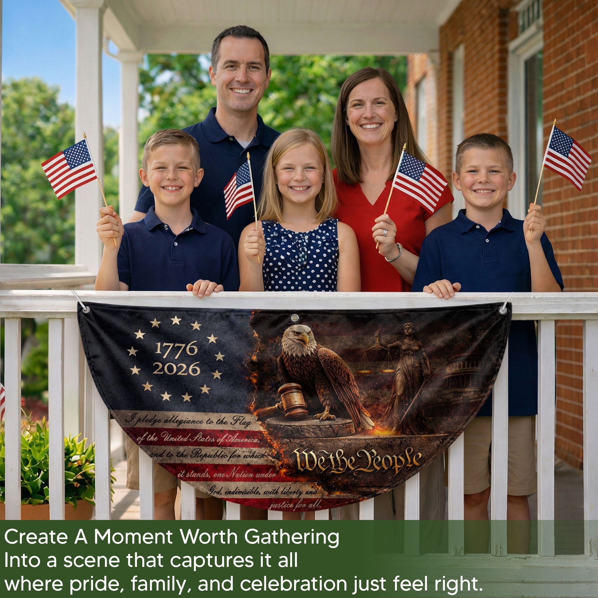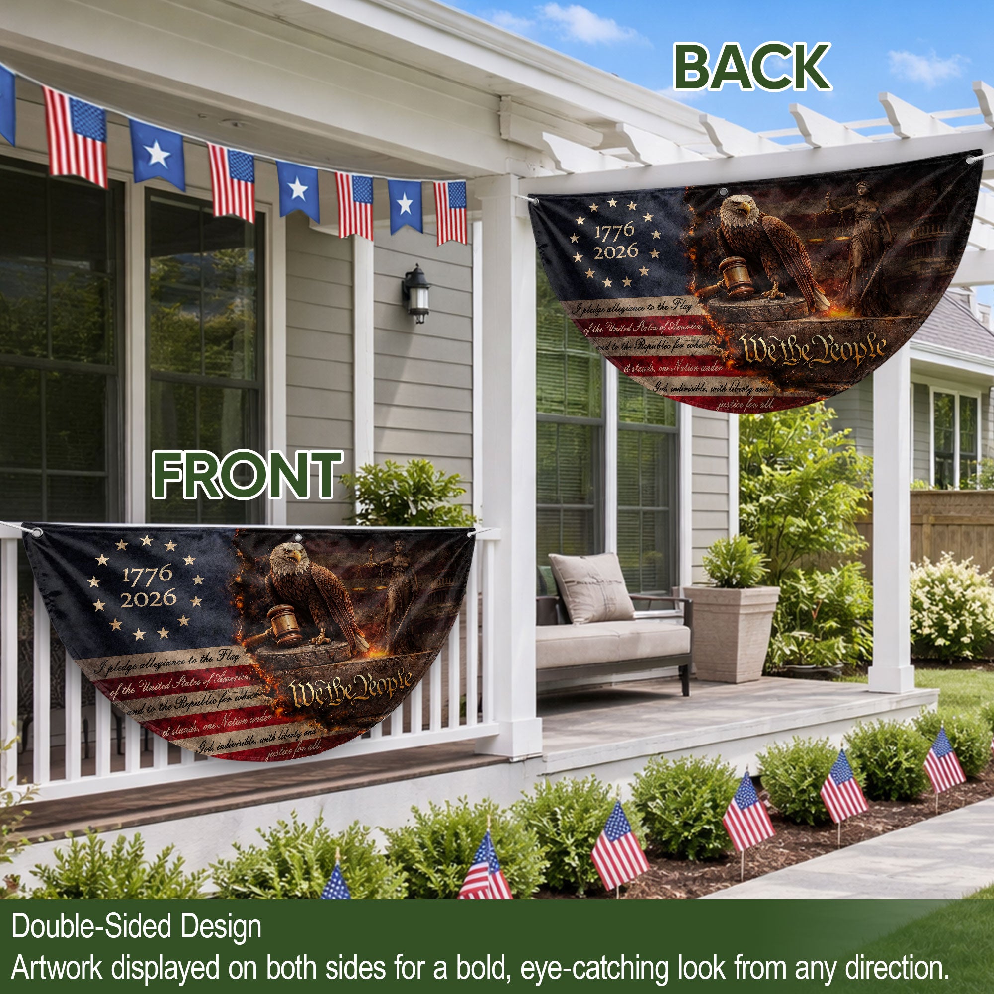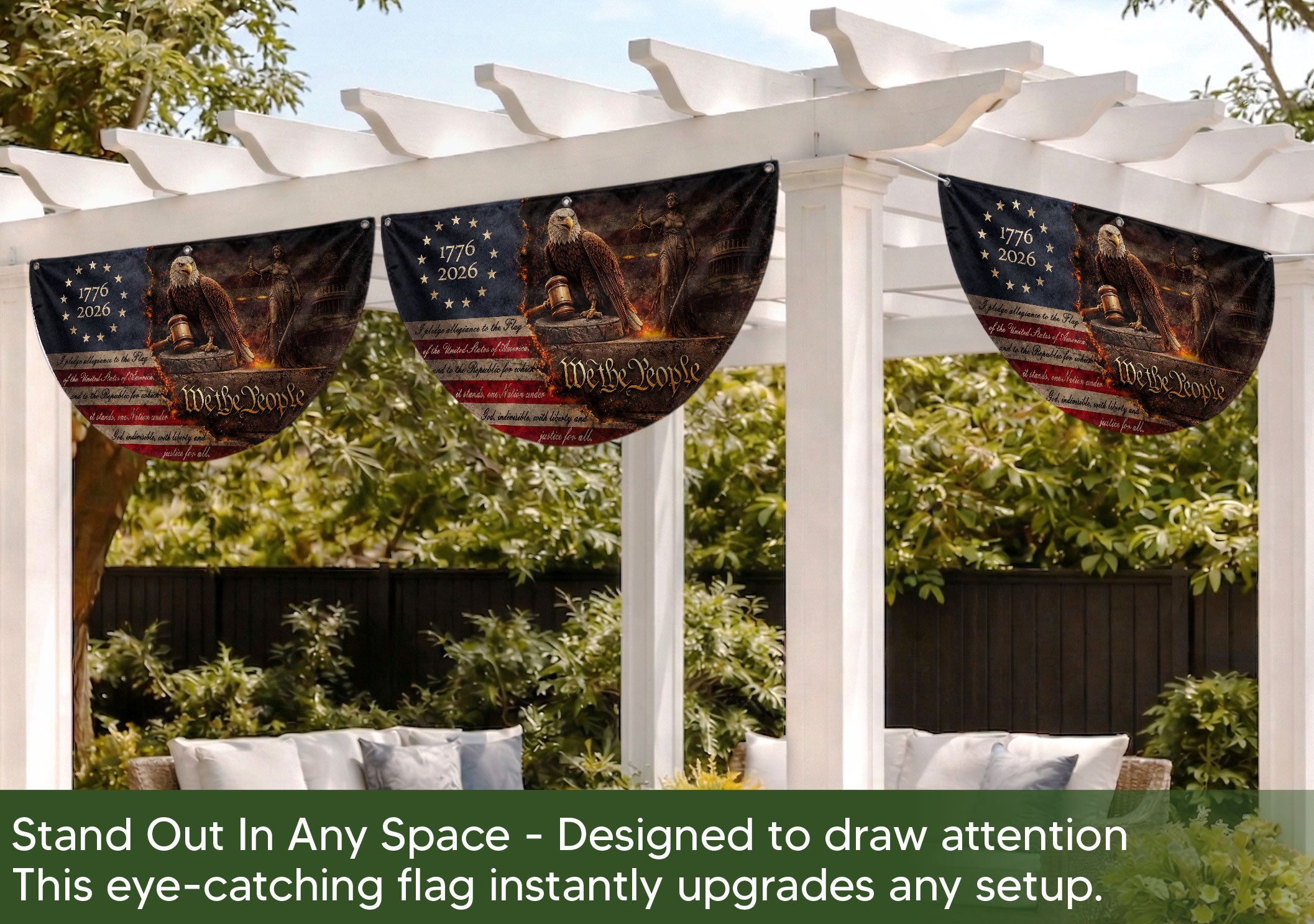 Pledge of Allegiance Fence Flag with Patriotic Eagle We The People 1776-2026