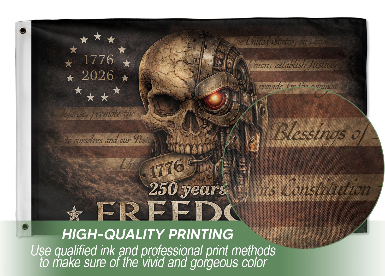 United States 250 Years America Anniversary Flag 1776-2026 Mechanical Metal Cyber Skull Patriotic Design