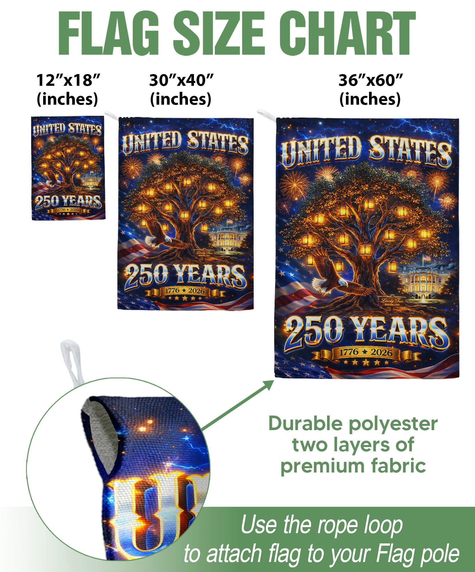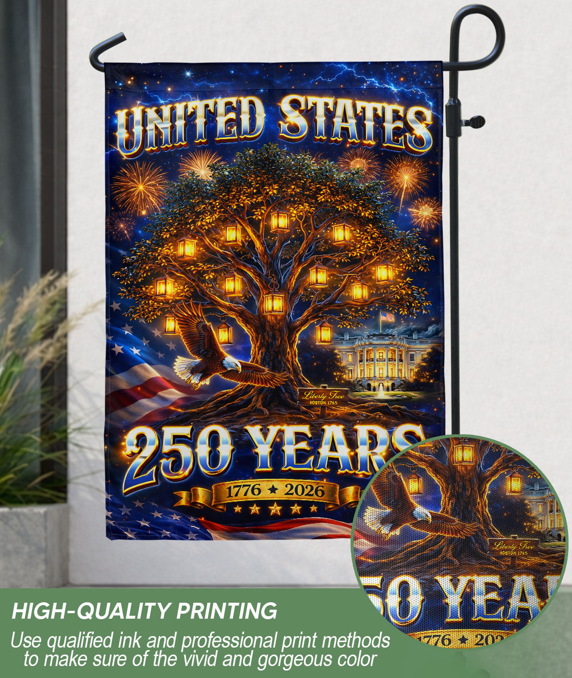 United States 250 Years Garden Flag Freedom Tree Patriotic 1776 2026 Outdoor Banner