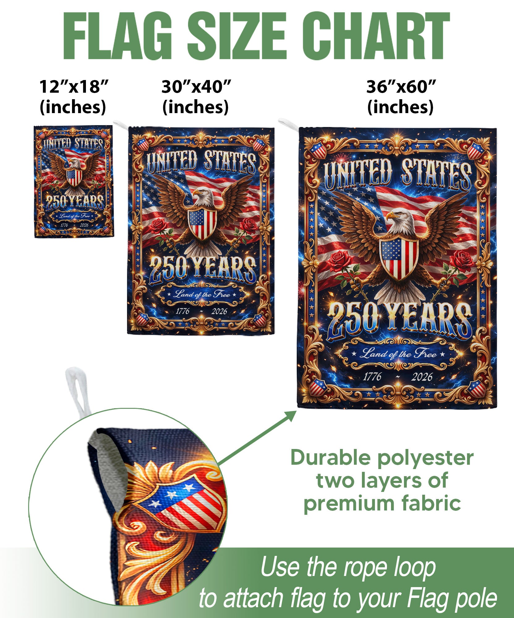 United States 250 Years Patriotic Eagle Garden Flag 1776-2026 Land of the Free