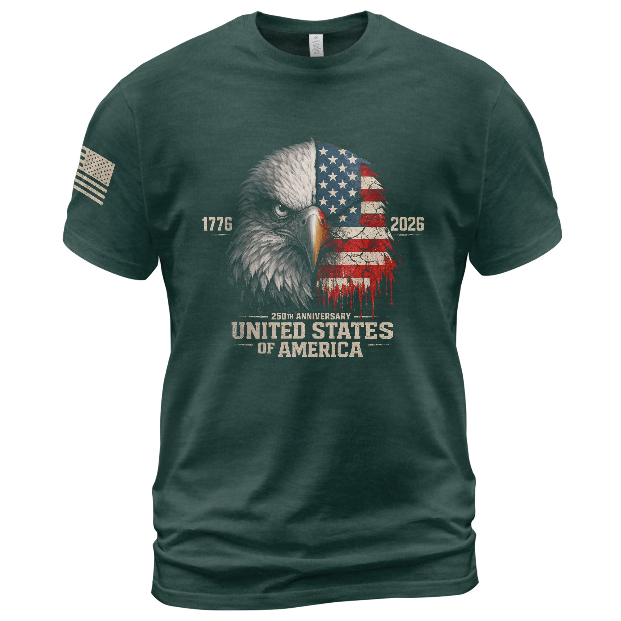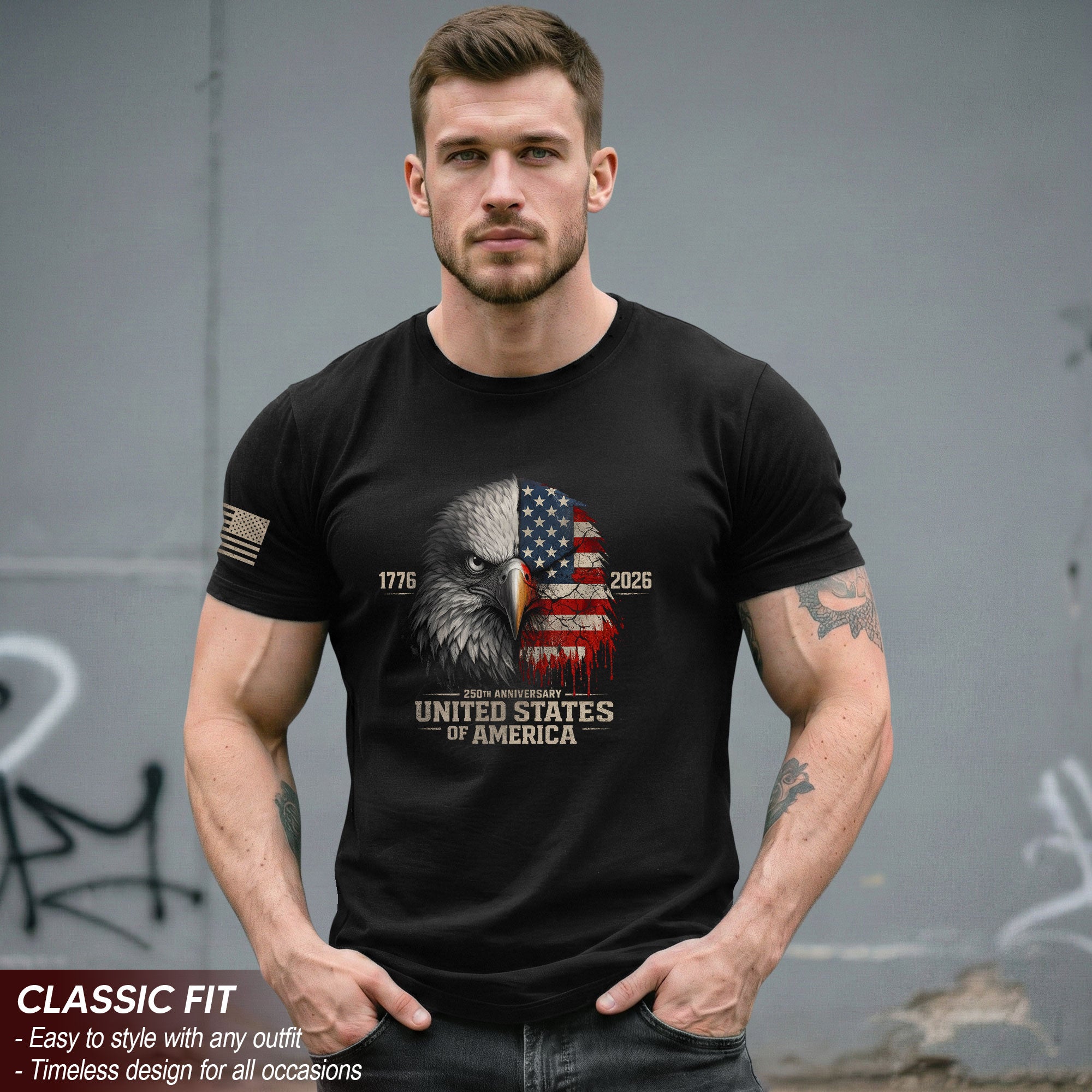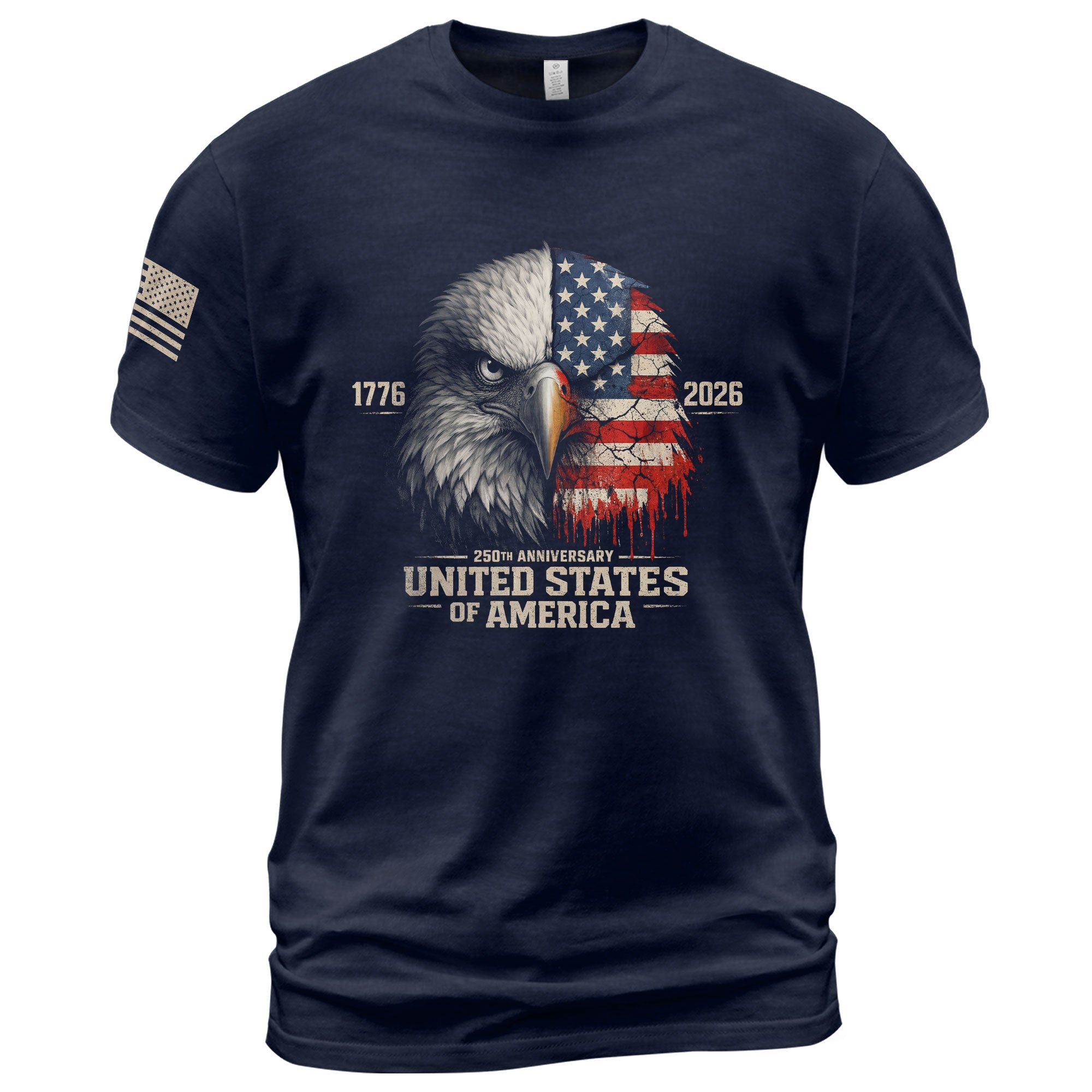 United States 250th Anniversary 1776-2026 T-Shirt – USA Flag & Eagle Distressed 250 Years Patriotic Tee