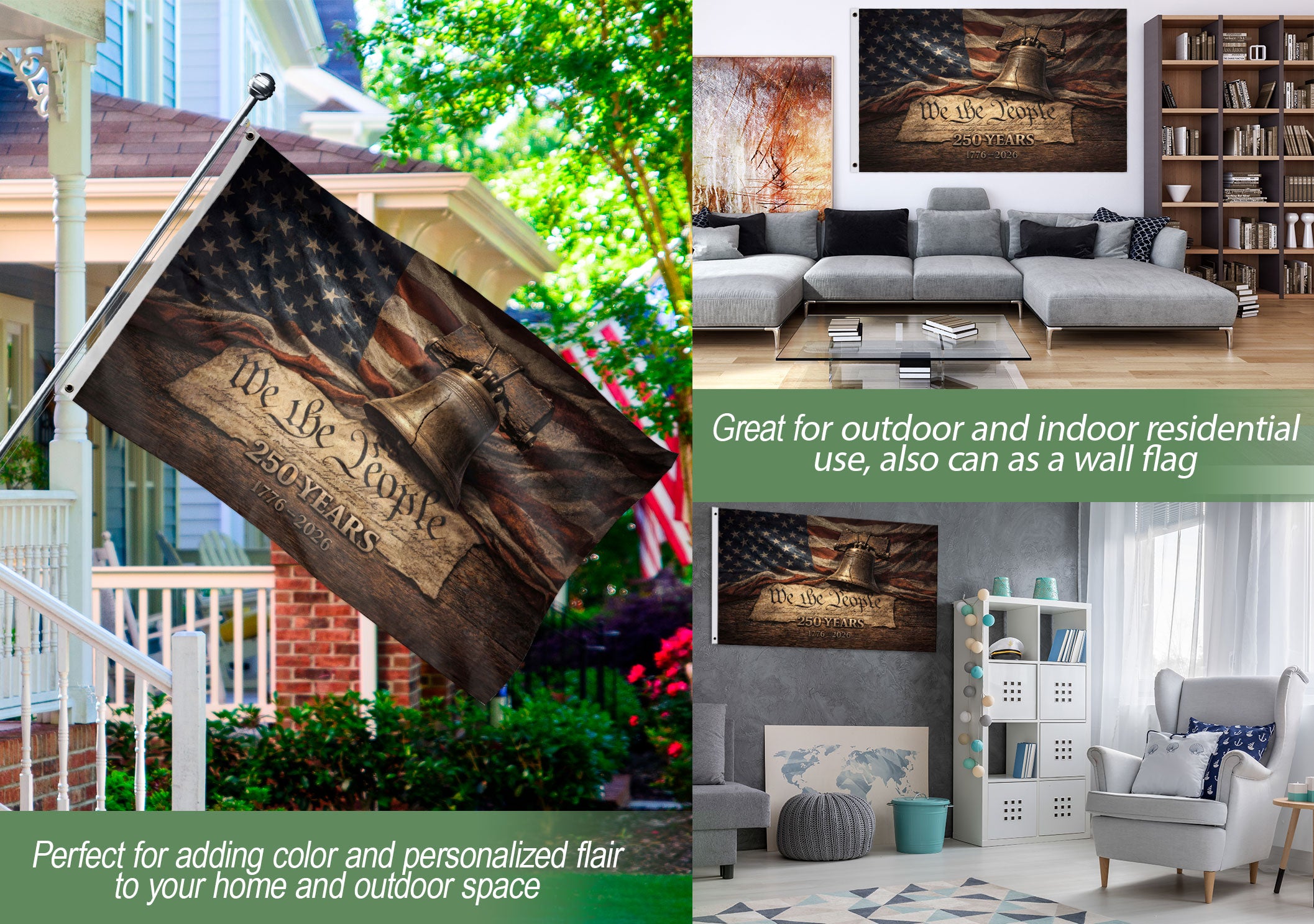 Celebrate America’s semiquincentennial with the United States 250th Anniversary Flag spanning 1776-2026. This double-sided patriotic flag features a vintage design showcasing the Constitution and Liberty Bell, symbolizing independence, freedom, and the enduring American spirit. Ideal for home porches, flag poles, parades, outdoor events, or historical displays, it unites generations in honoring U.S. history.